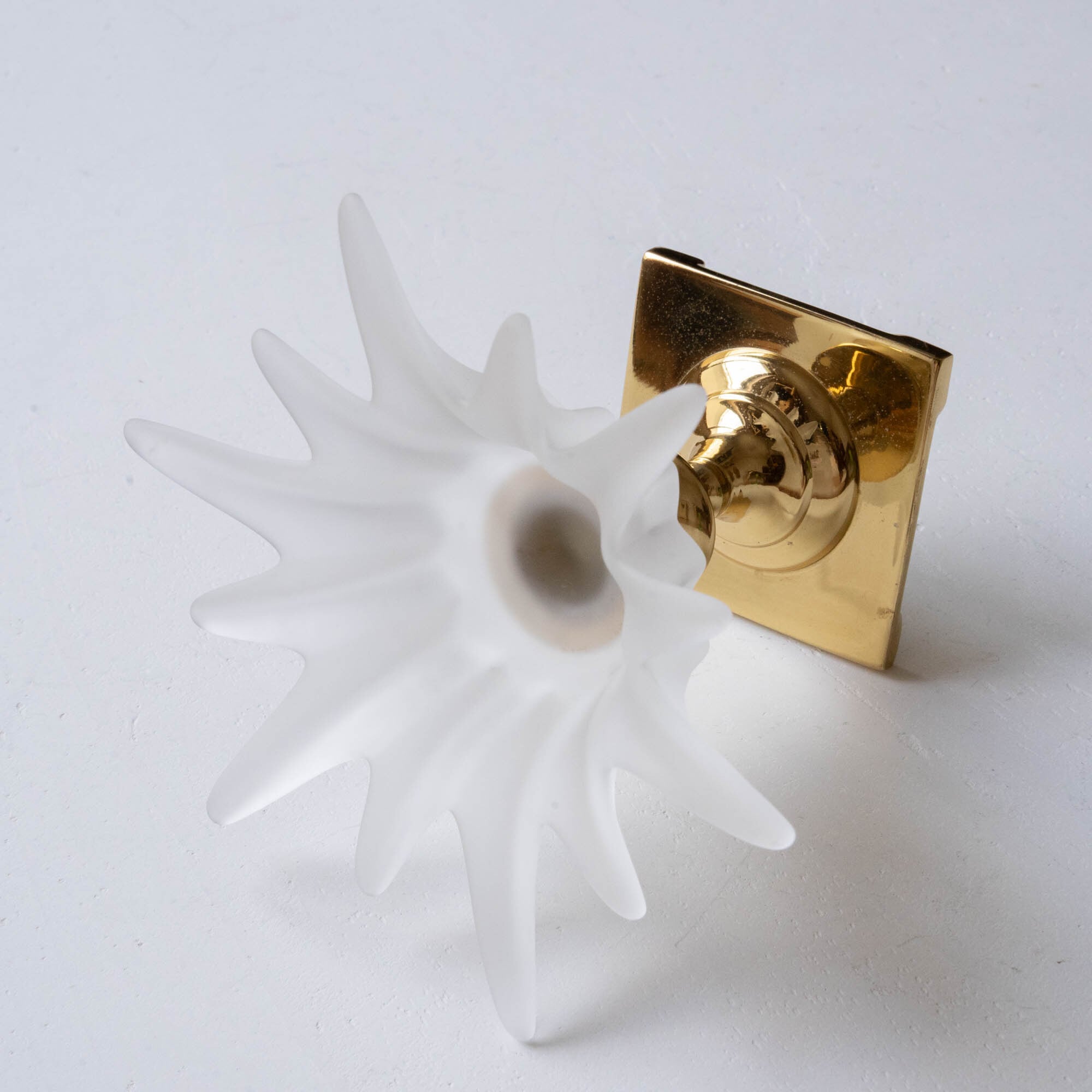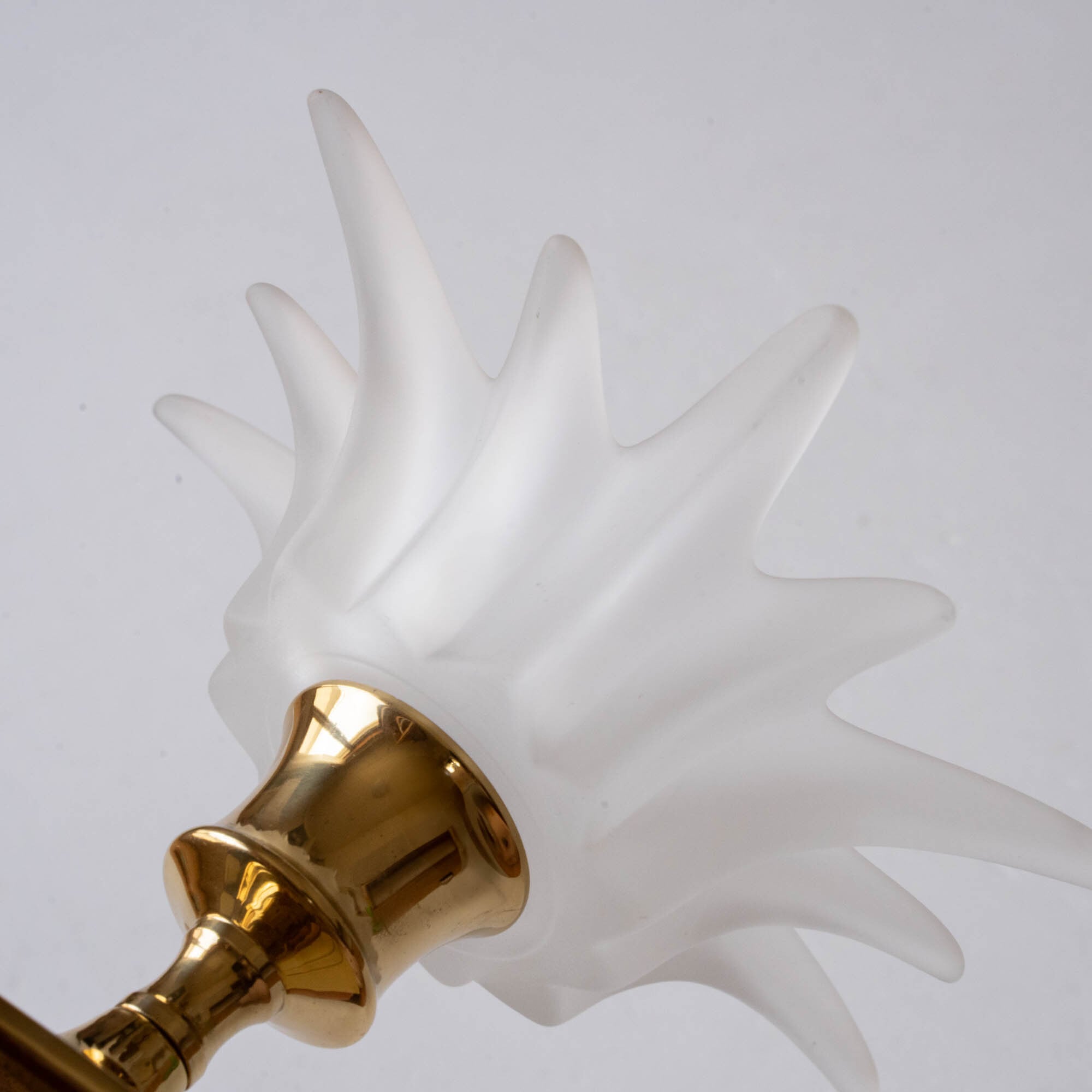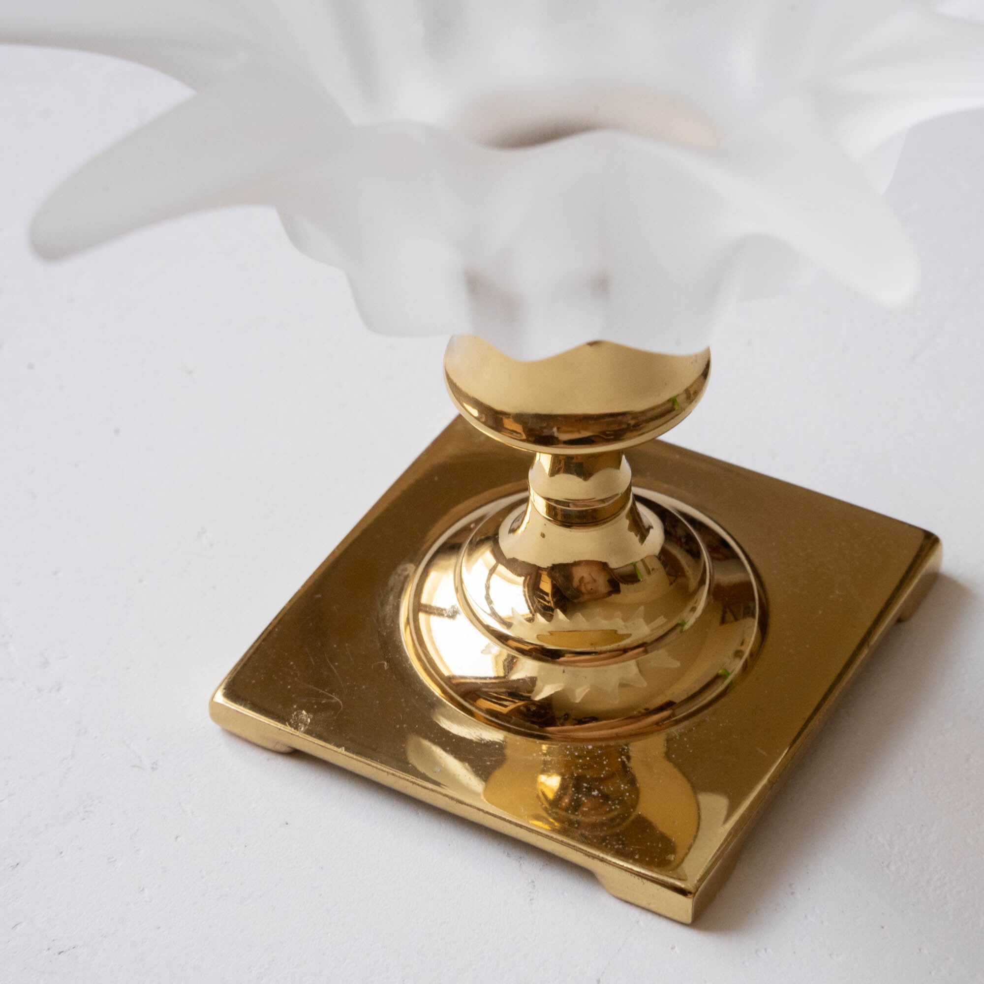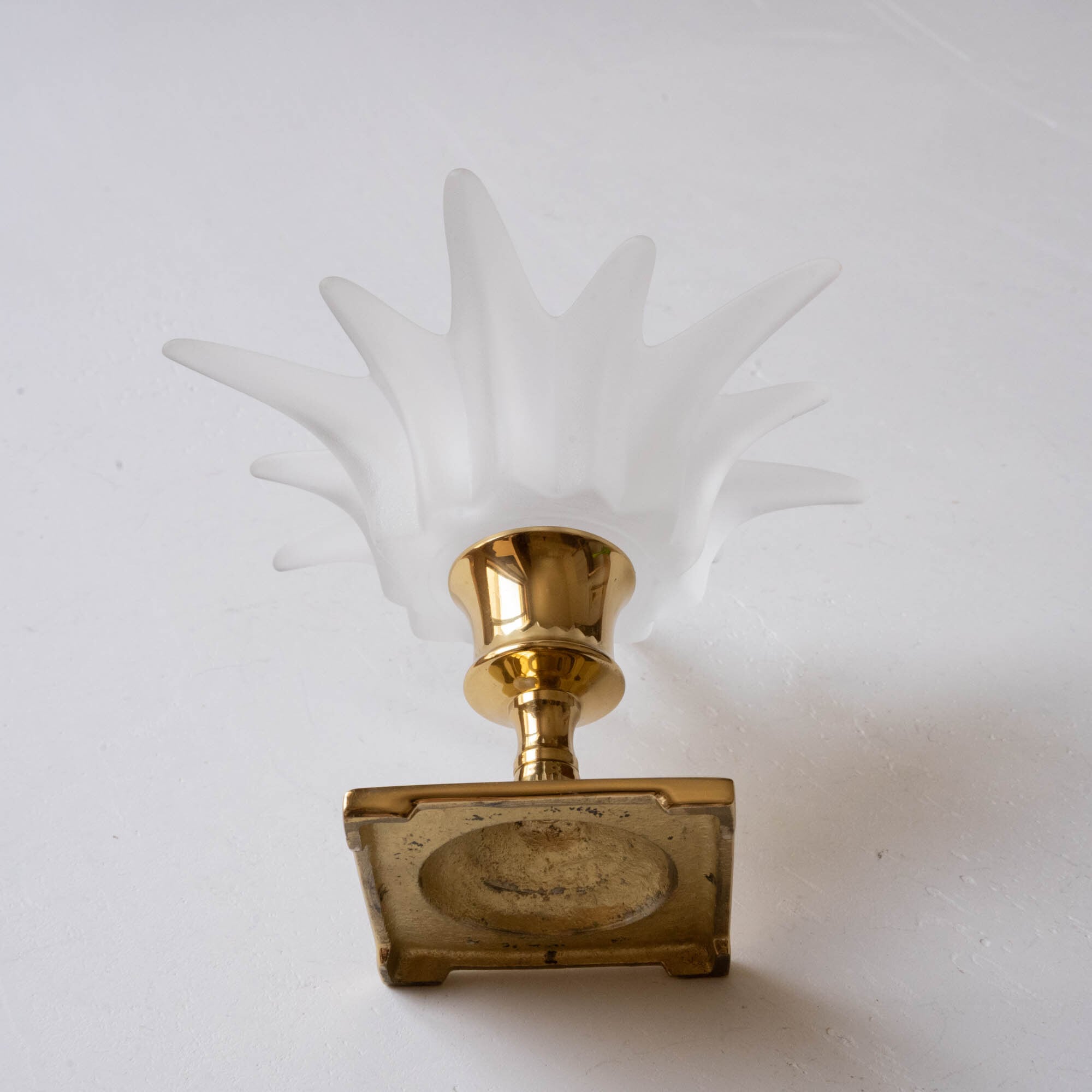 蓮の花をモチーフに、花はホワイトのマットガラス、茎は質感美しい真鍮で表現されています。