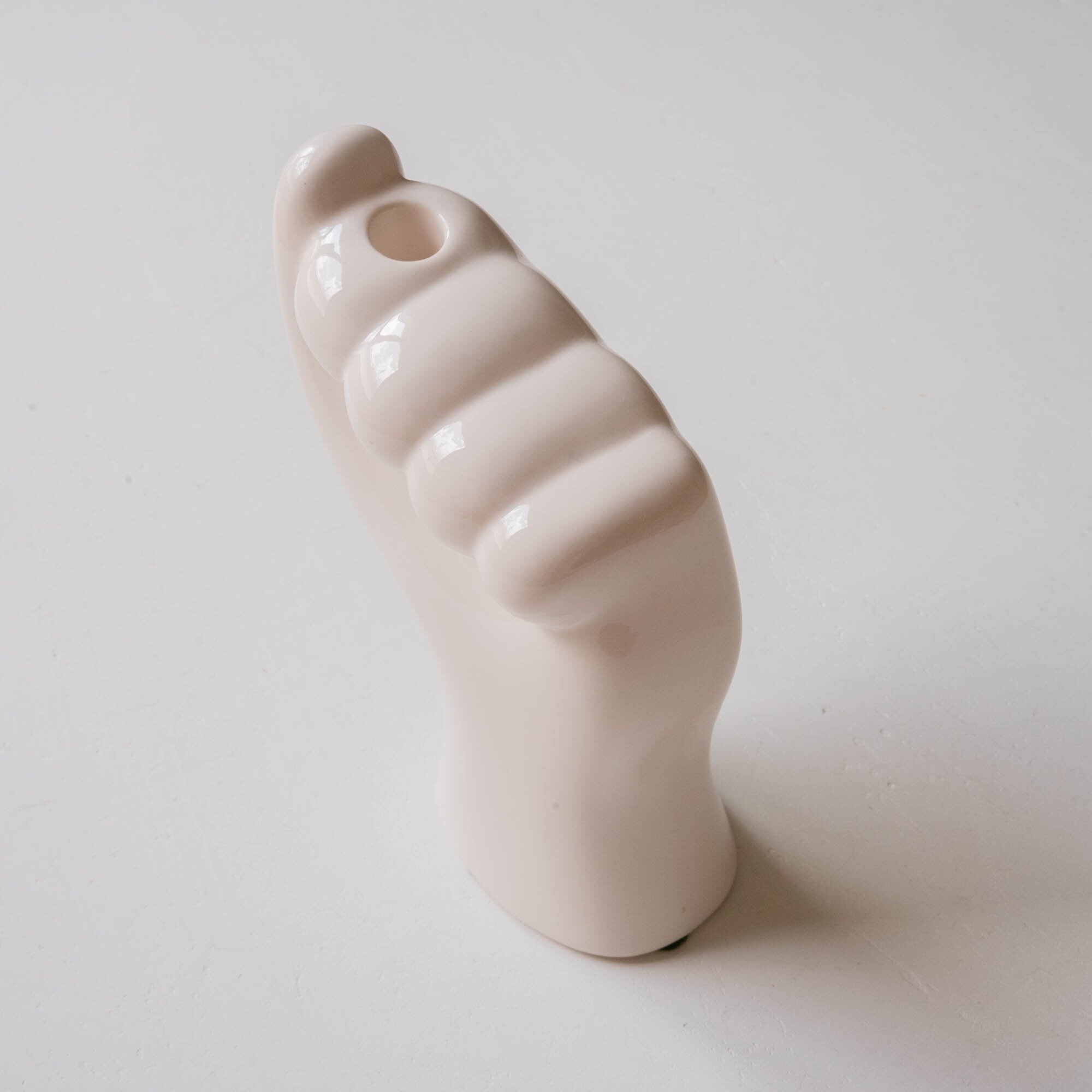 陶磁器のまろやかな味わい深さ、しなやかな手の表現が美しいアイテム。