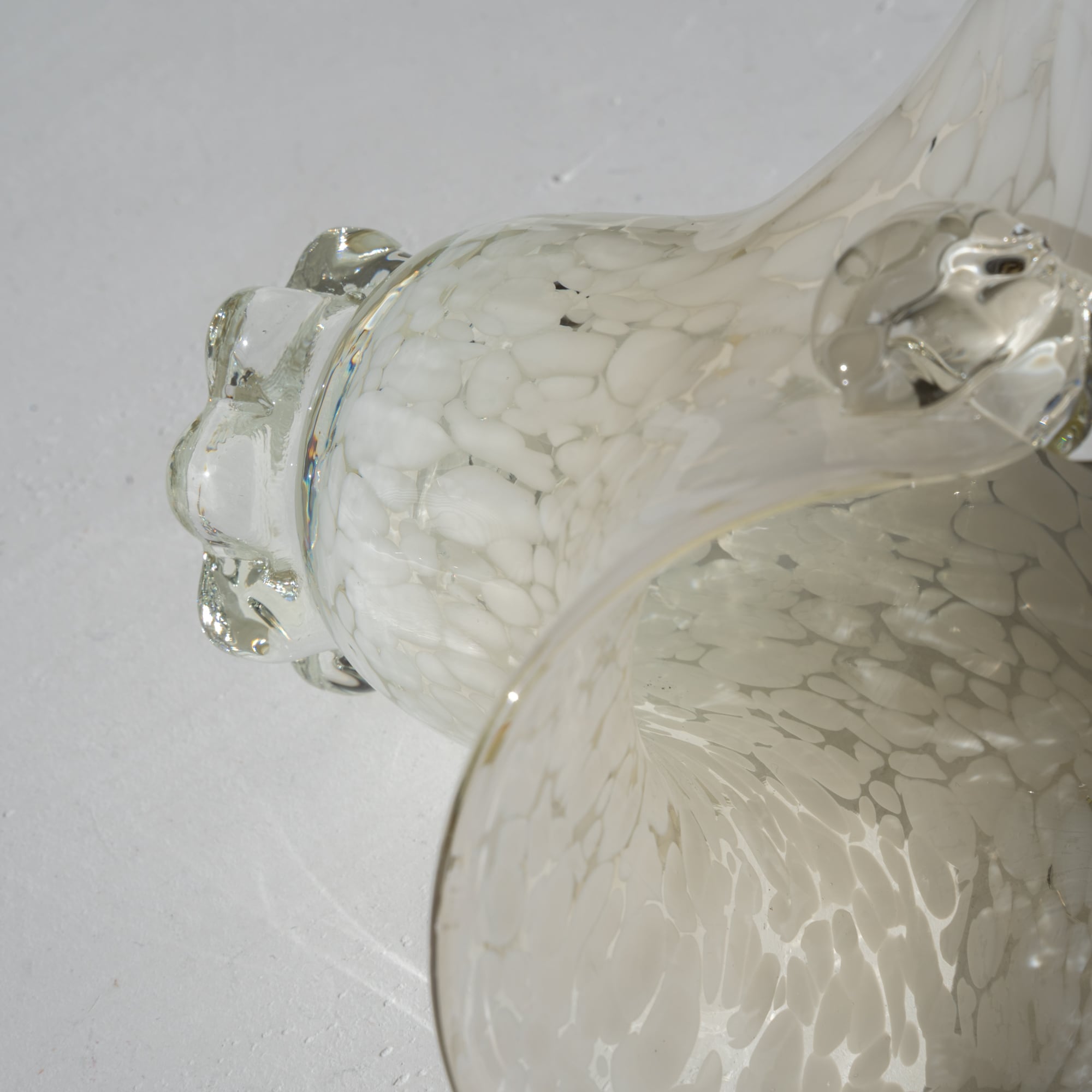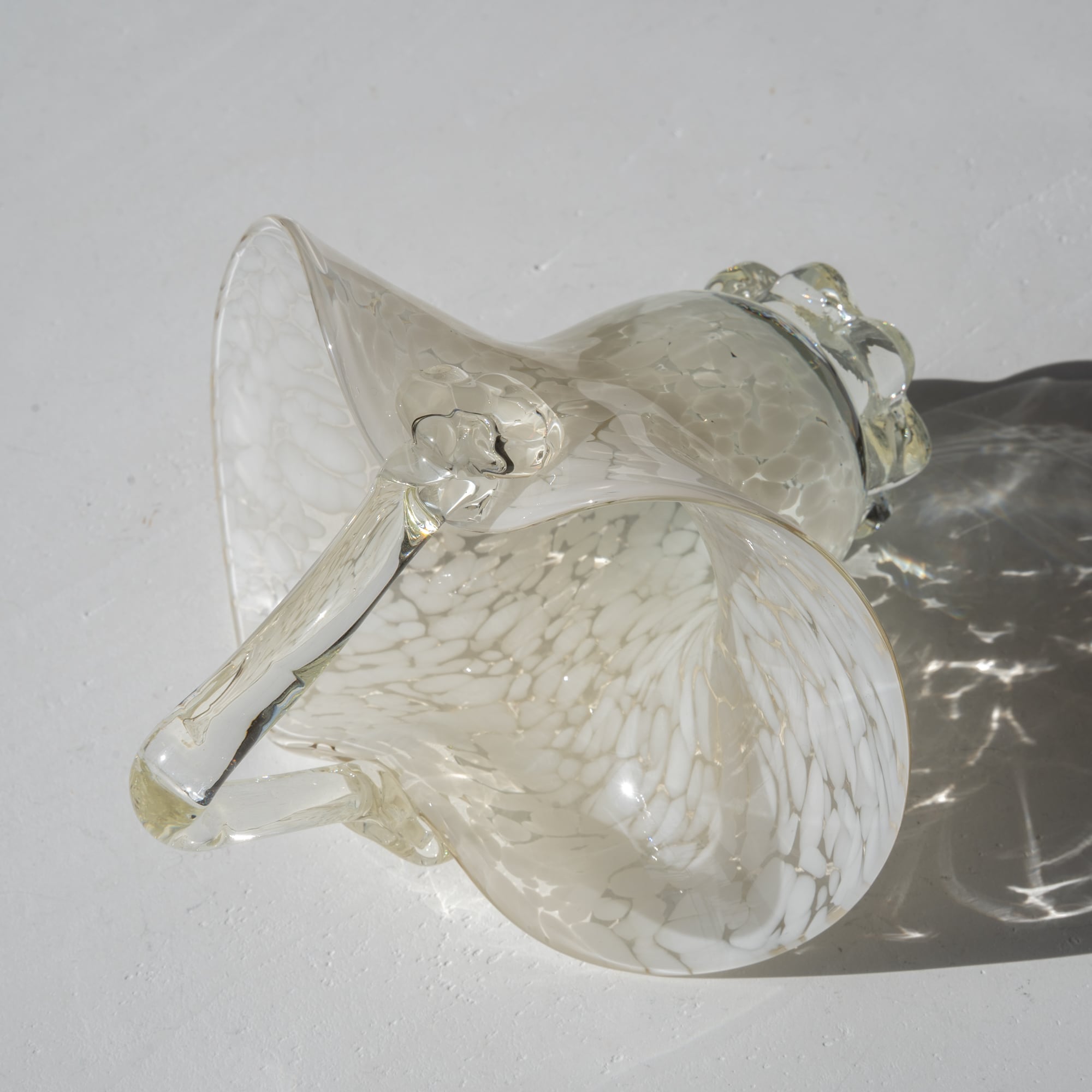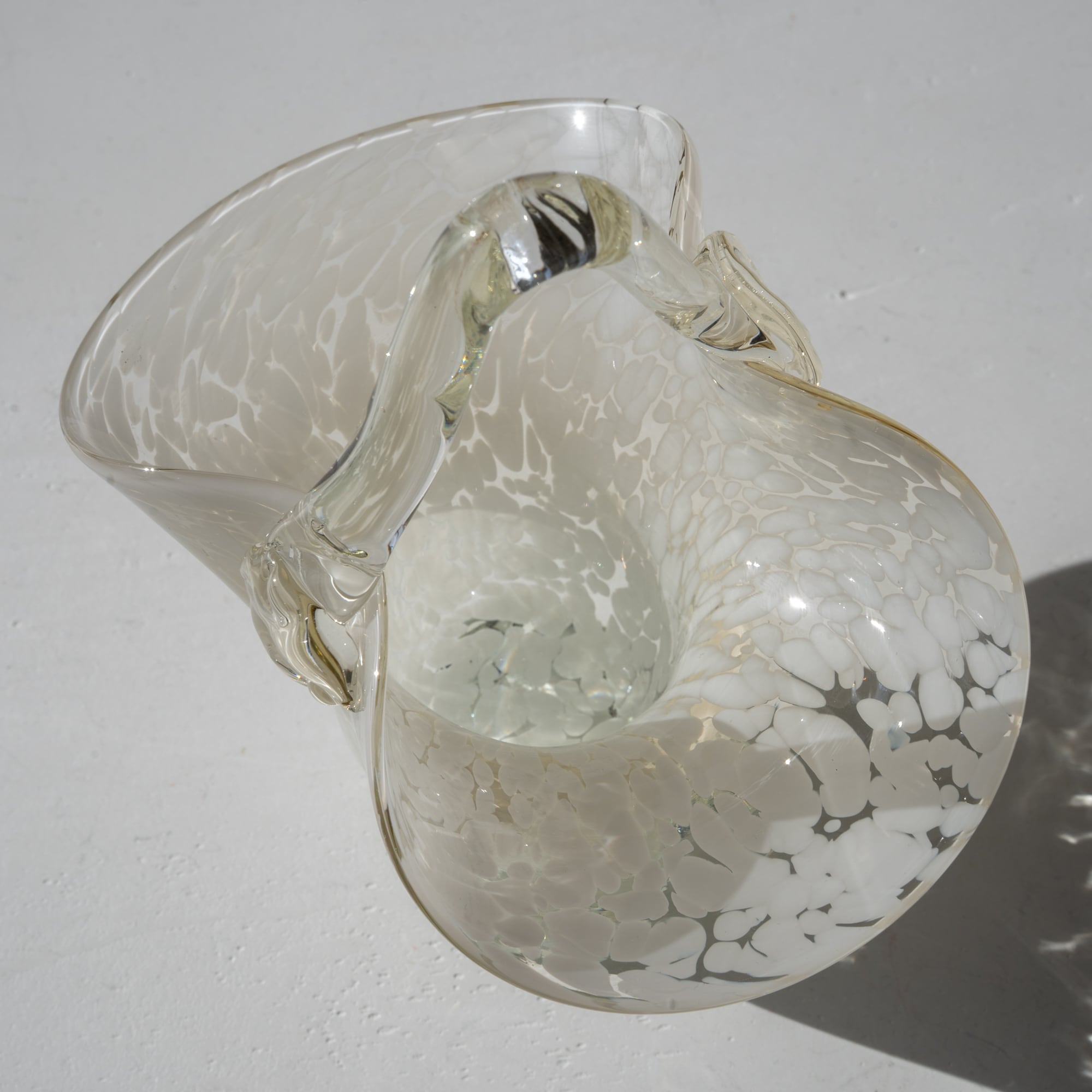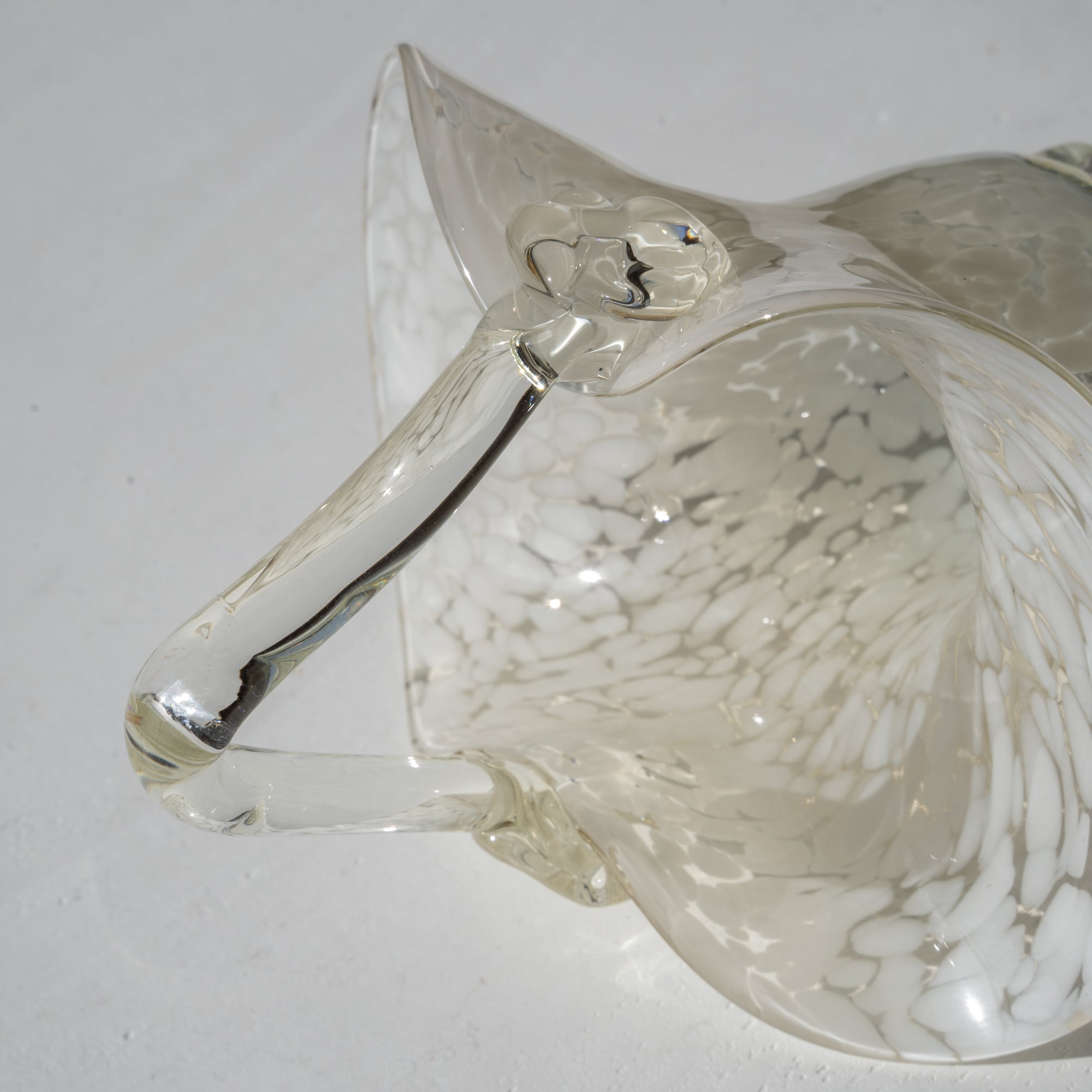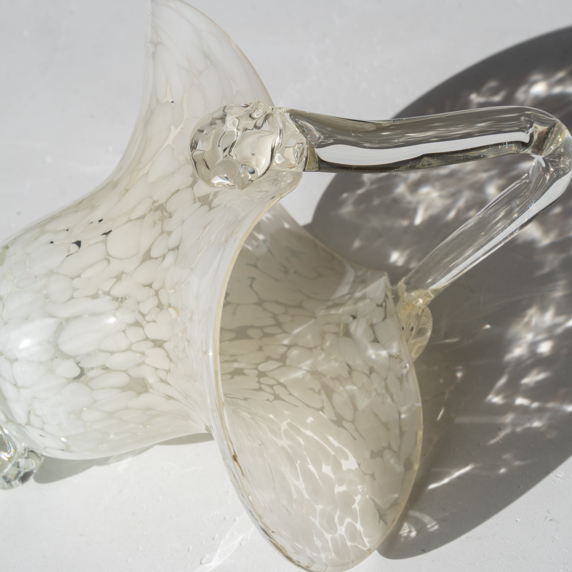 持ち手のついたバスケットモチーフで、ぽってりとしたクリアガラスは光が当たると美しく煌めきます。