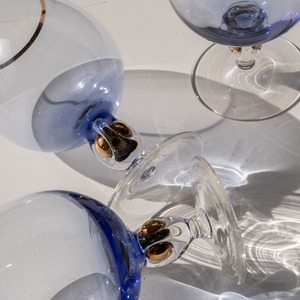 ゴールドの縁取りとステム部分のボールが煌めくホリデーにぴったりなグラス。