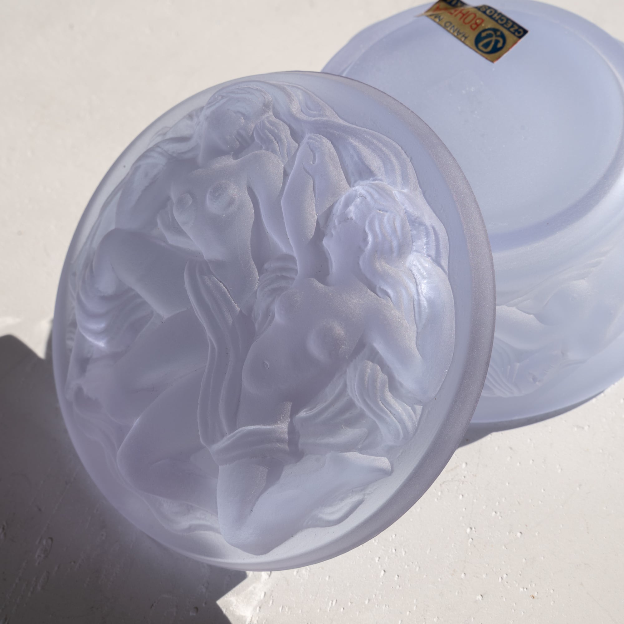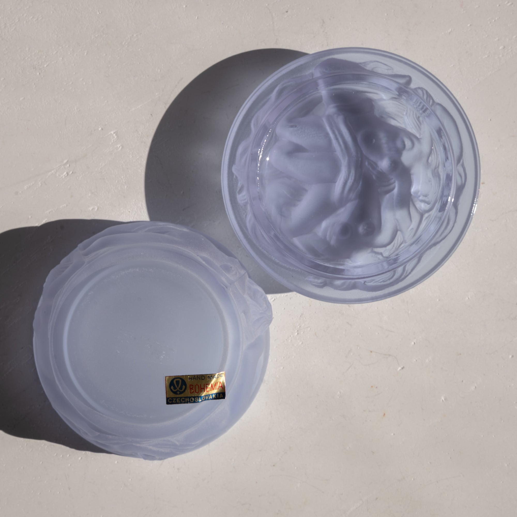 繊細ながら重厚感のあるボヘミアンガラスでつくられており、チェコのガラス職人、ハインリッヒ・ホフマン(1875-1938)がデザインしたボックスの復刻版です。