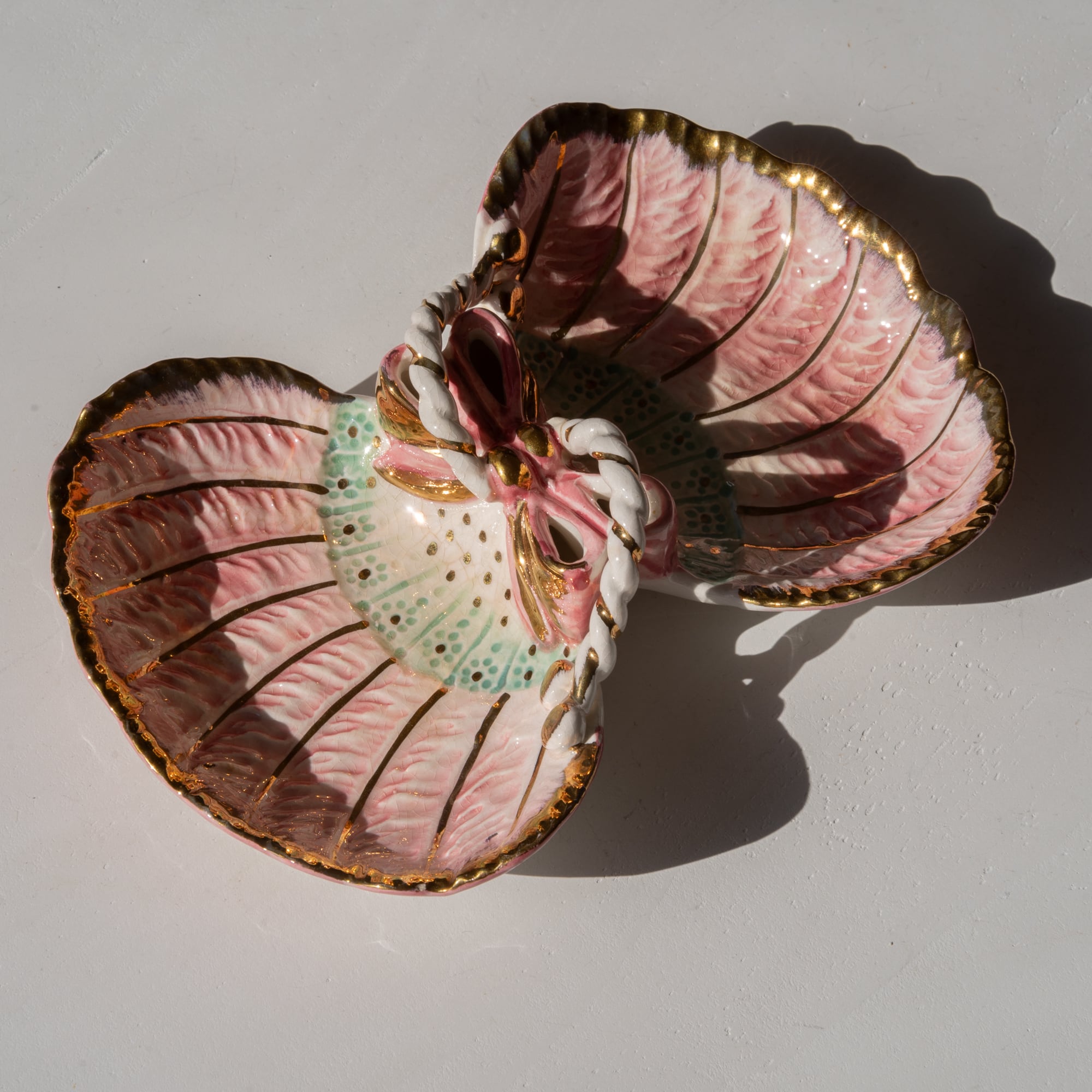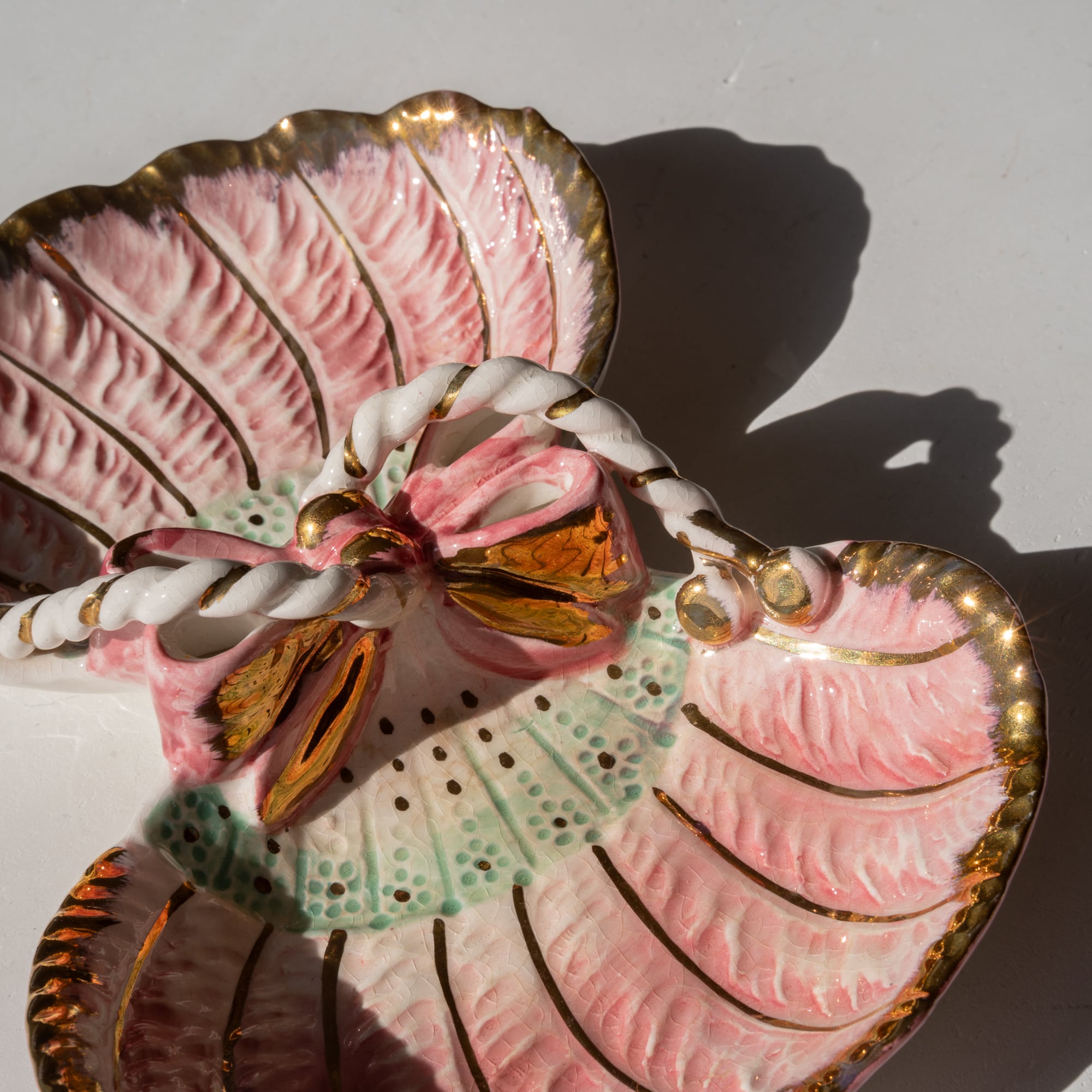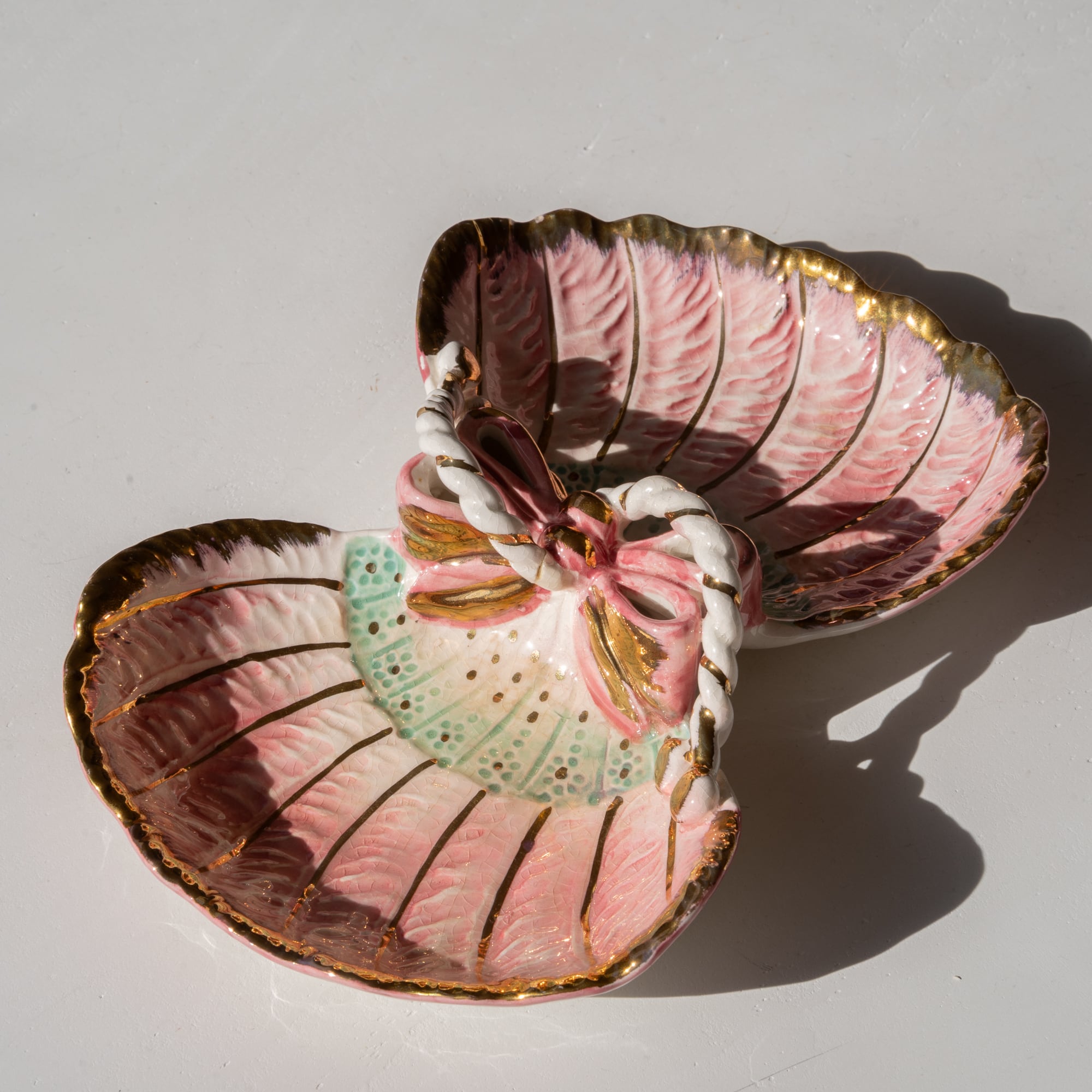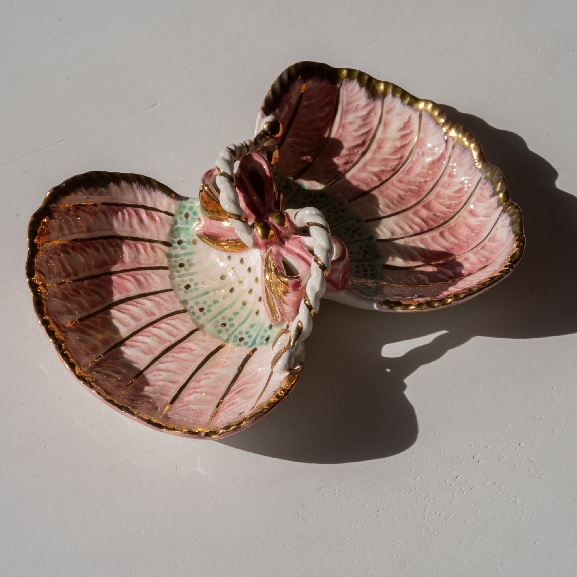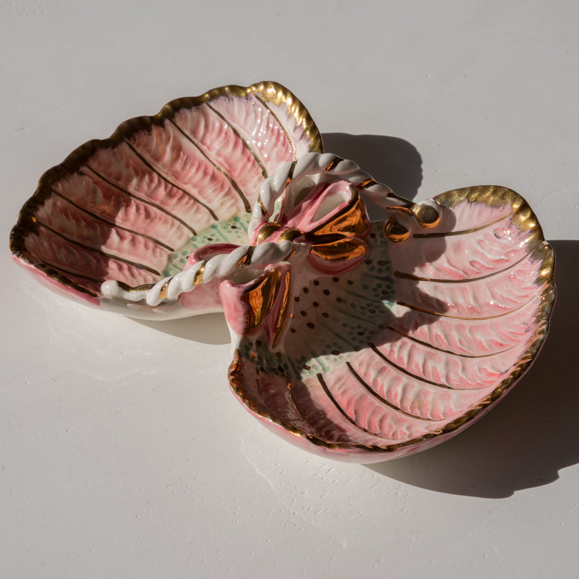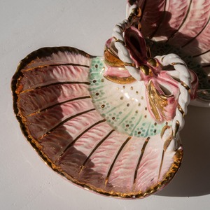 ダブルシェルのモチーフで、リボンが二枚をつなぐ可憐なデザイン。
