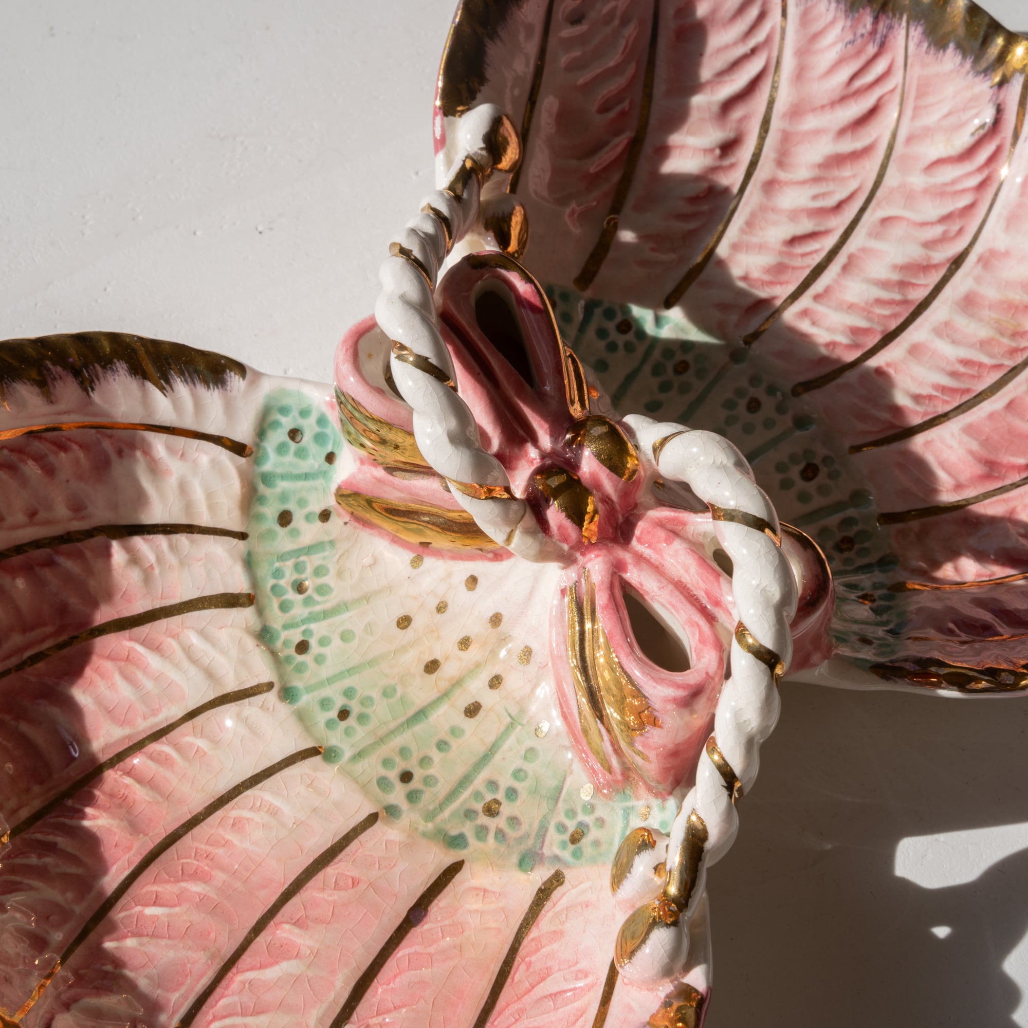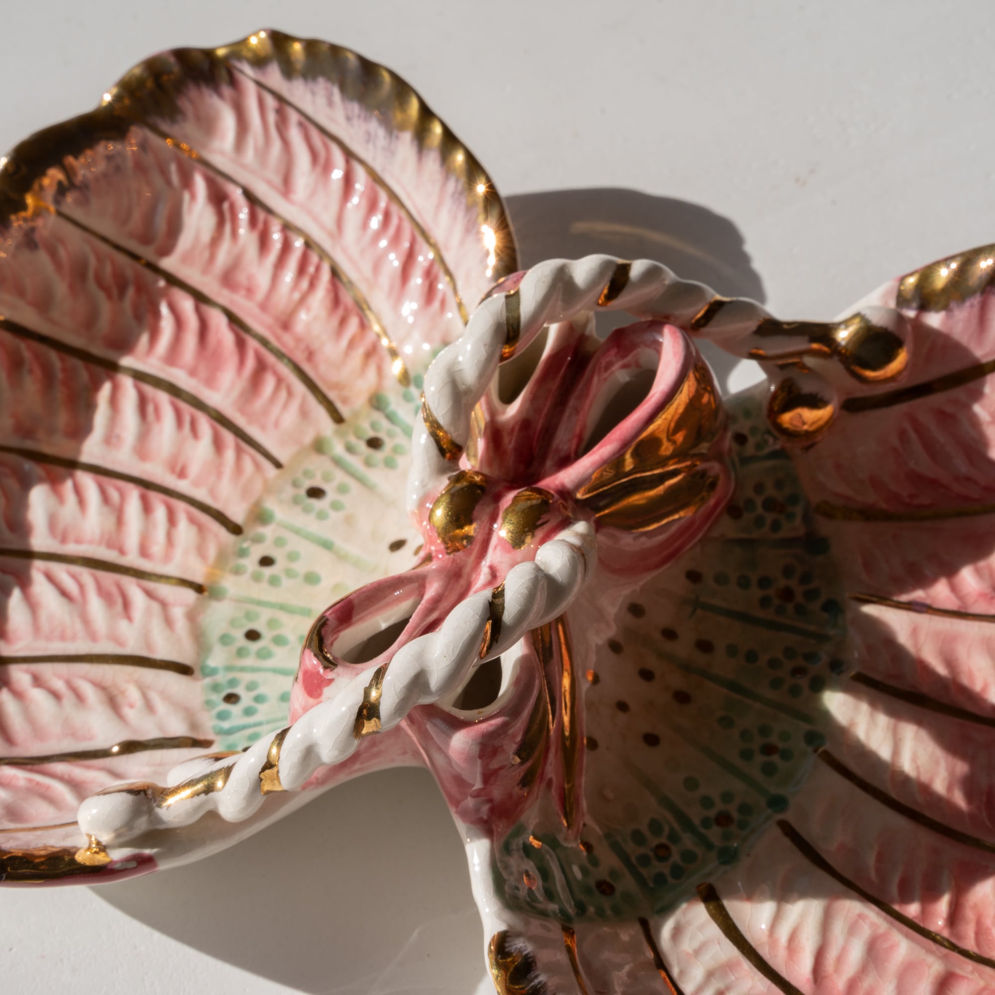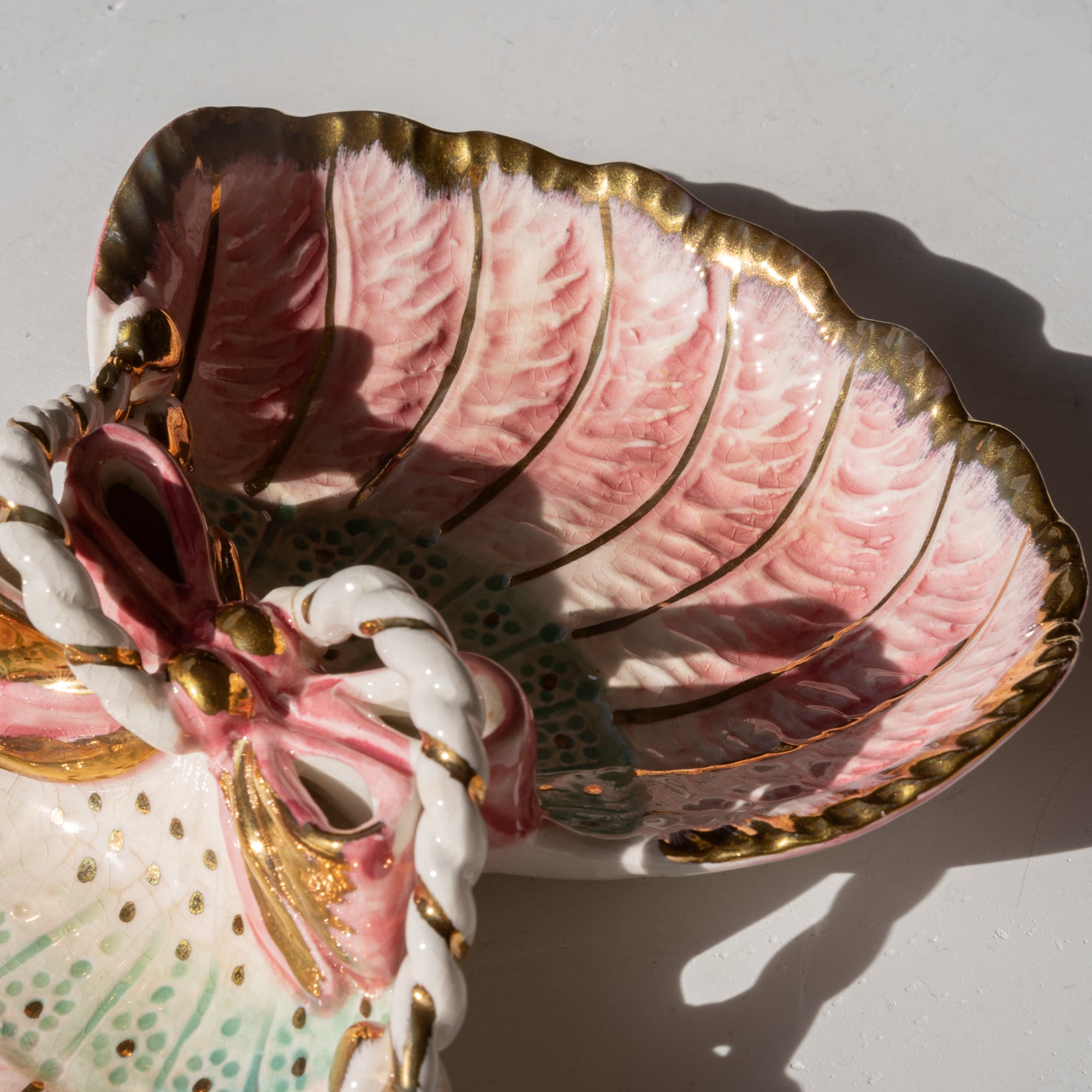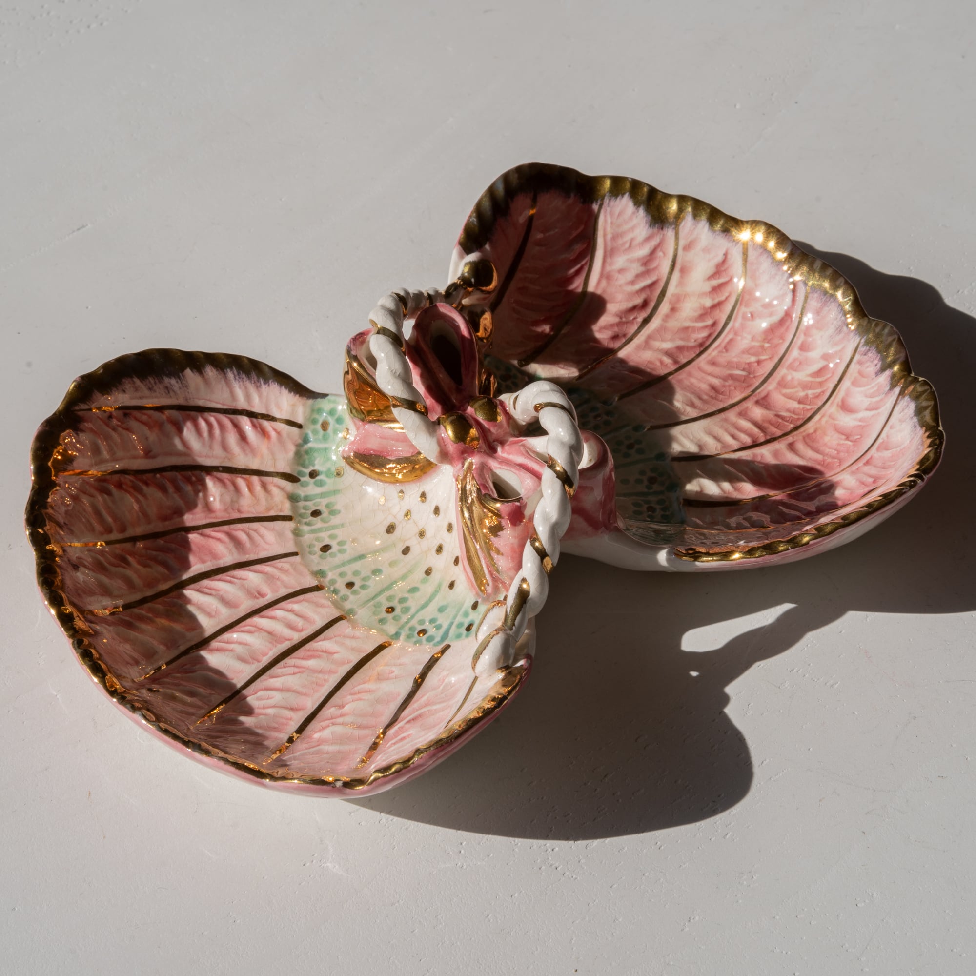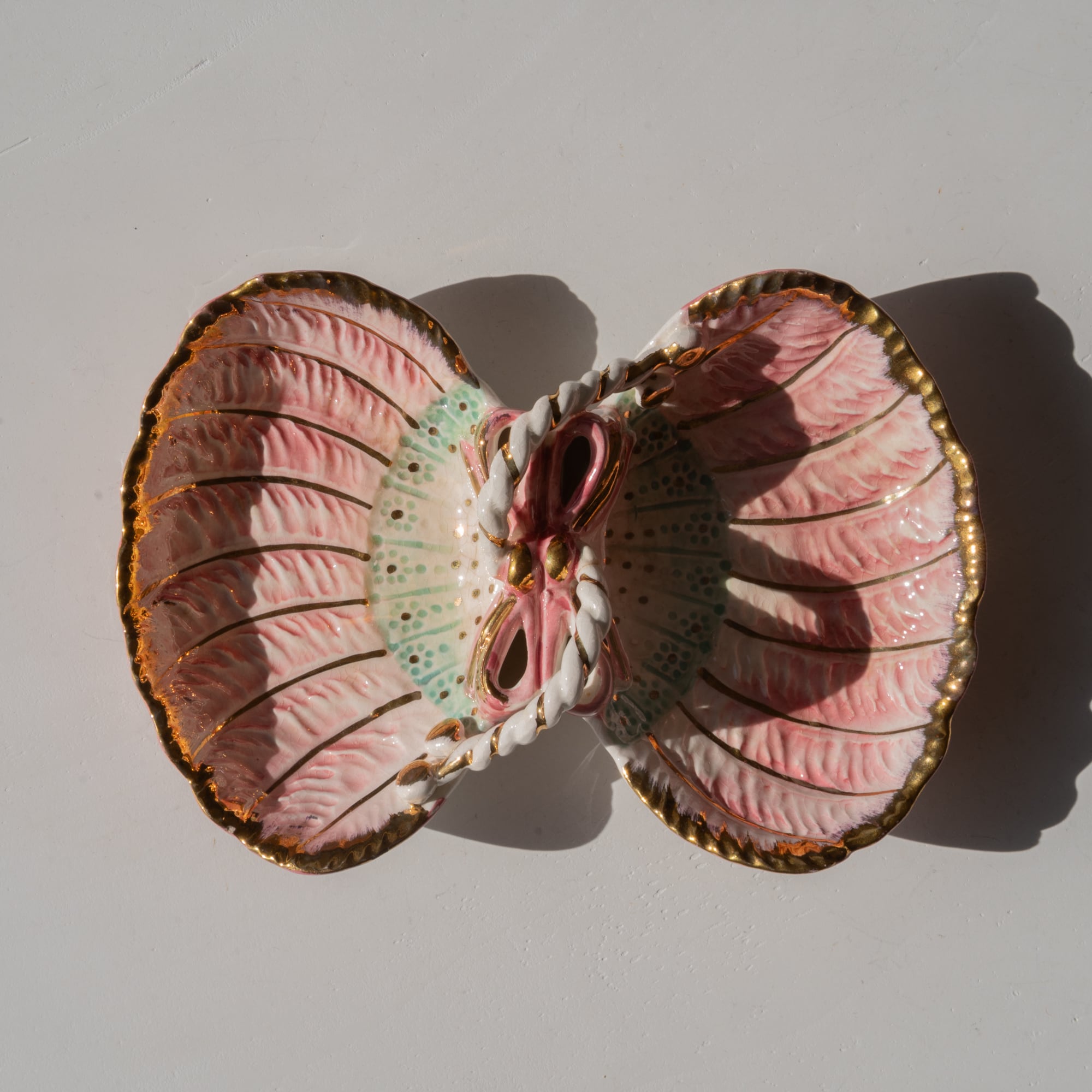 ダブルシェルのモチーフで、リボンが二枚をつなぐ可憐なデザイン。