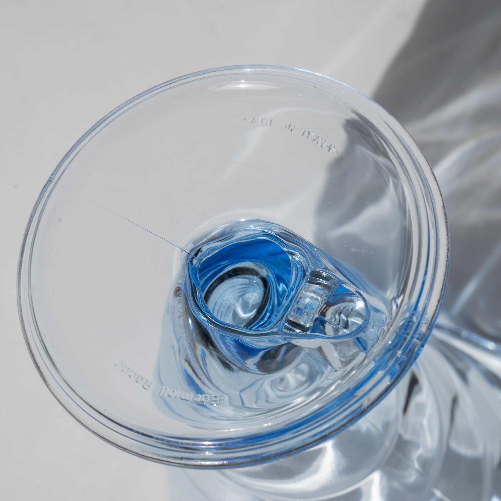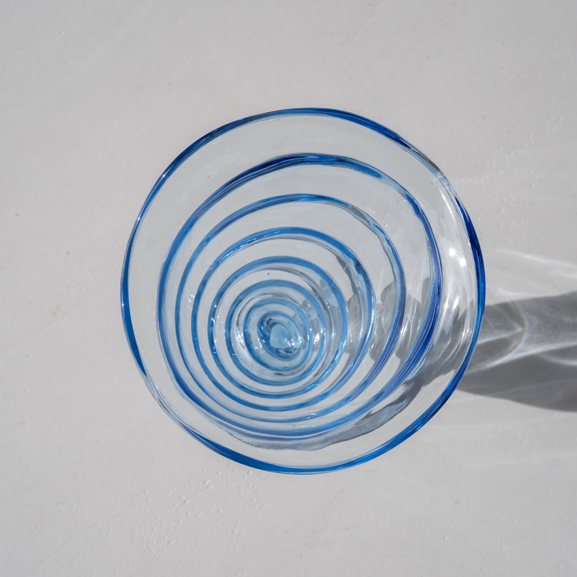 透明感あるブルーガラスで、陽が当たると美しく影を落とします。