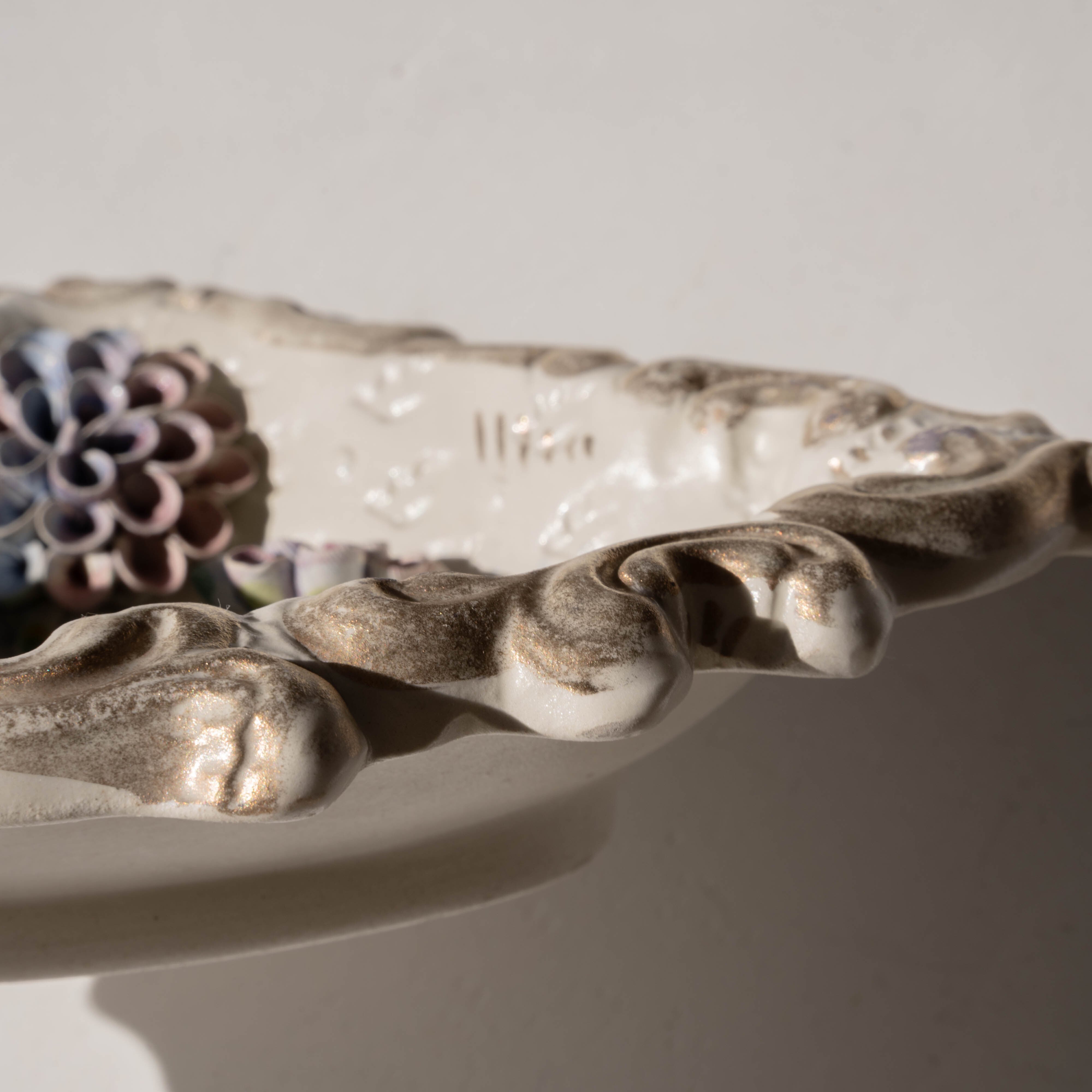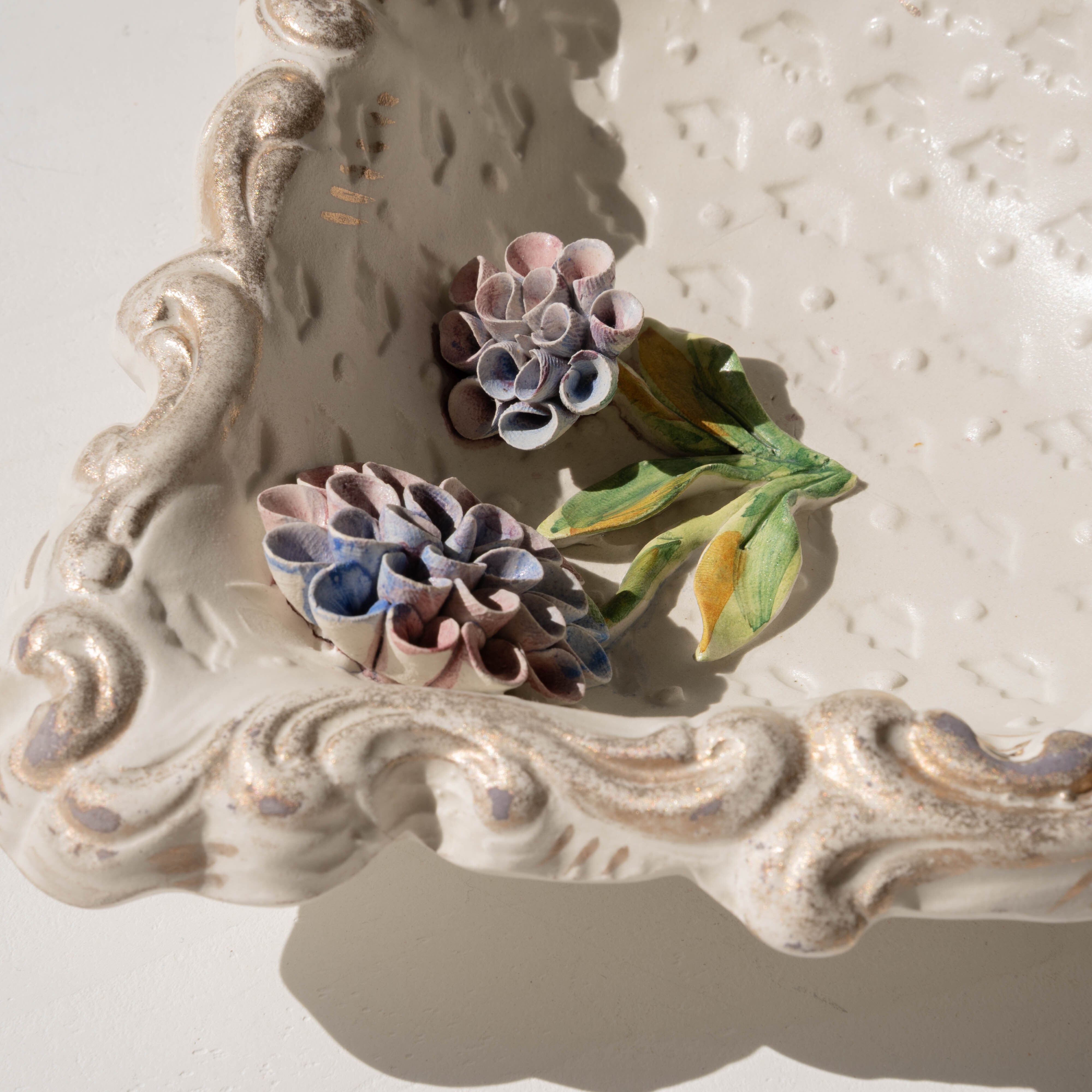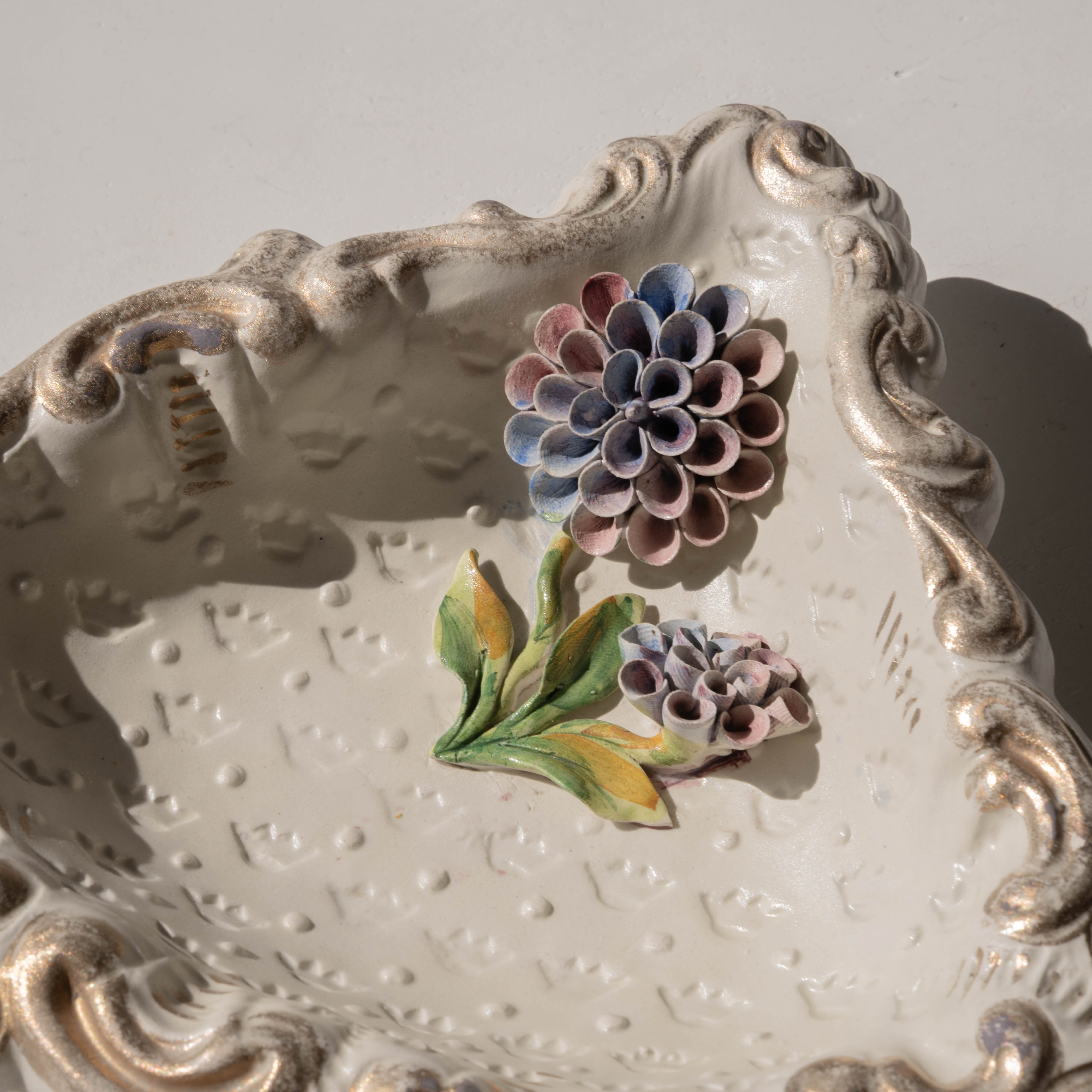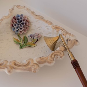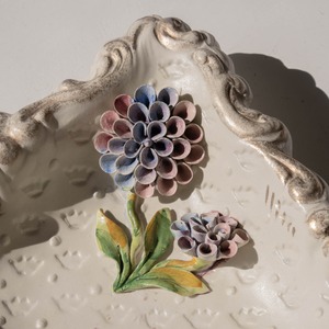 あたたかみのある陶器の味わいと、立体感のあるお花の装飾に魅了されるアイテム。