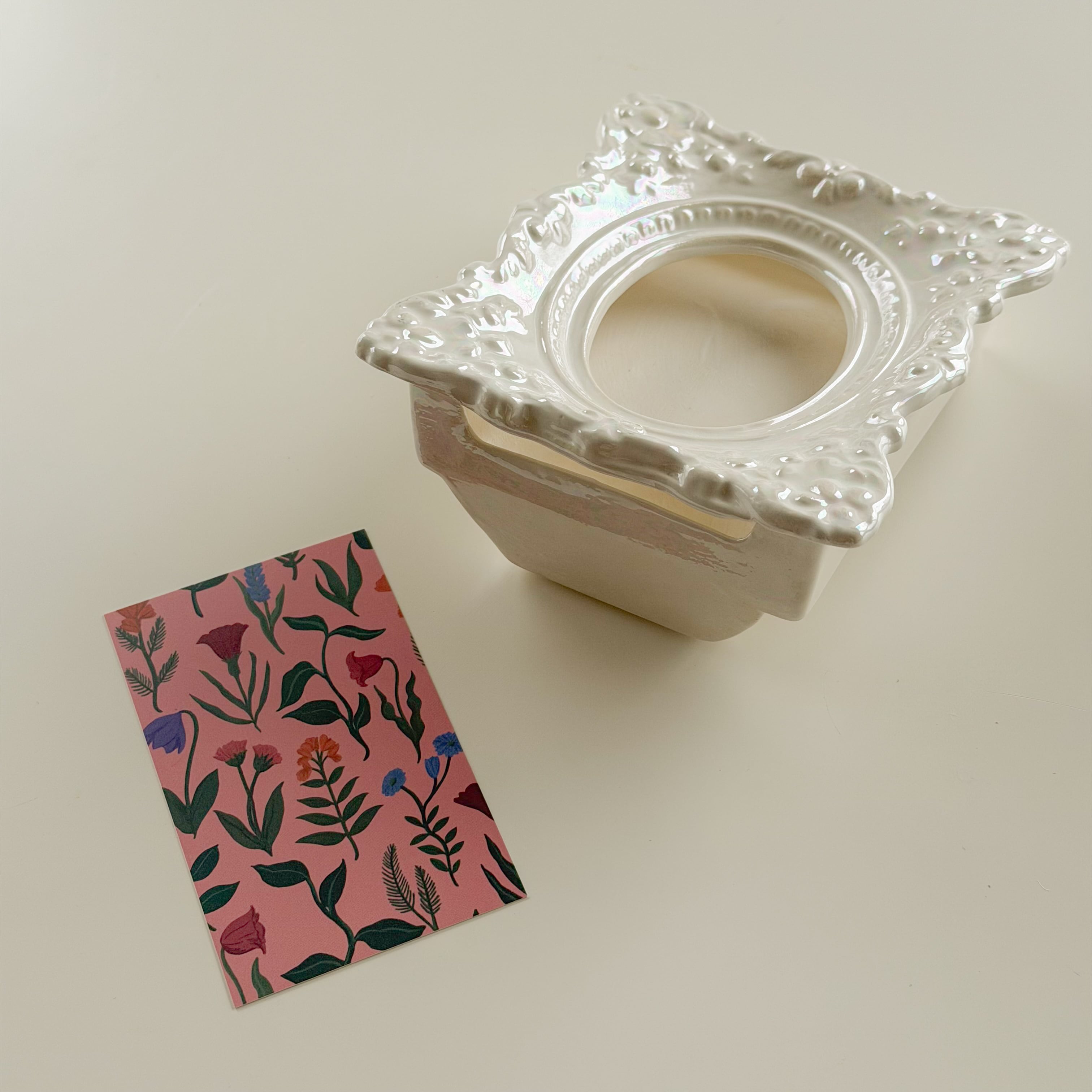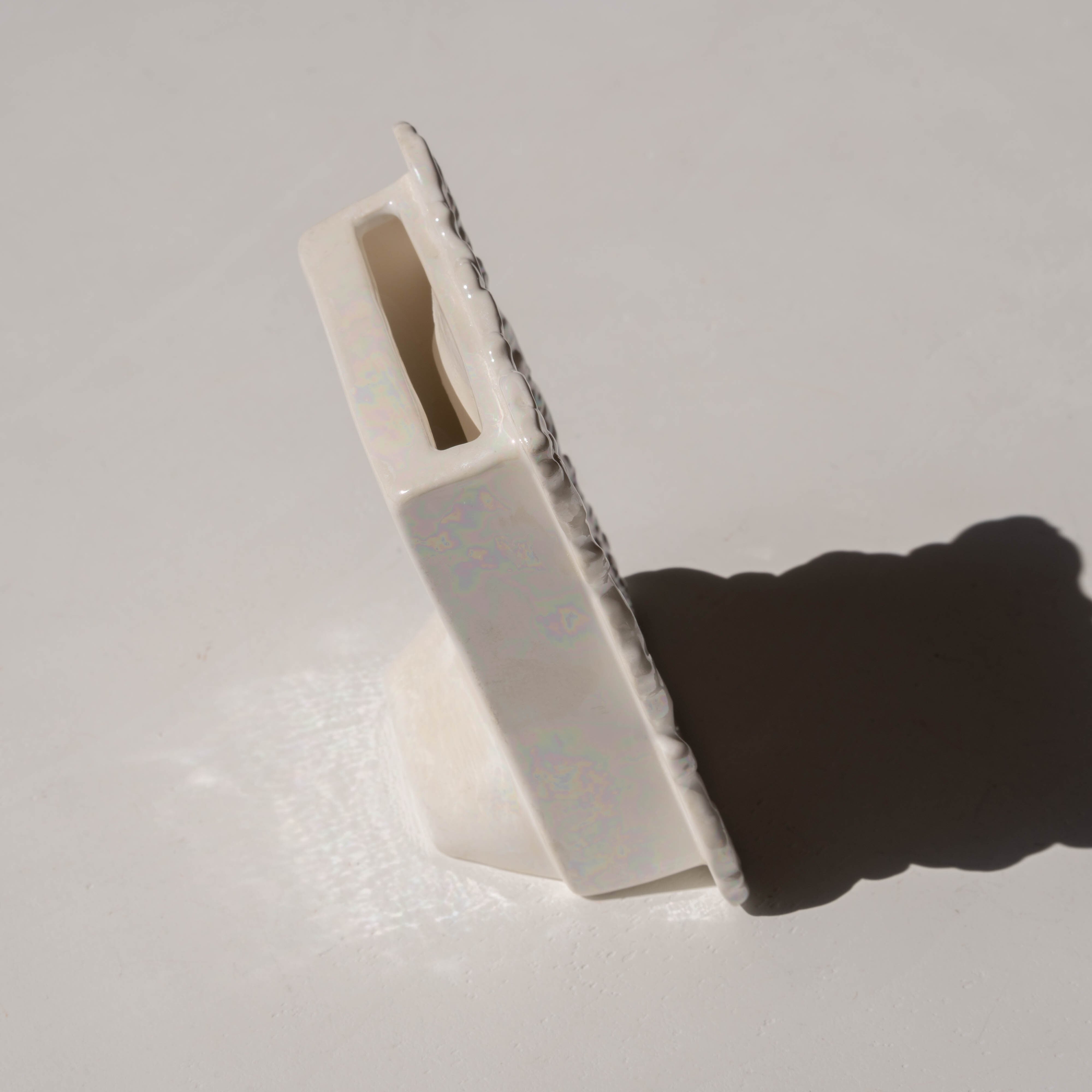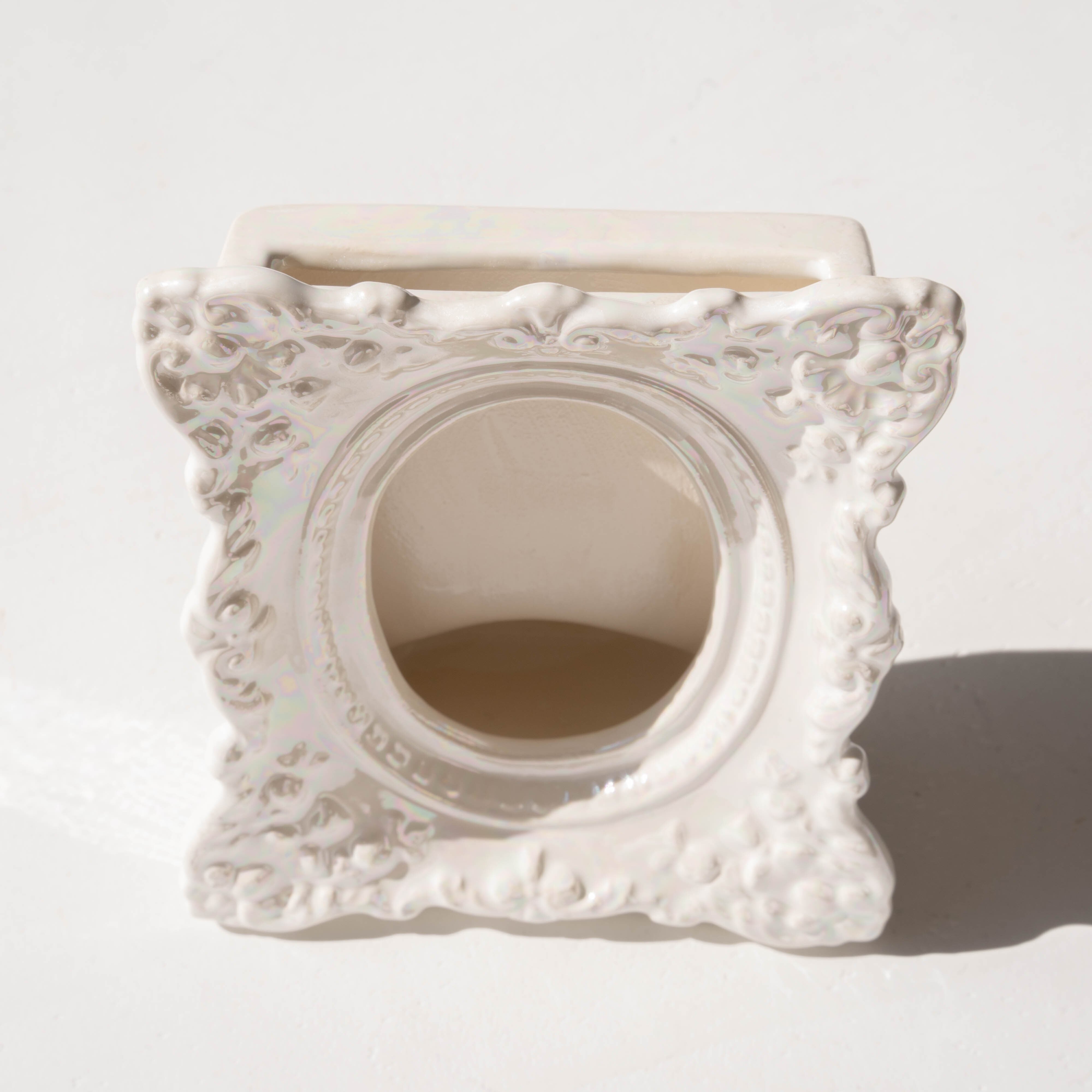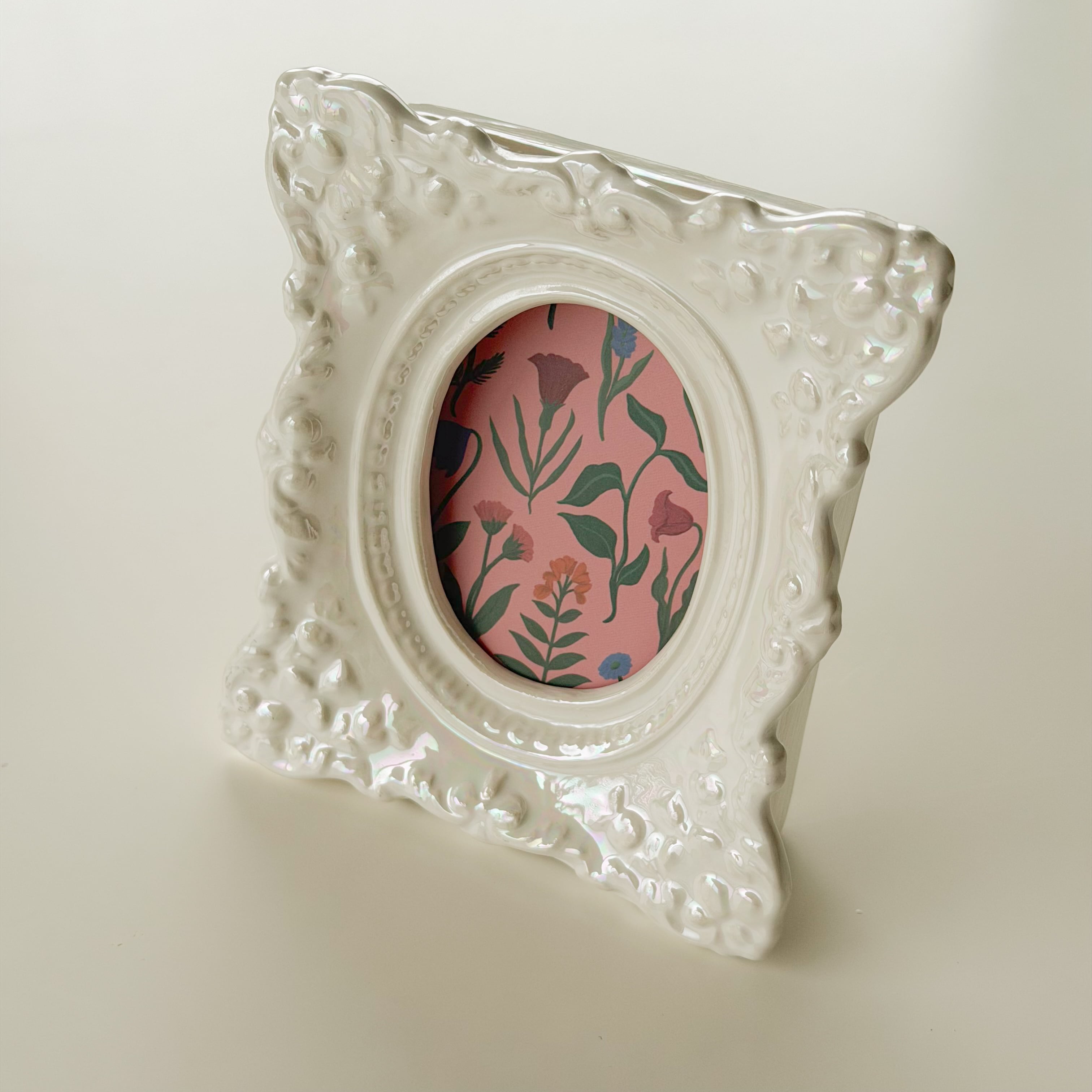 虹色に煌めくパール磁器で、細かな装飾まで陰影が美しい。