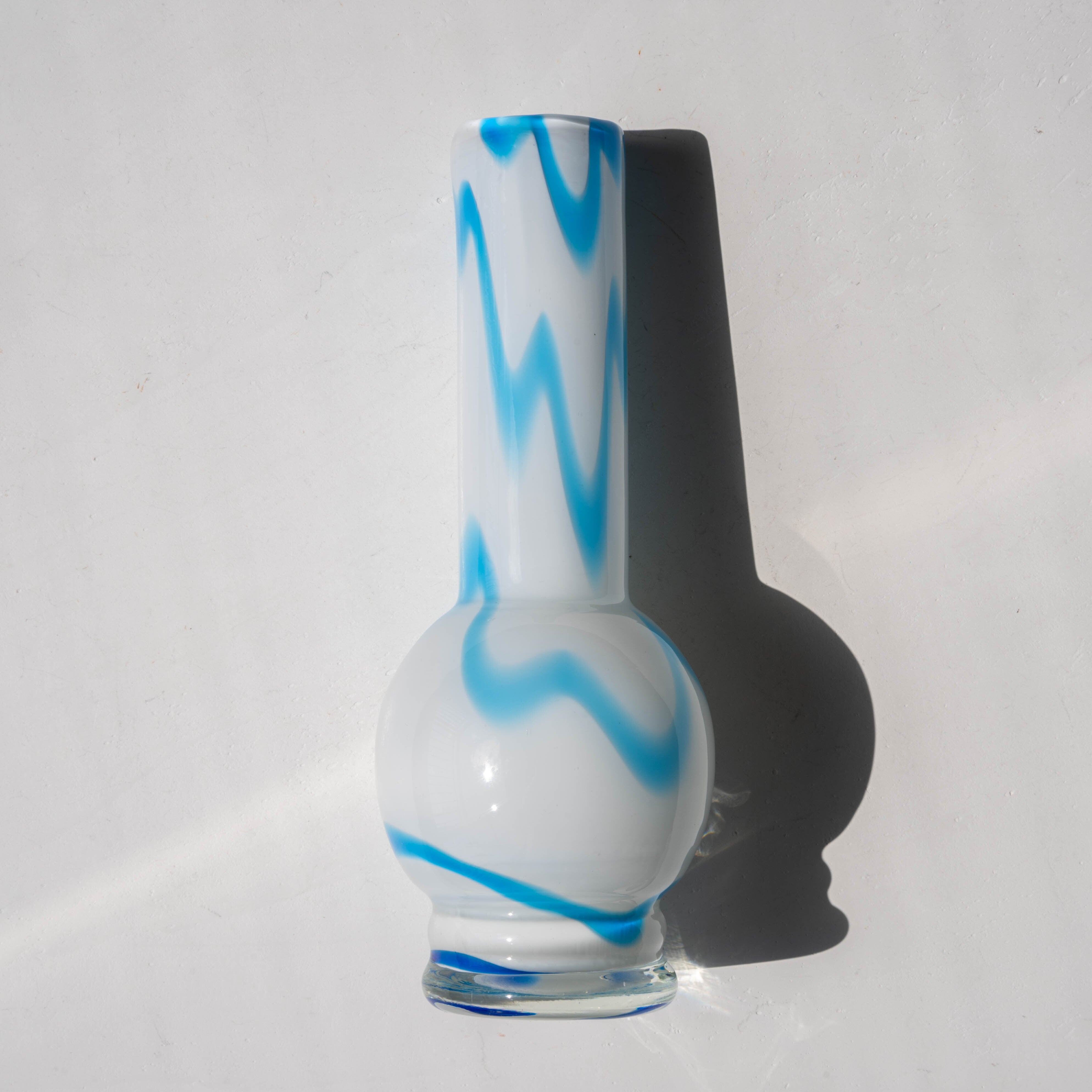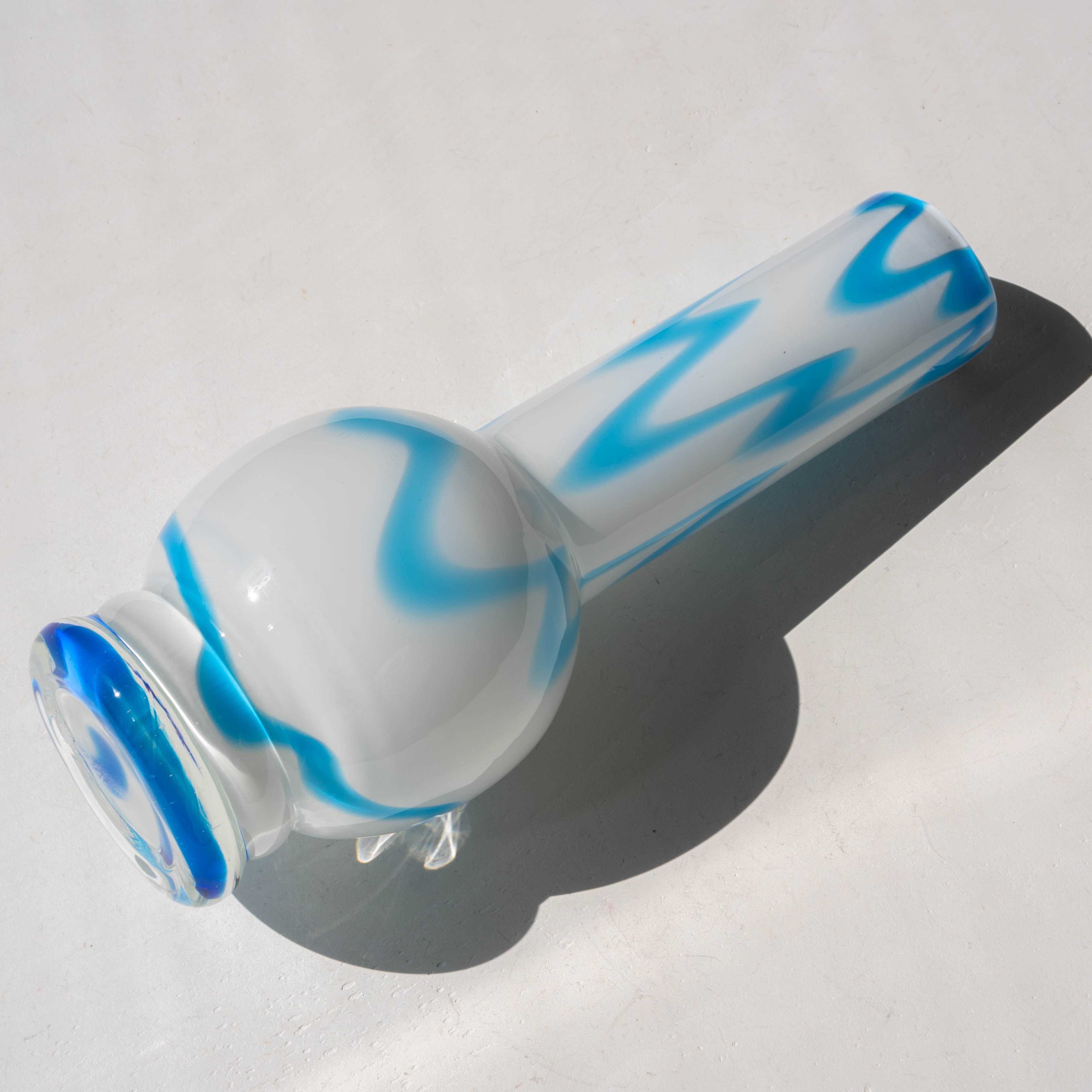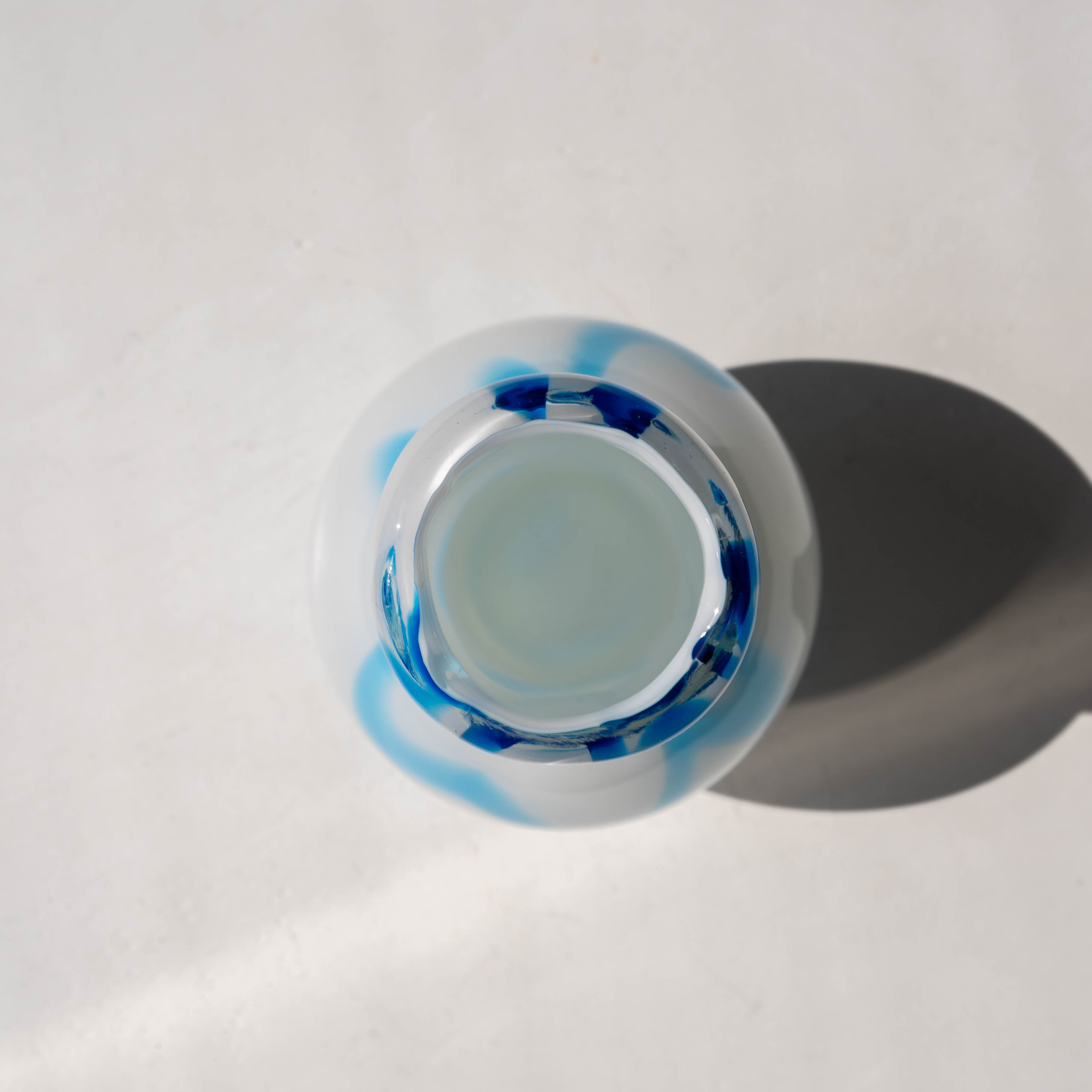 ソーダブルーの独特な模様の入り方は、一点ものの吹きガラスならでは。