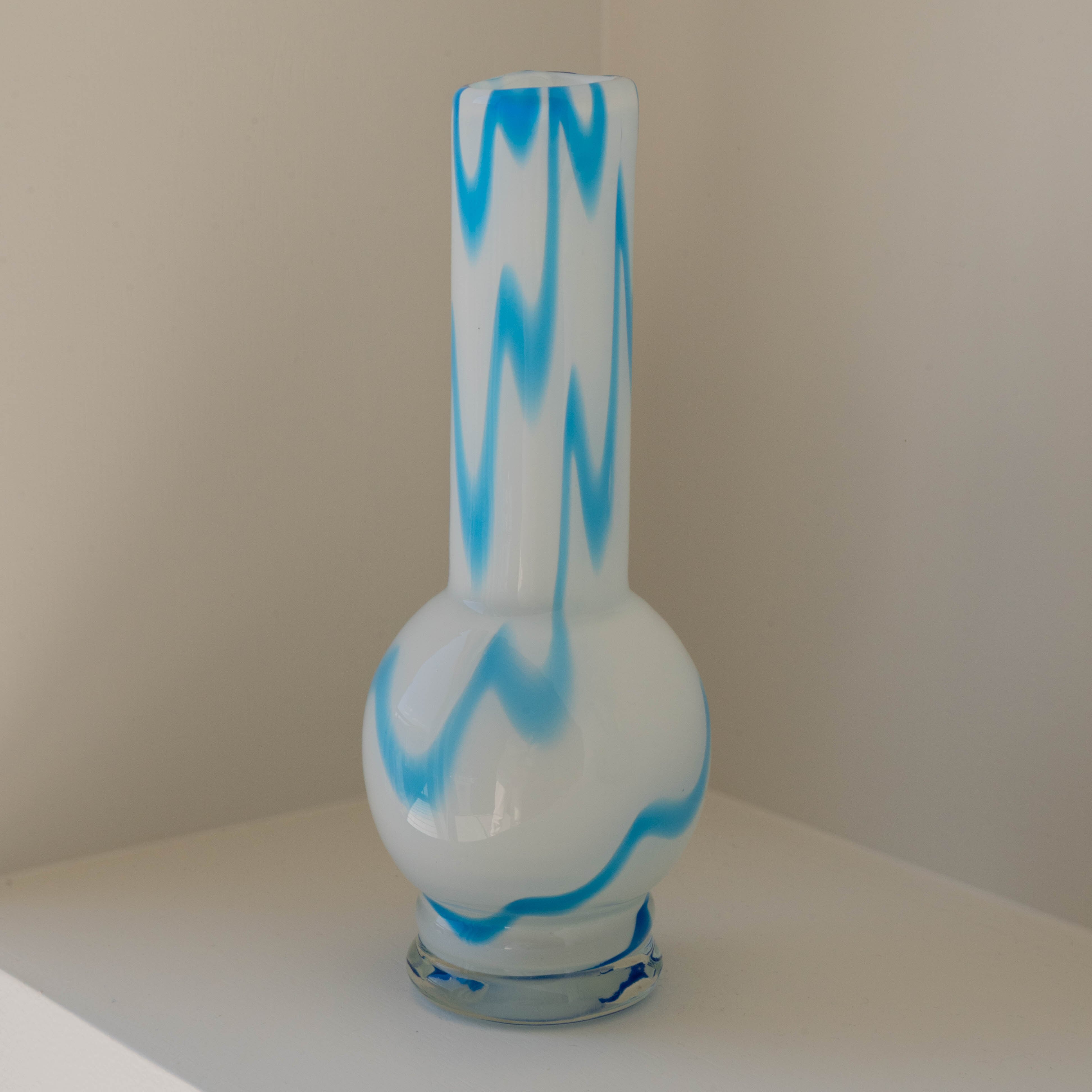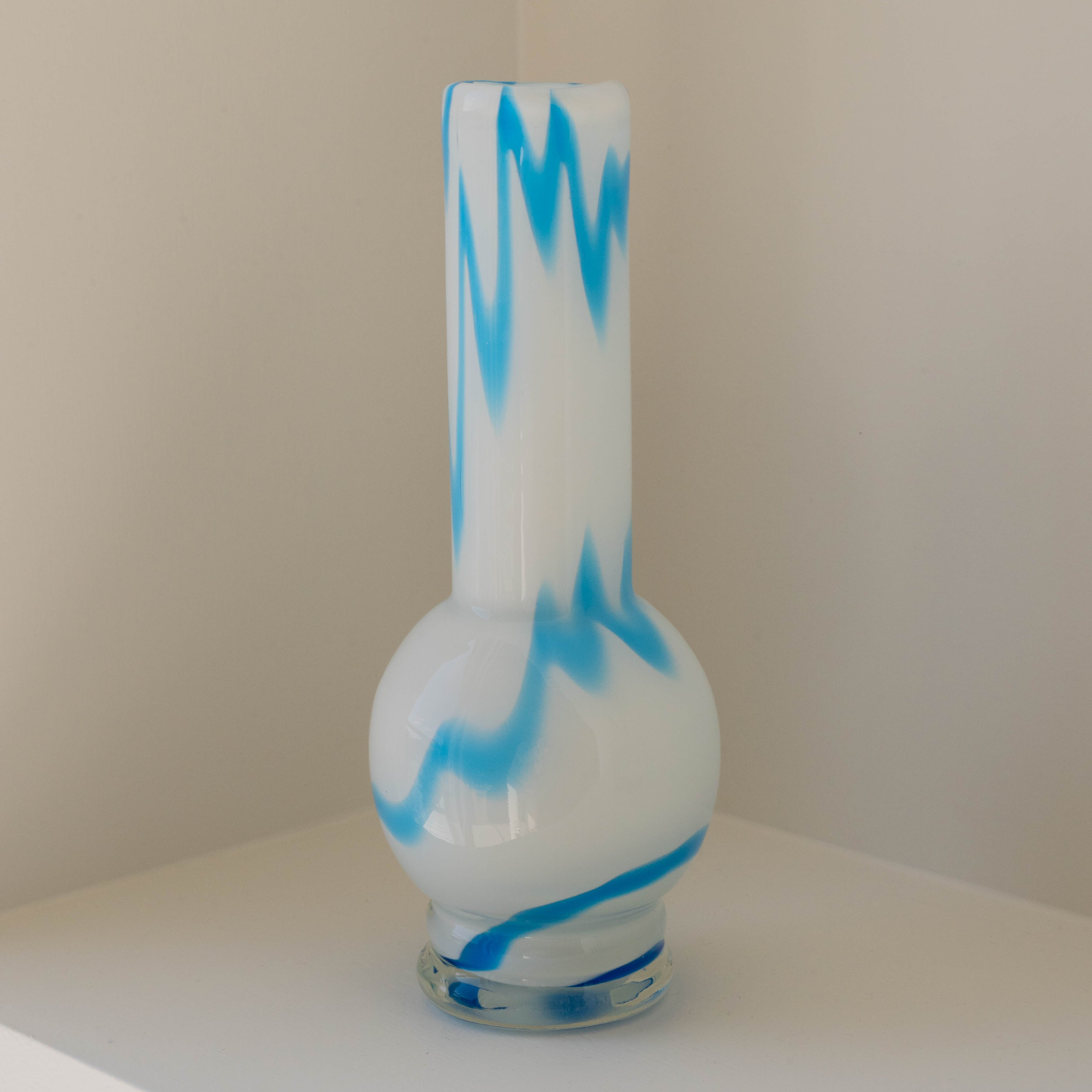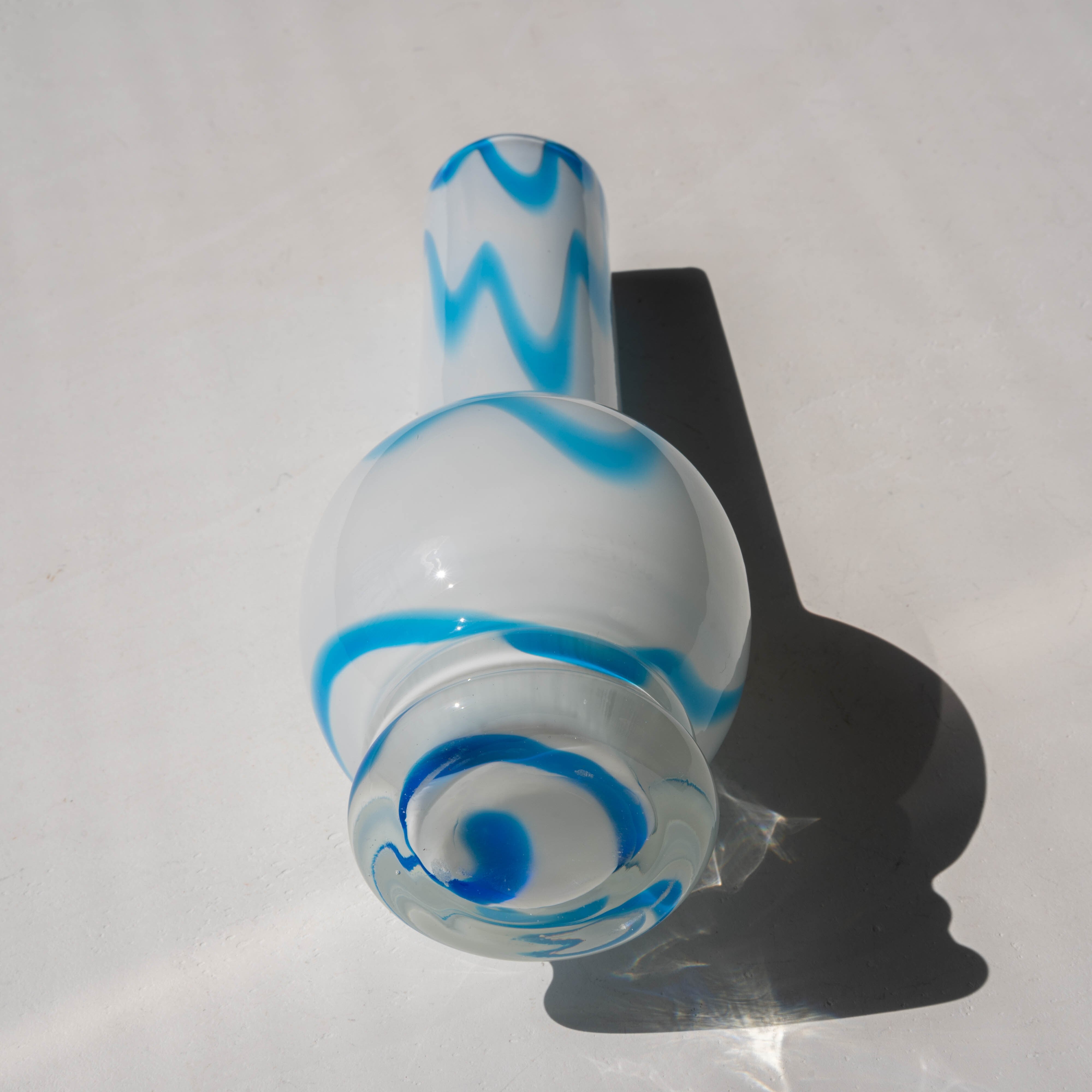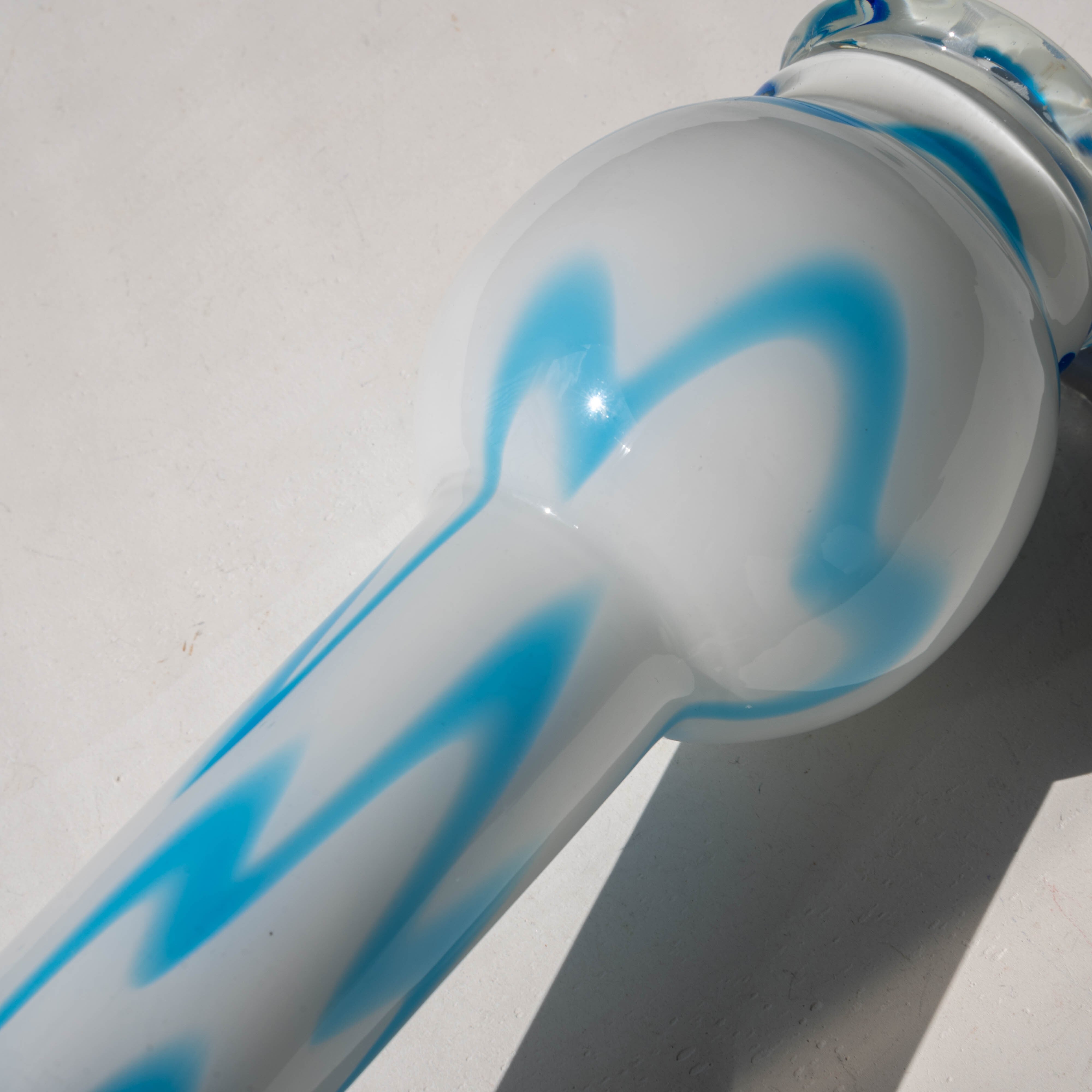 ソーダブルーの独特な模様の入り方は、一点ものの吹きガラスならでは。