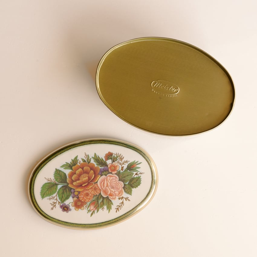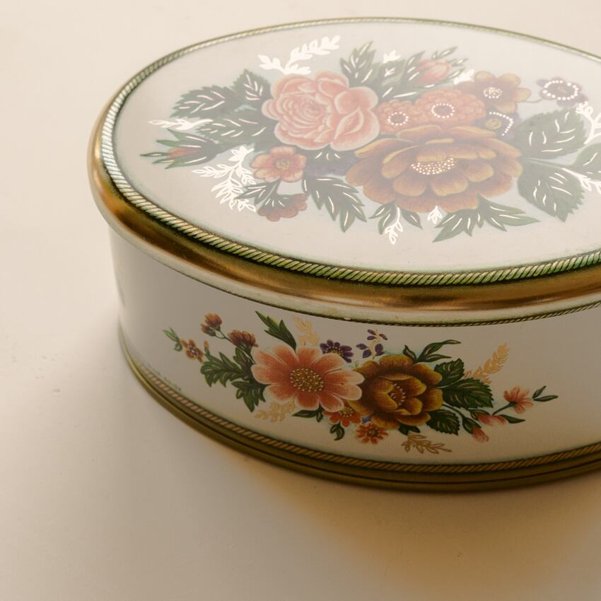オーバル型で、外装はヴィクトリアン調のレトロな花柄。