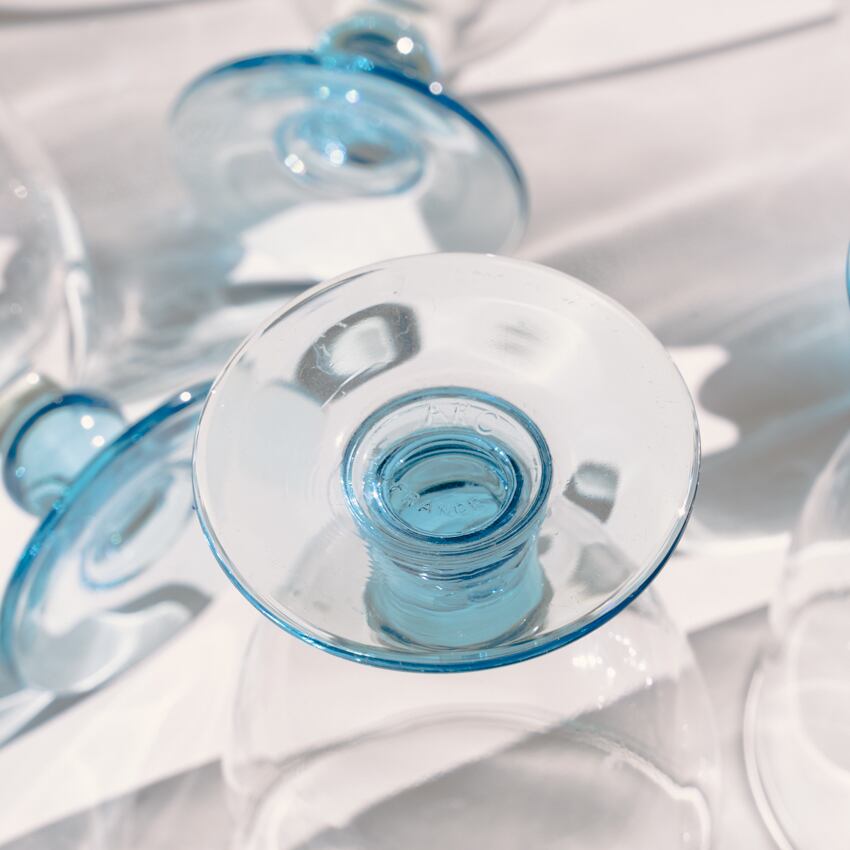 ステム(持ち手)にブルーの丸い飾りがついており、全体的にころんとしたデザインになっています。