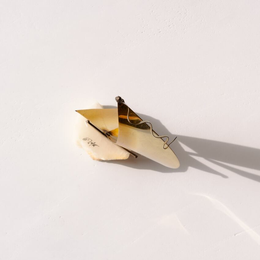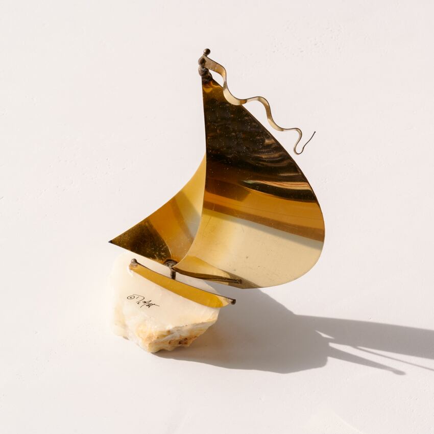 真鍮の船の土台はオニキスの石でつくられており、素材の美しさも光る作品。
