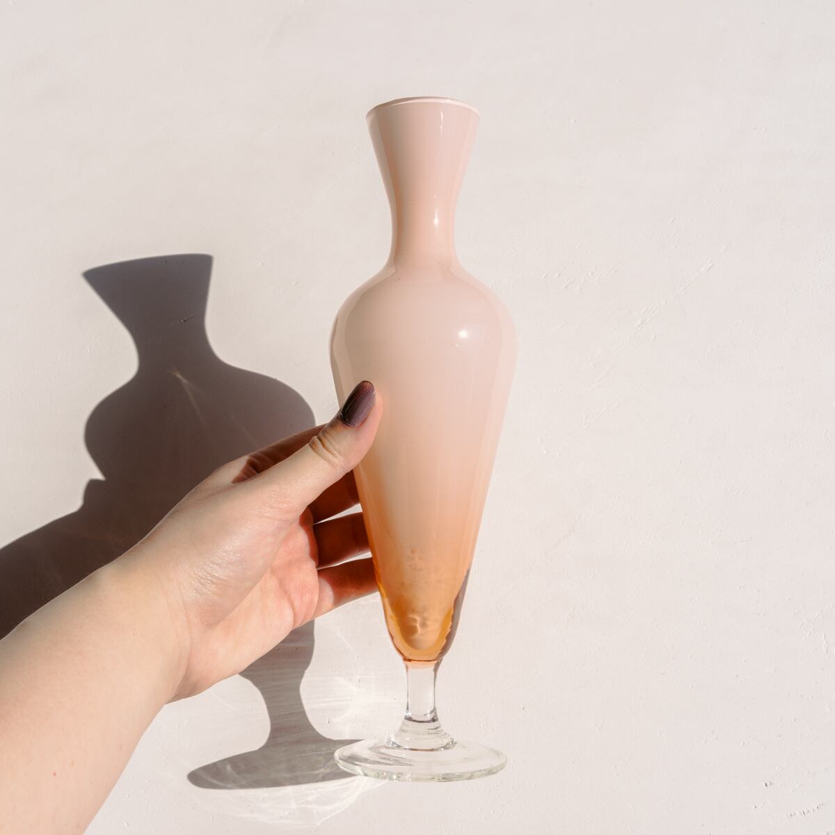 目立つ傷やカケ等はなく、良好なヴィンテージコンディションです。ほとんど目立ちませんが、花瓶の内部(内側)に数ヶ所、使用に伴う黒い汚れがございますので、詳しくは写真をご確認ください。アルコール除菌、清掃済みです。
