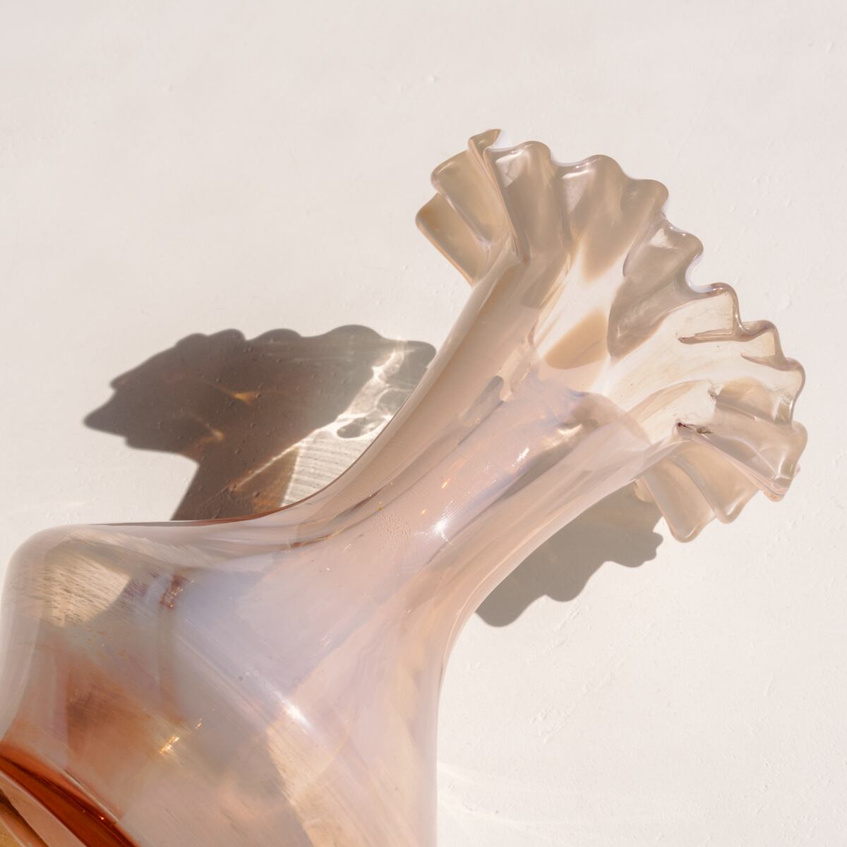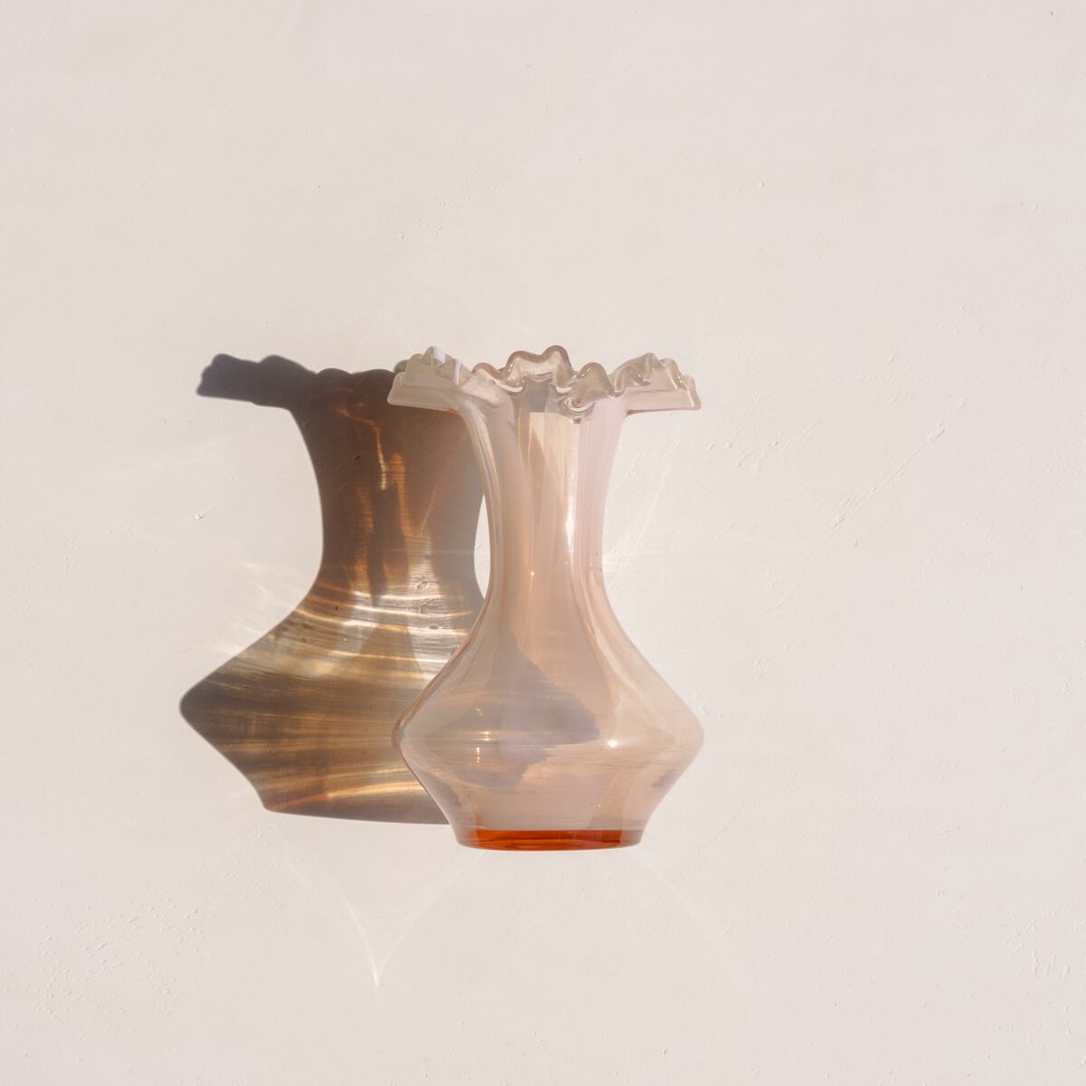 ピンクがかったクリアなガラスに、ホワイトのマーブル模様が広がる美しいデザイン。