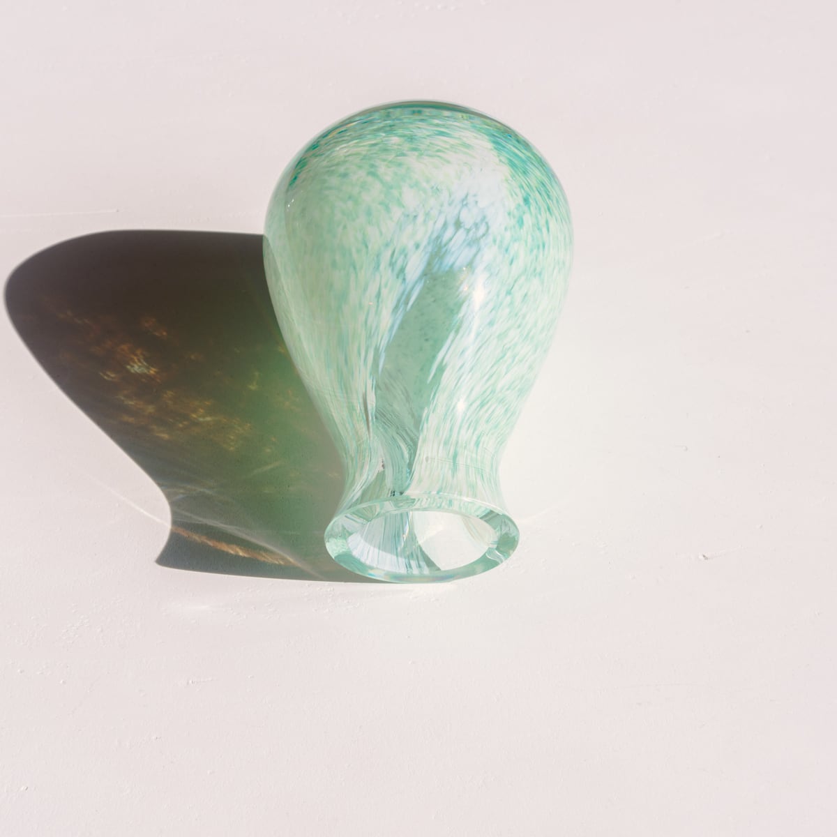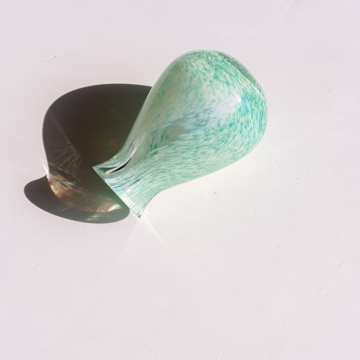 クリアなグリーンのガラスに霜がおりたようなマーブル模様が美しい、ドリーミーなデザイン。