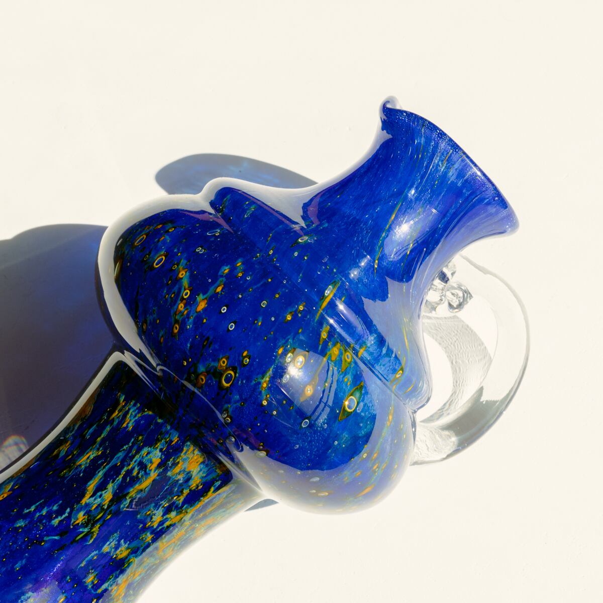 コバルトブルーをベースに、クリアガラスの持ち手、輝くゴールドが散りばめられています。