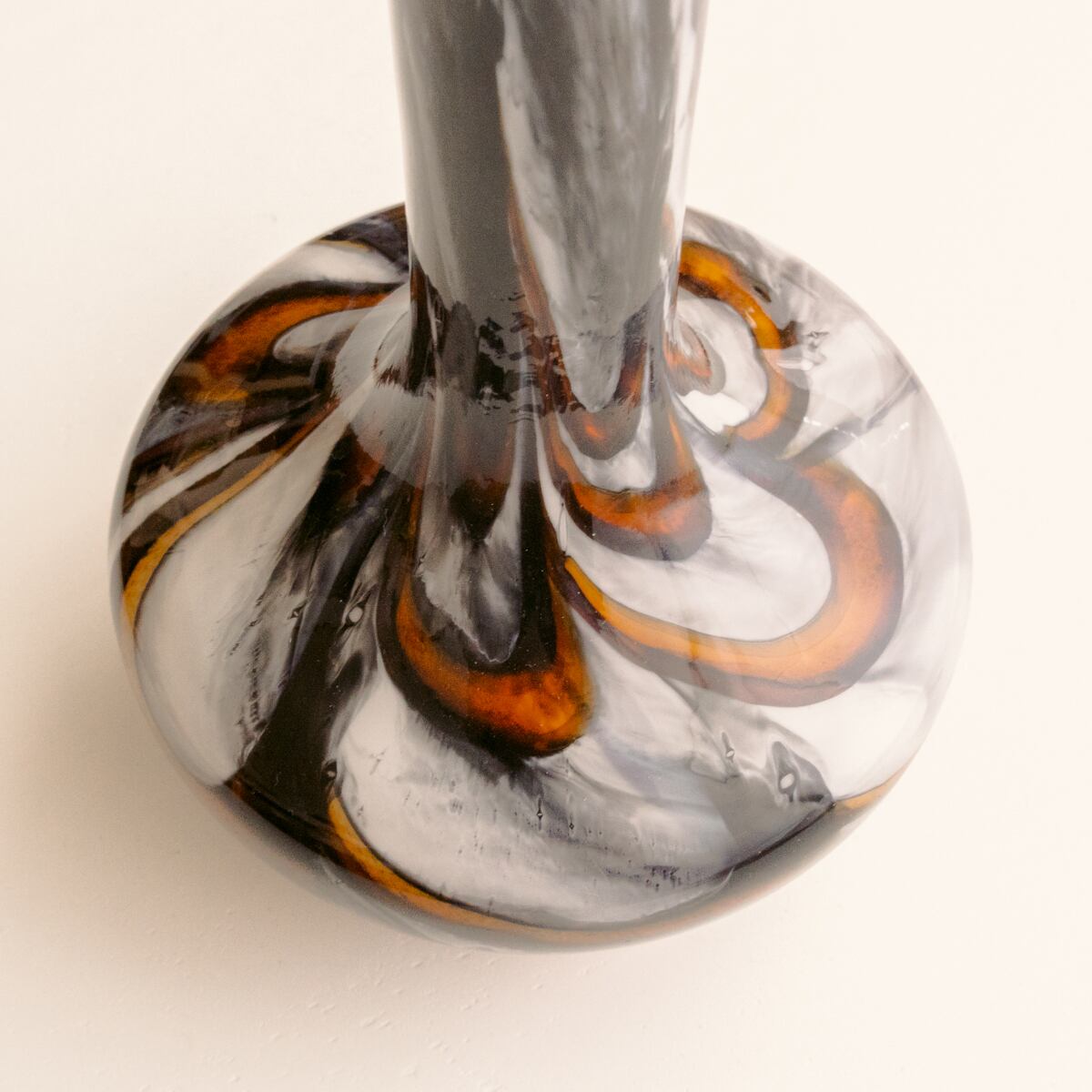 ホワイト、グレー、ブラック、オレンジの流れるような美しいマーブル模様。