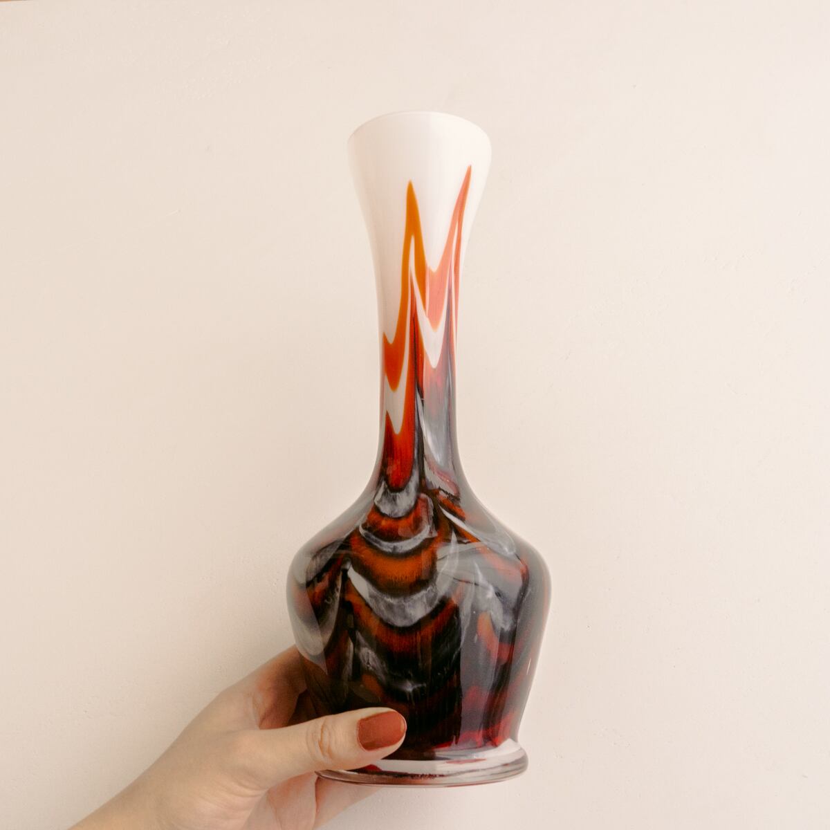 ホワイト、グレー、ブラック、オレンジの流れるような美しいマーブル模様。