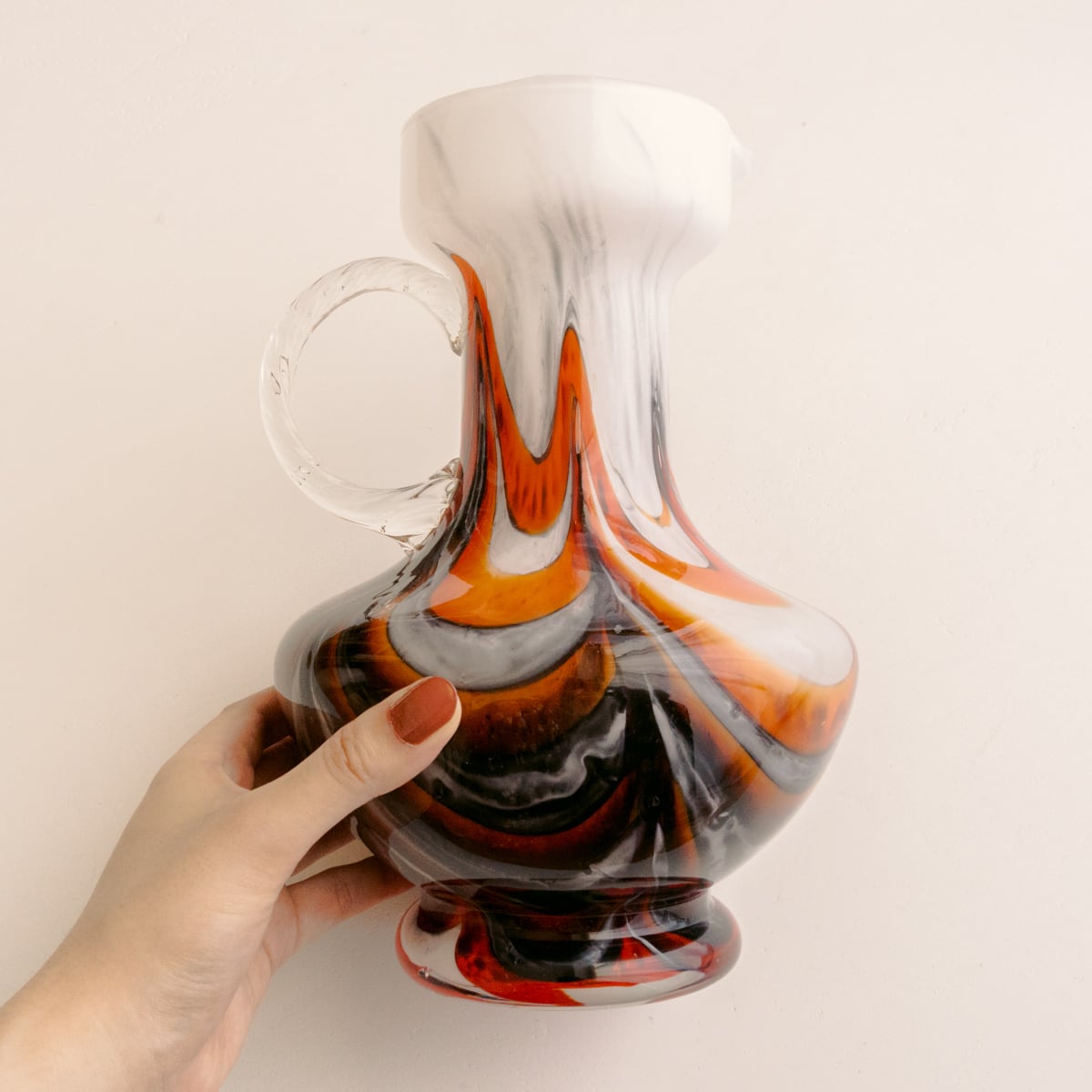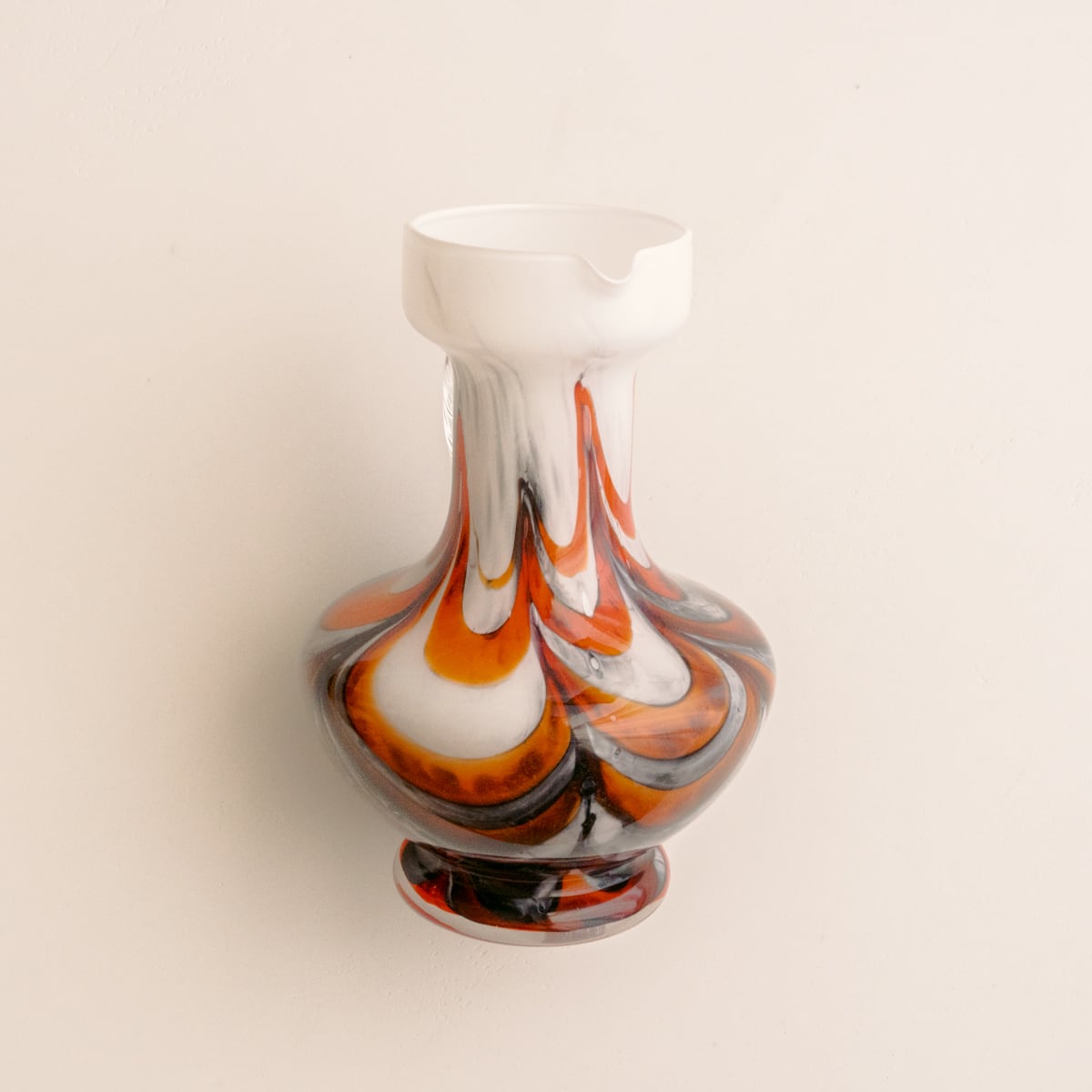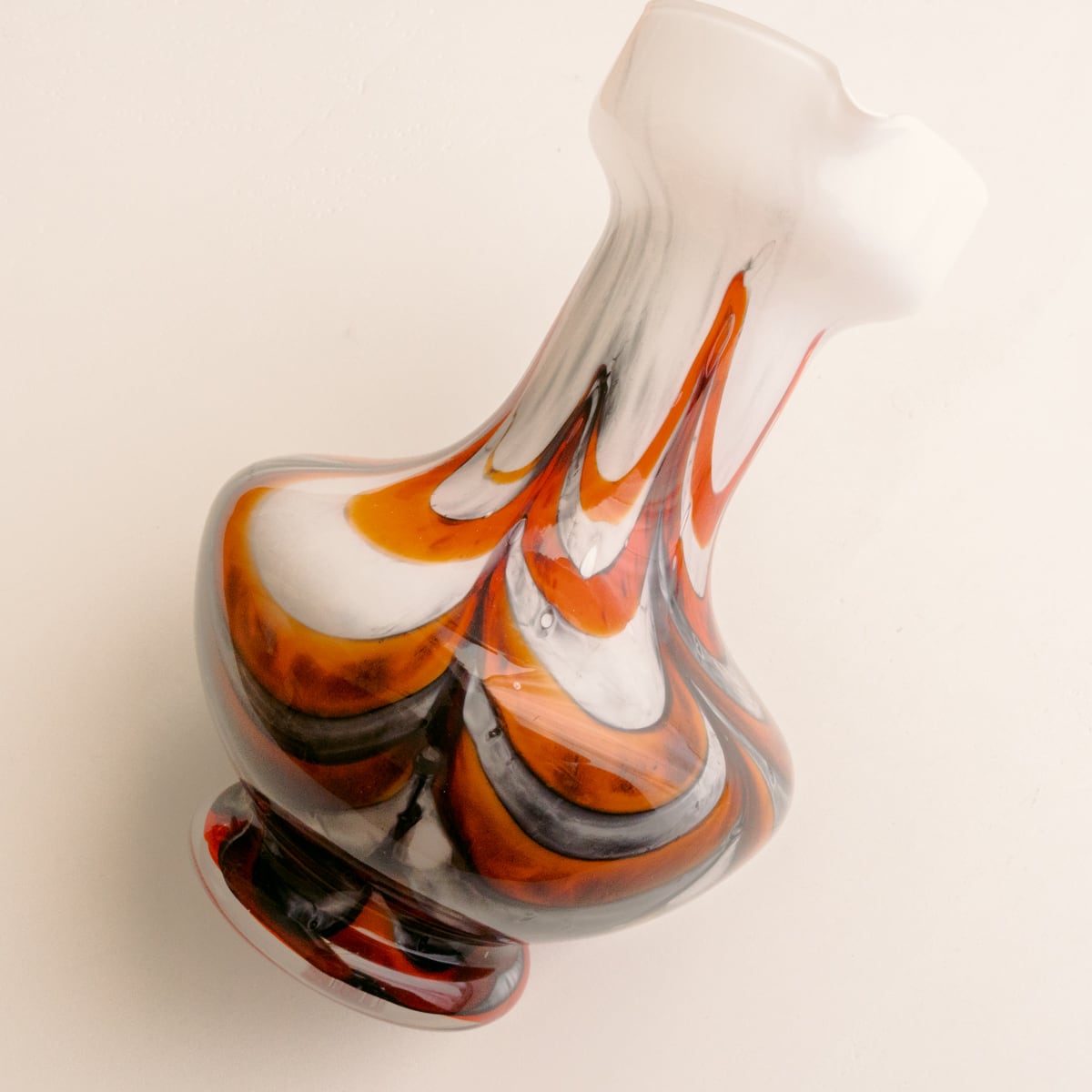 ホワイト、グレー、ブラック、オレンジの流れるような美しいマーブル模様。