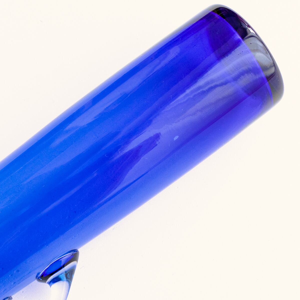 透き通るようなブルーが美しく、片側にだけついている小さなクリアガラスの持ち手が、アンバランスで可愛らしいです。