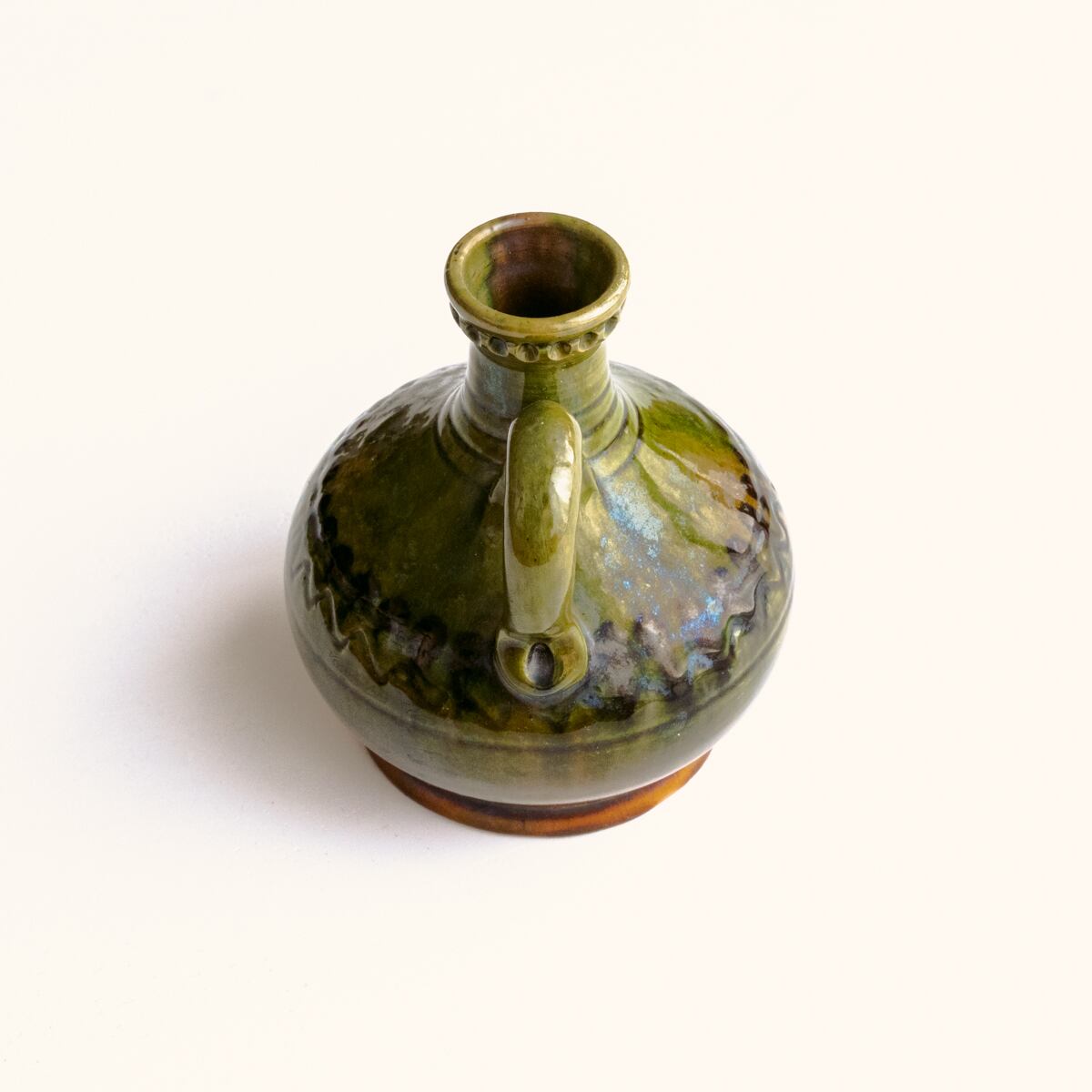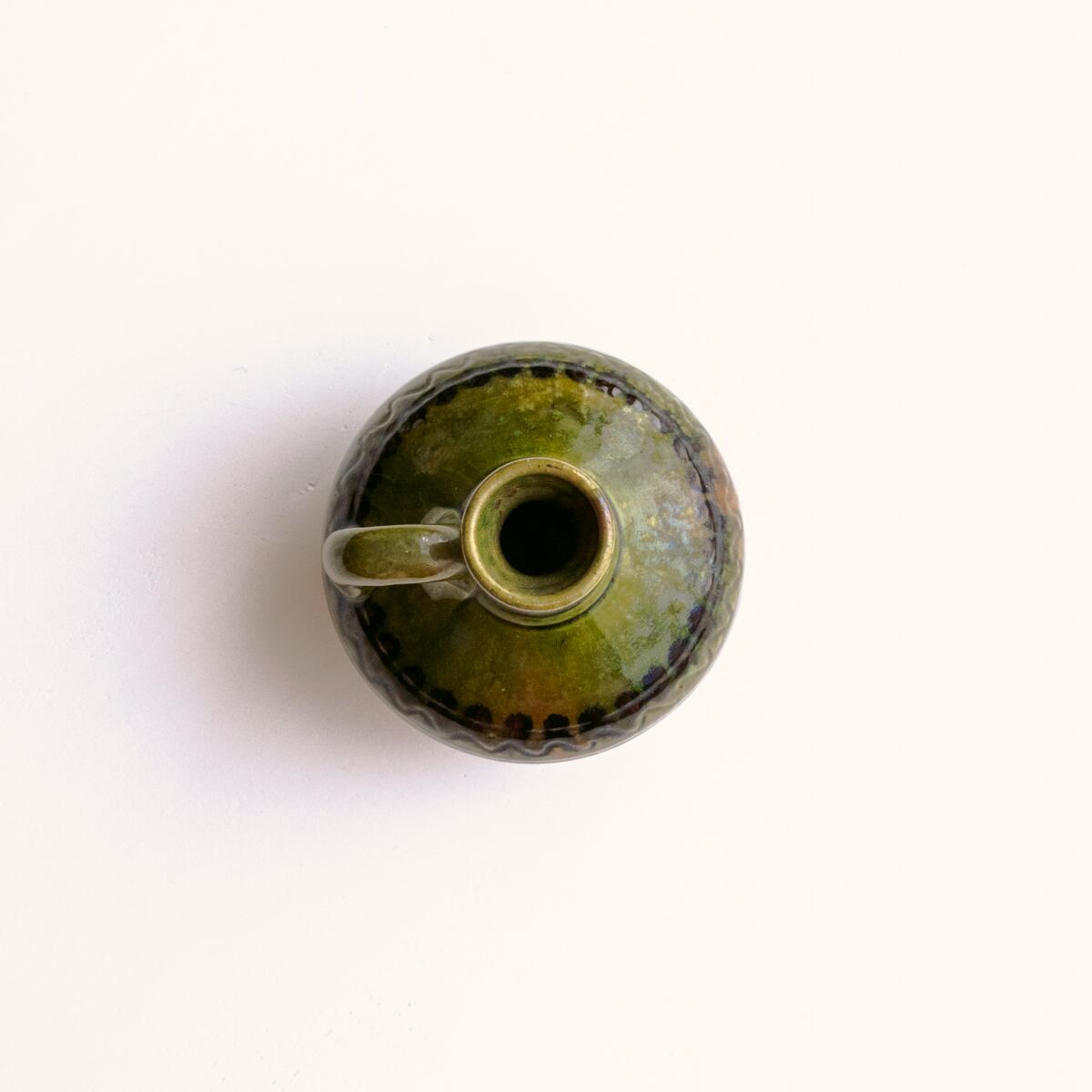 取手付きの、ころんとした片手サイズの花器です。