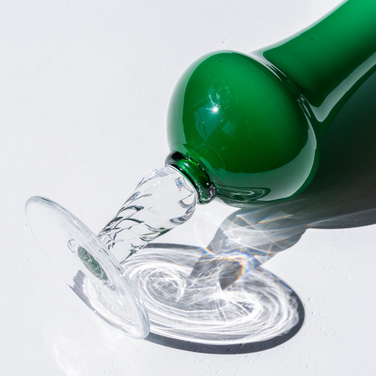 ミルキーなエメラルドグリーンとなめらかな質感が絶妙で、クリアガラスの部分の装飾も素晴らしいミッドセンチュリーな作品。