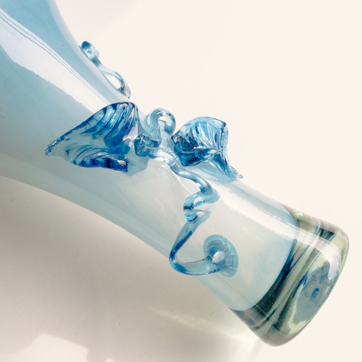 枝と葉を表現したブルーの繊細なガラスアートも魅惑的なアクセントになっています。