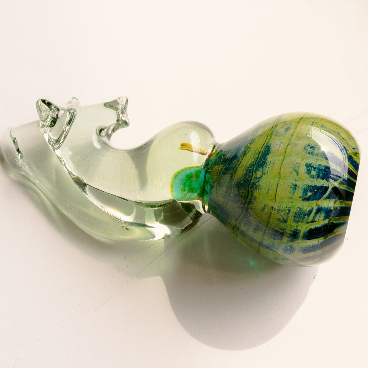 上部はクリアガラス、下部はブルーとグリーンの混ざったマーブル模様のようになっています。
