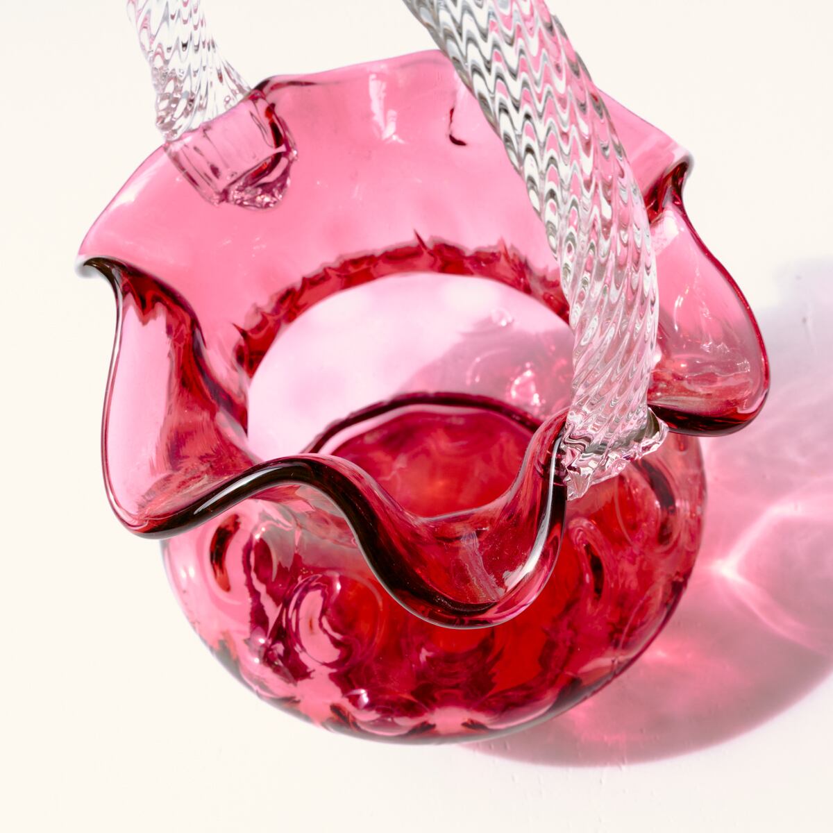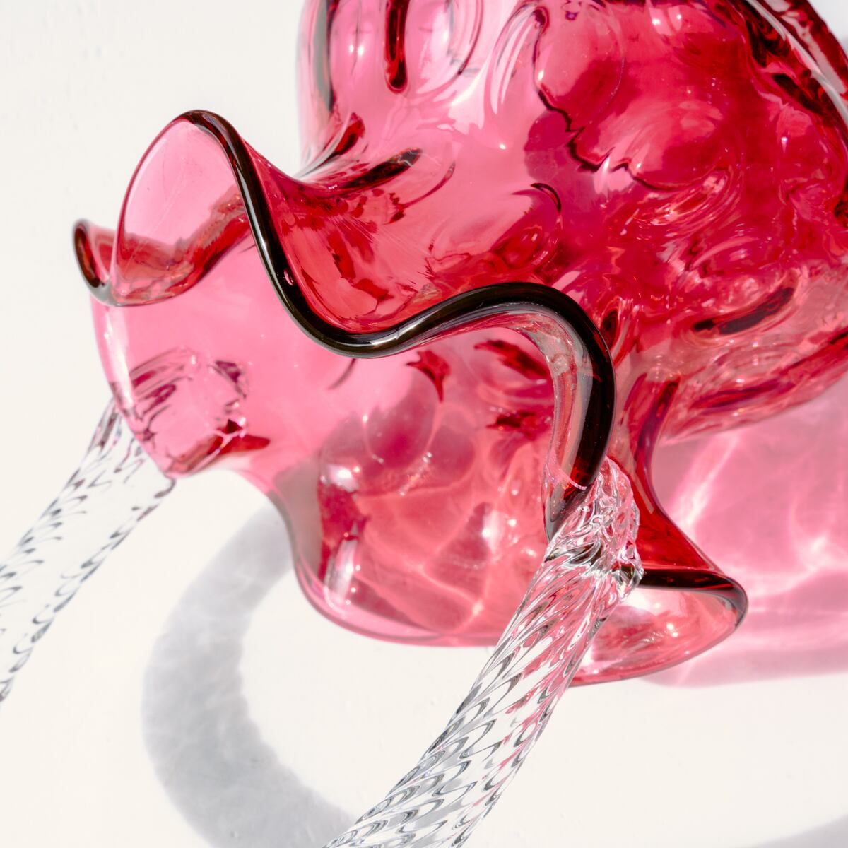 クランベリーのような明るい色が目を引く、可愛らしく美しいアートガラス。