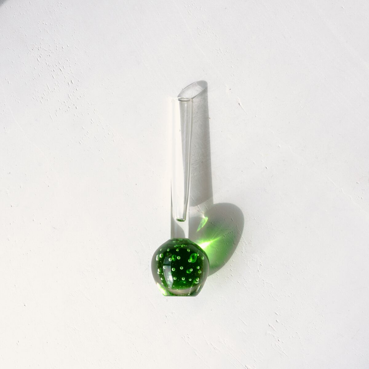 クリアガラスの中に輝くエメラルドグリーンが美しい花器。