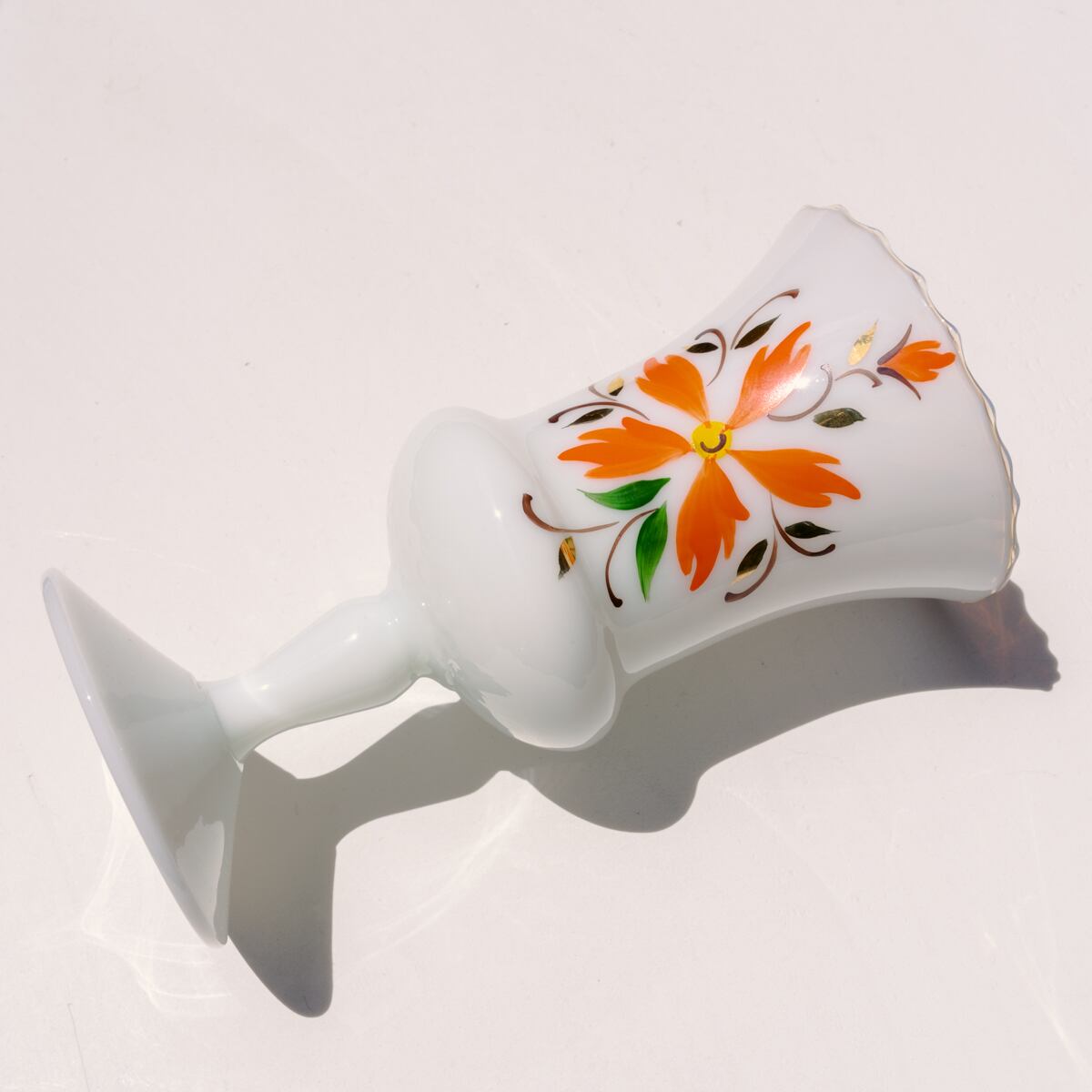オレンジ・イエロー・ゴールド・グリーンの、色鮮やかなハンドペイント装飾が美しく、フリルのような口も可愛いアイテムです。
