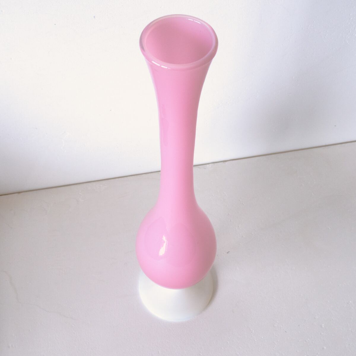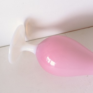 優しいローズピンクとホワイトの色合いで、シャボン玉のような丸みがありながらもすらっとスリムな花器です。