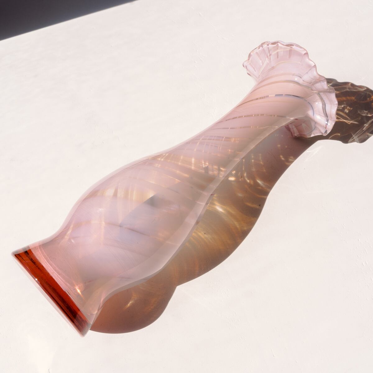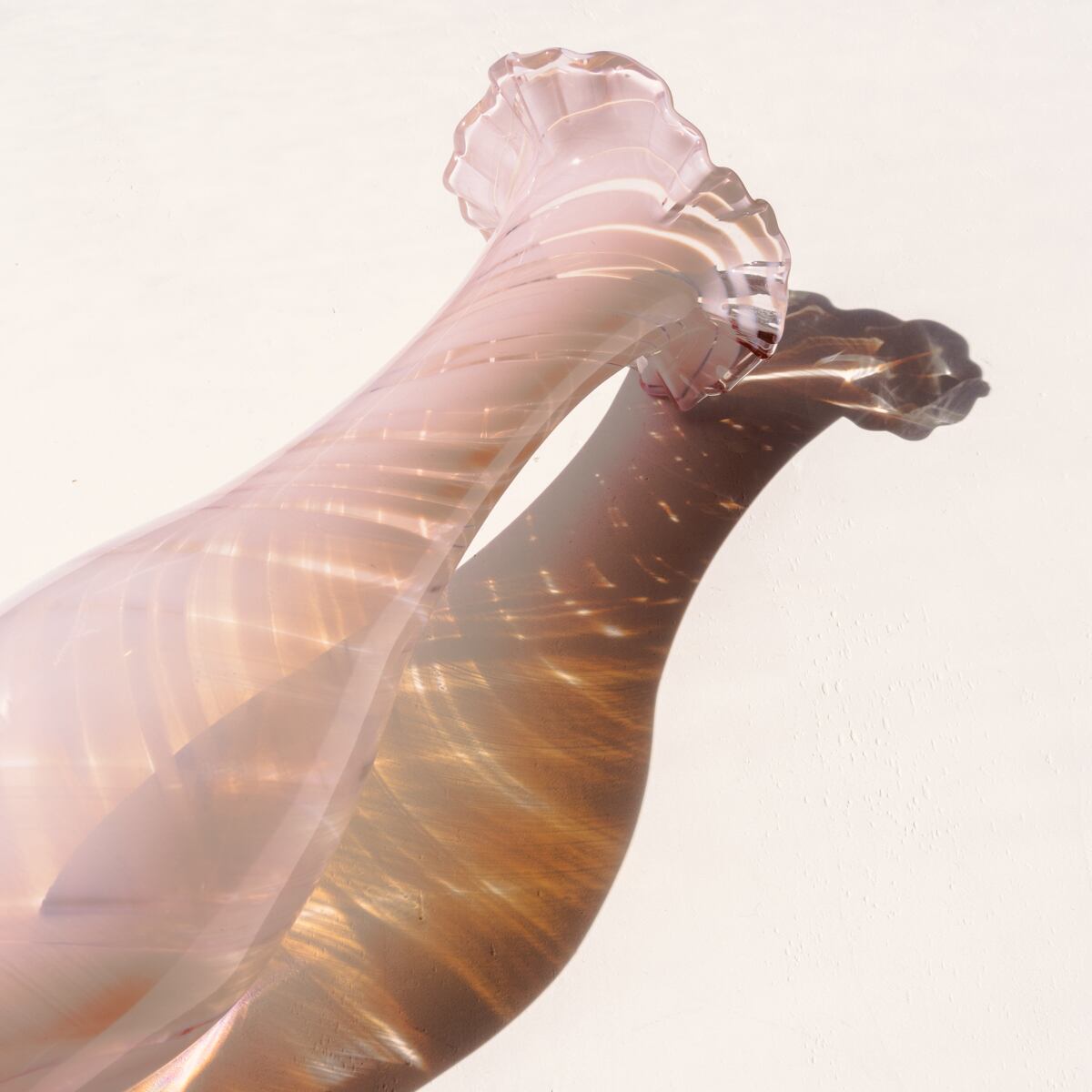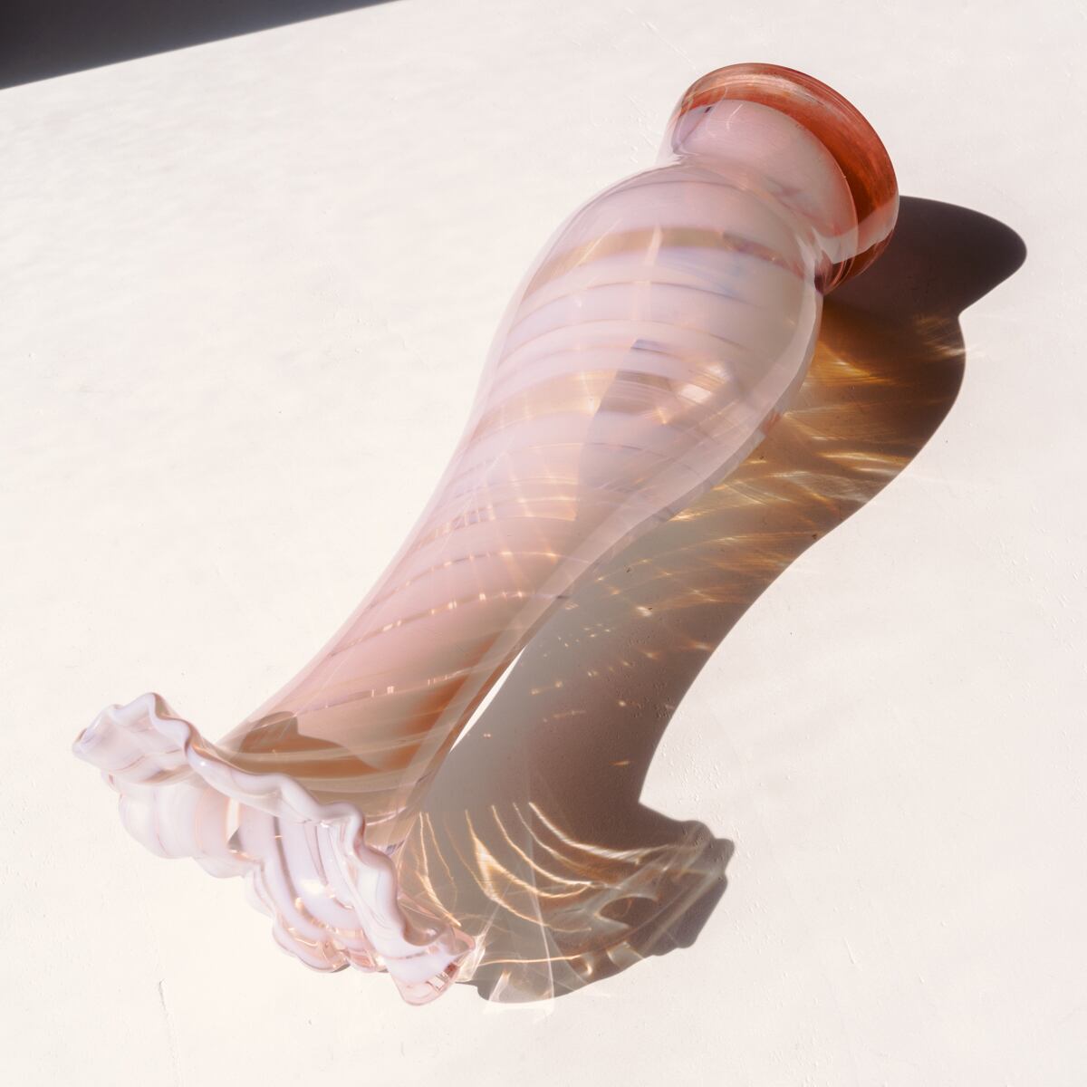 ピンクがかったクリアなガラスに、ホワイトのマーブル模様が広がる美しいデザイン。