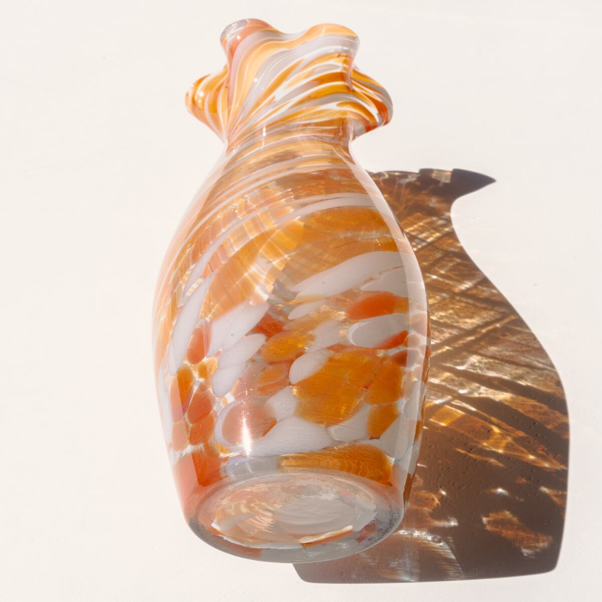 オレンジ、イエロー、ホワイトが入り混じった渦巻き模様で彩られています。
