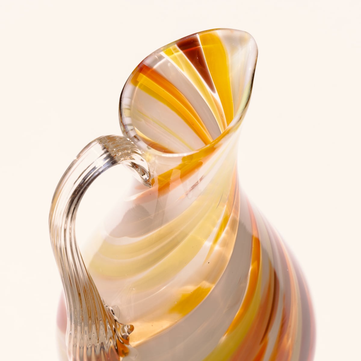 ホワイトをベースに、オレンジブラウン、イエローが入り混じり、流れるようなストライプ模様に彩られています。