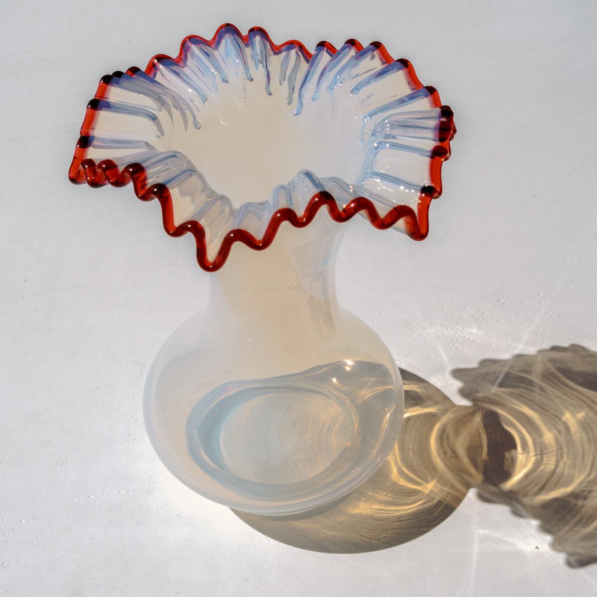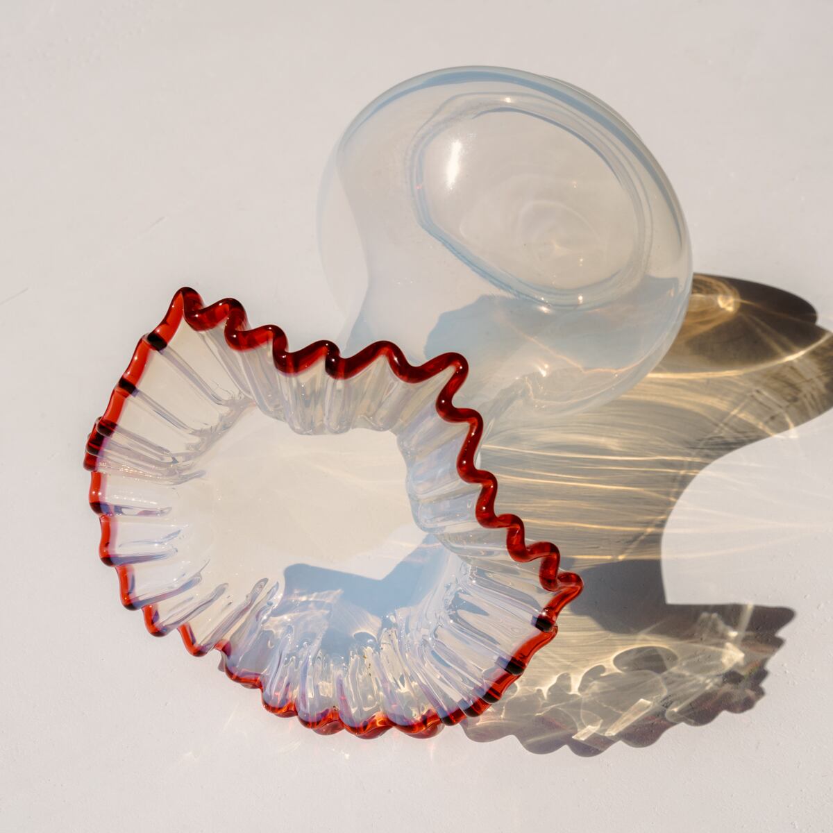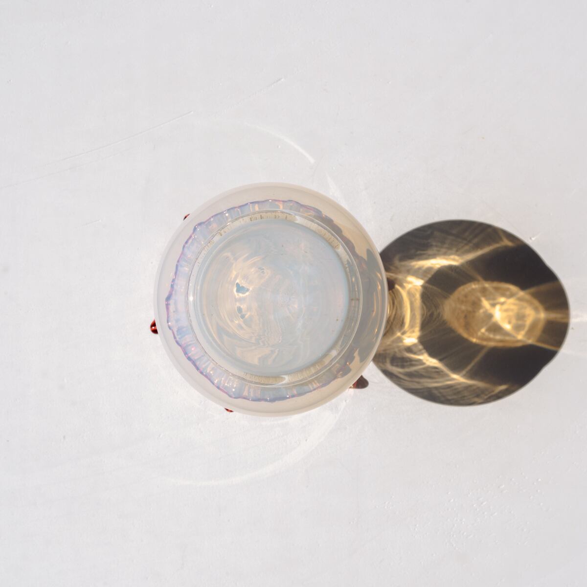 透明感あるホワイトガラスで、陽が当たると美しく影を落とします。