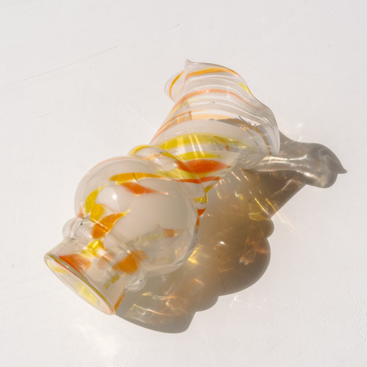 オレンジ、ホワイト、イエローが入り混じった渦巻き模様で彩られています。