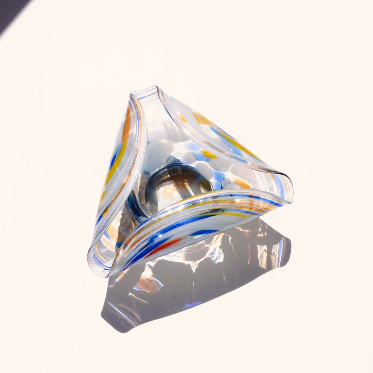 三角形のそれぞれの辺が内側に織り込まれているような、ガラスにもかかわらず曲線を丁寧に表現した美しいデザイン。