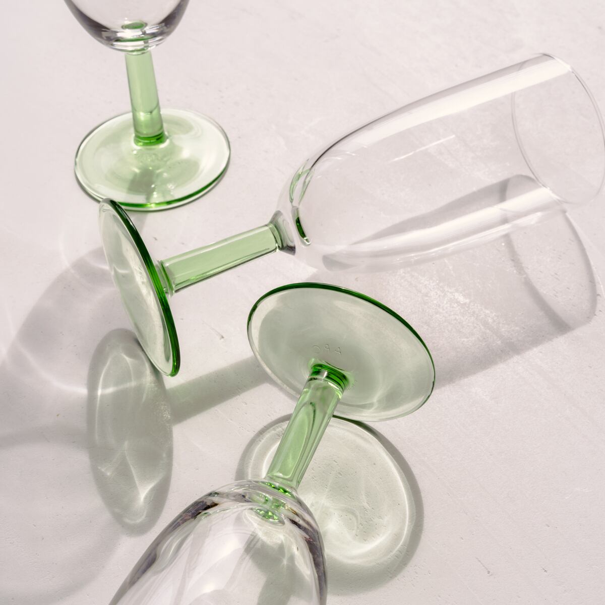 ライムグリーンのステムが輝く、シンプルながら佇まいが美しいグラス。