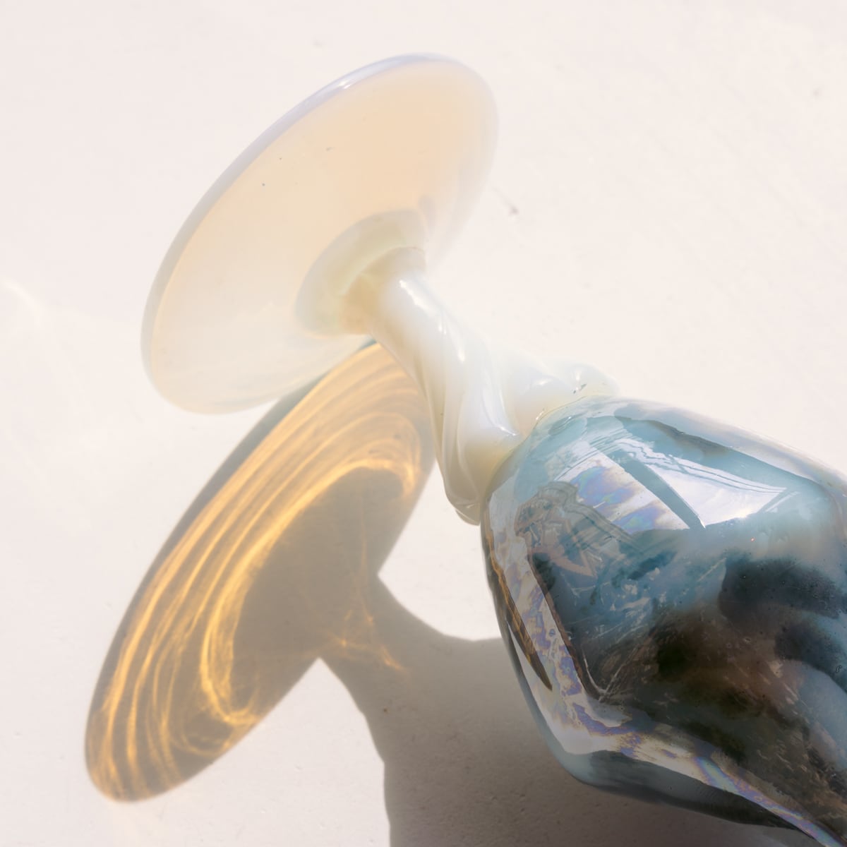 シルバーとブルーグレーのマーブル模様、とろみのあるミルキーな質感が美しい花器。