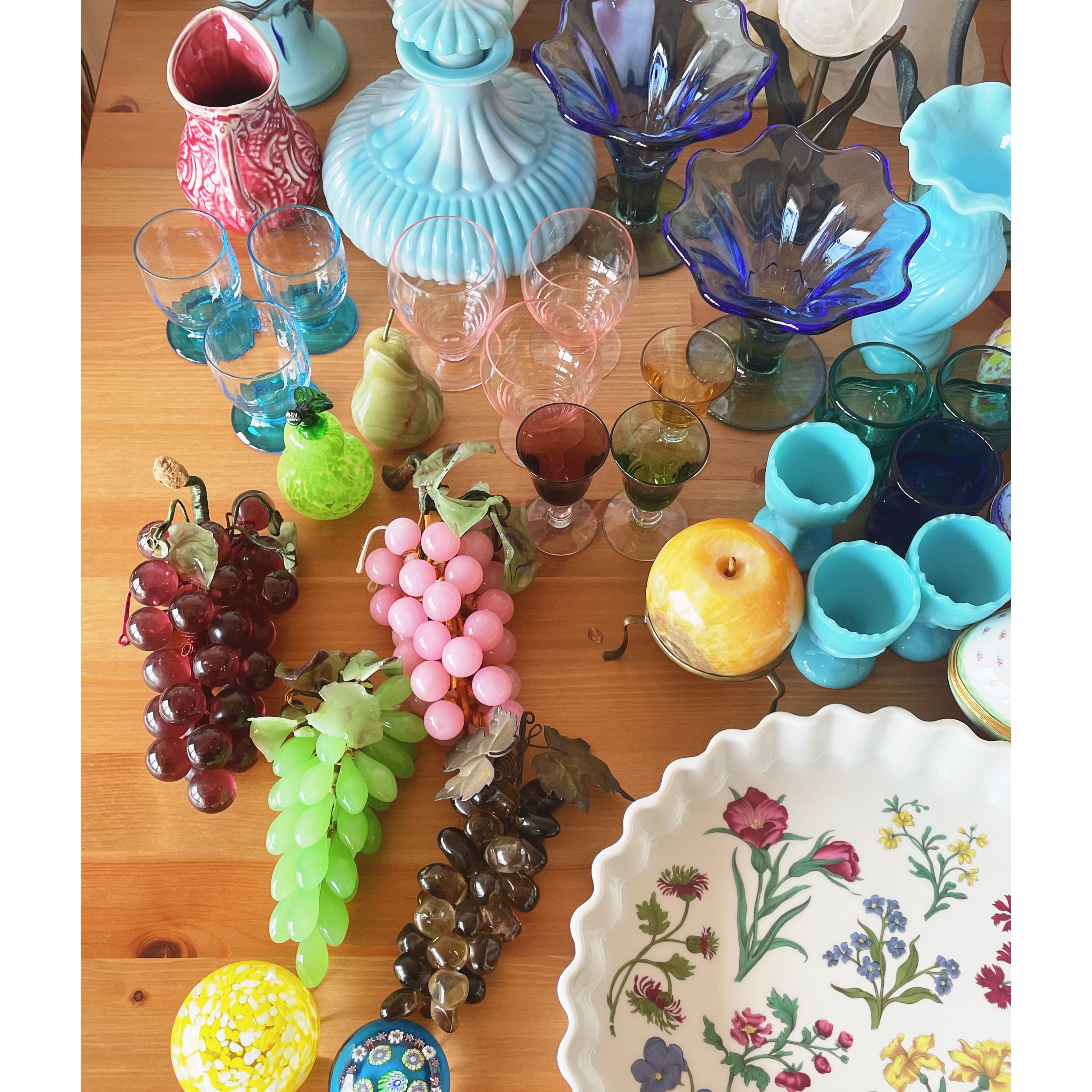 フランスから届いた1980年代頃の葡萄のガラスアート。