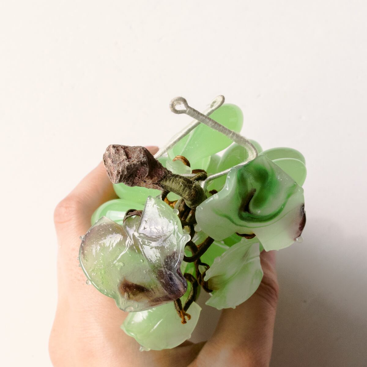ガラスの一つひとつが、針金でつくられた房に固定されて、この素晴らしい葡萄の形を保っています。