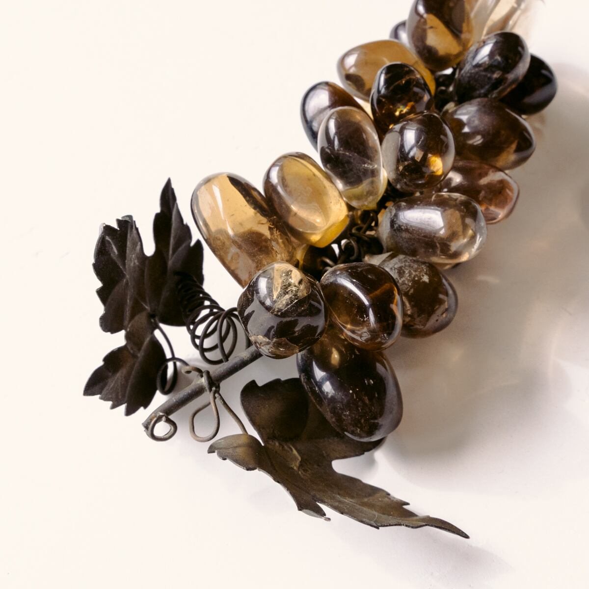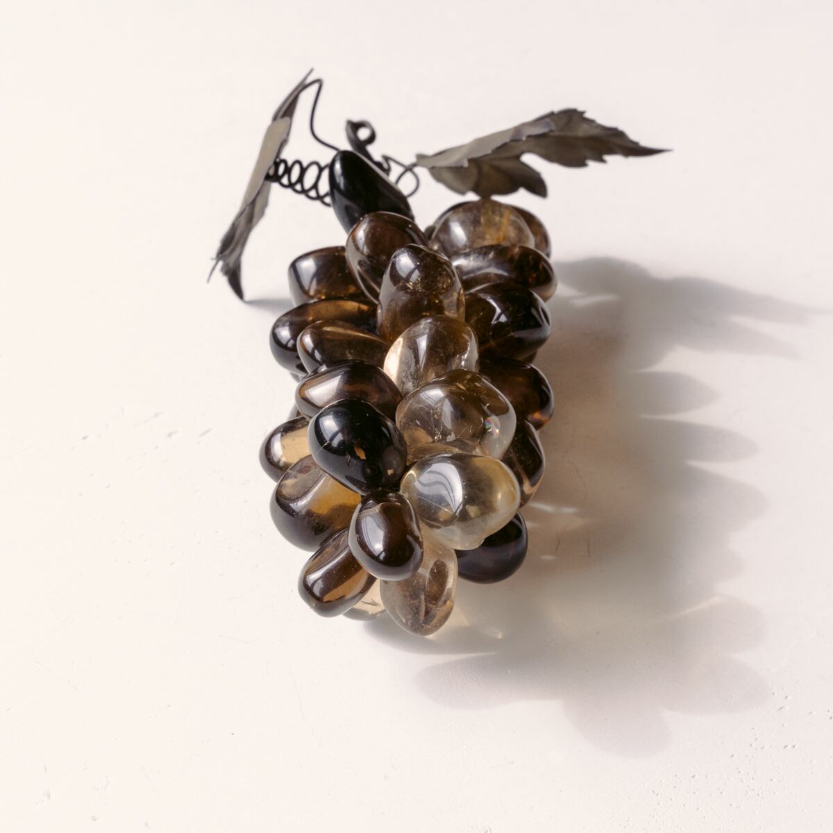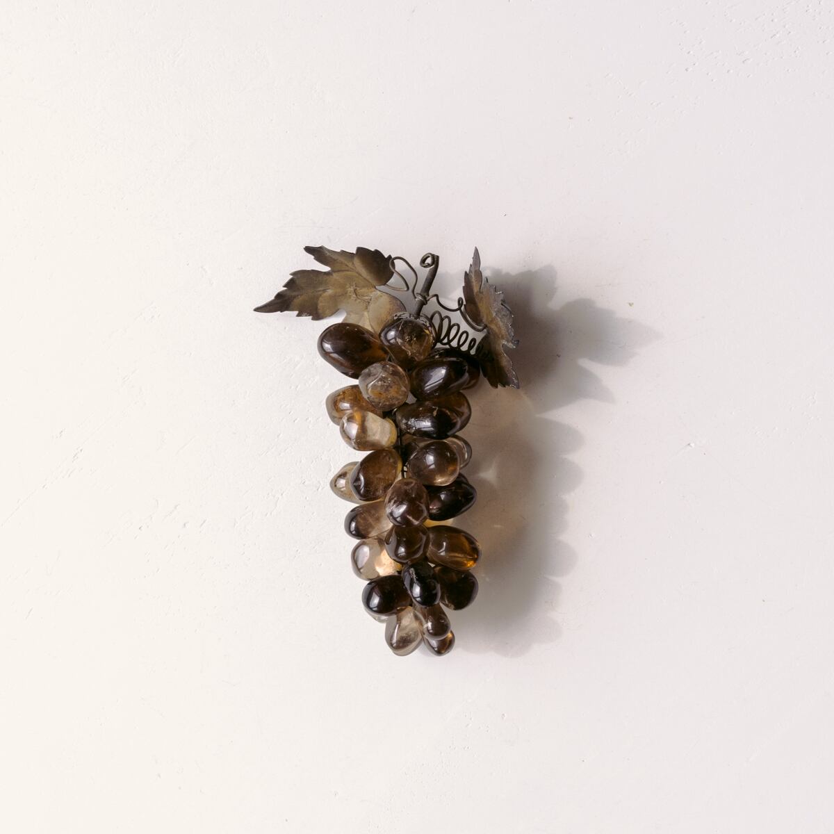 葡萄の粒は、スモーキーブラウンのクリアガラスでみずみずしく表現され、それぞれ透明度、色味、形など表情に違いがあるところも魅力的。