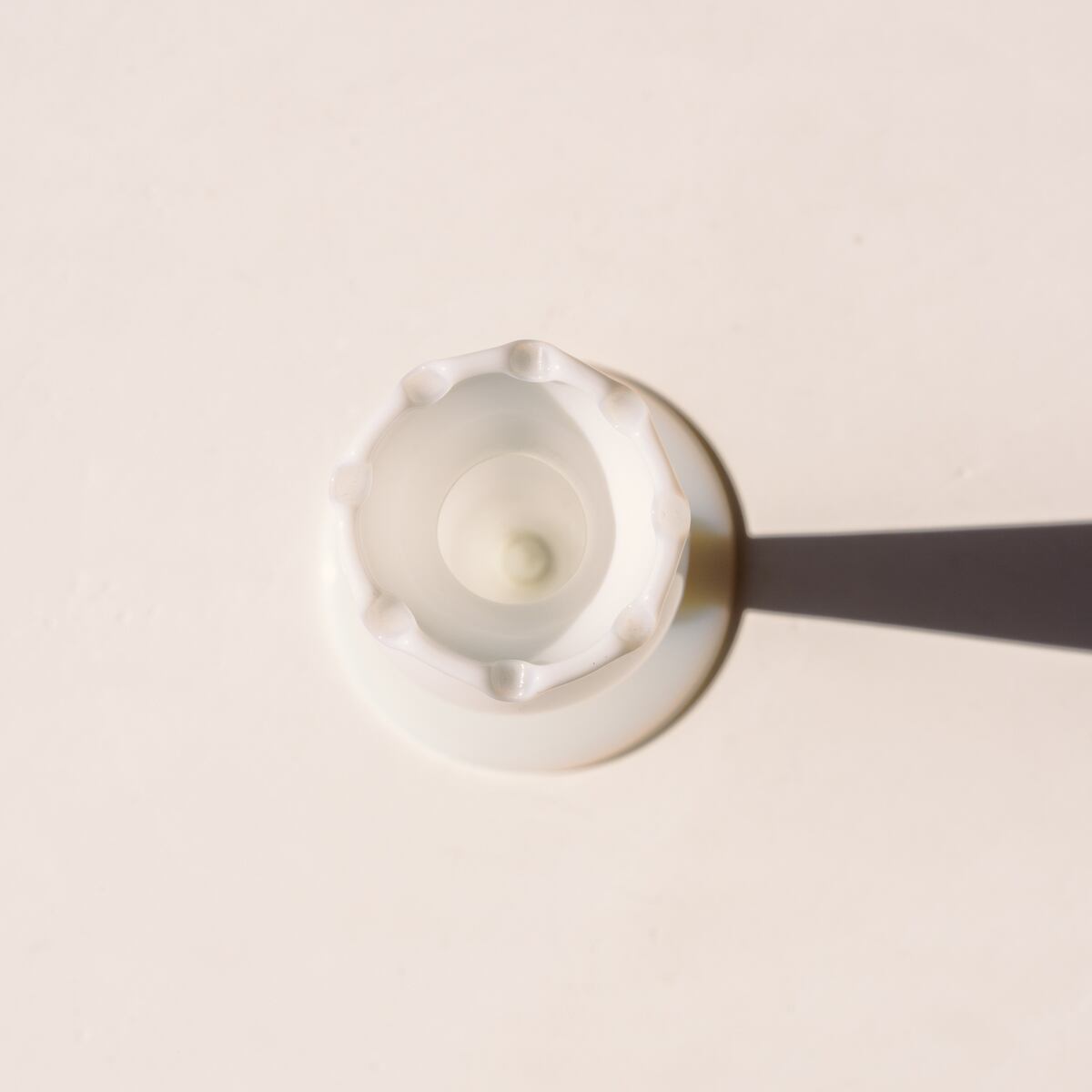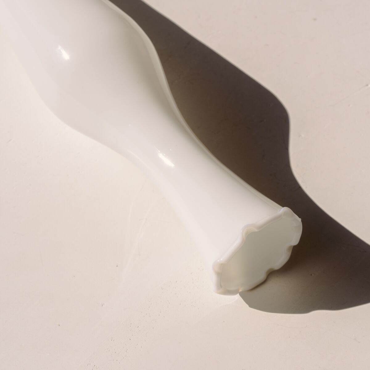 優しいホワイトの色合いで、とろみのあるミルキーな質感が美しい花器。