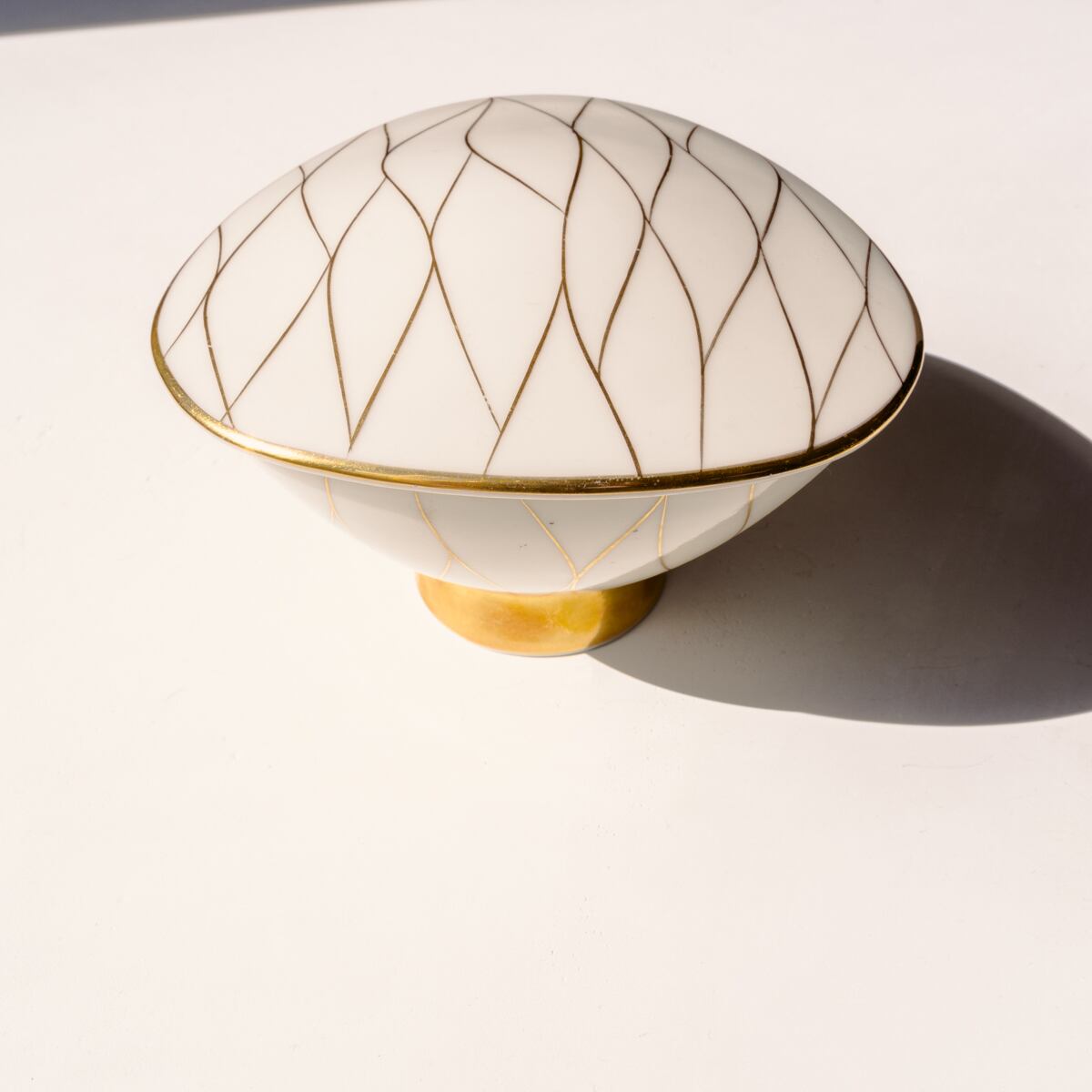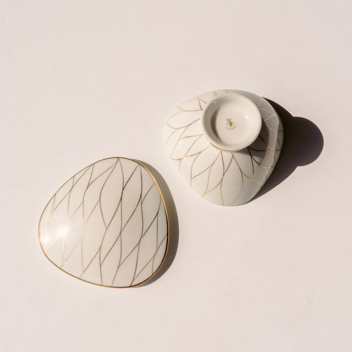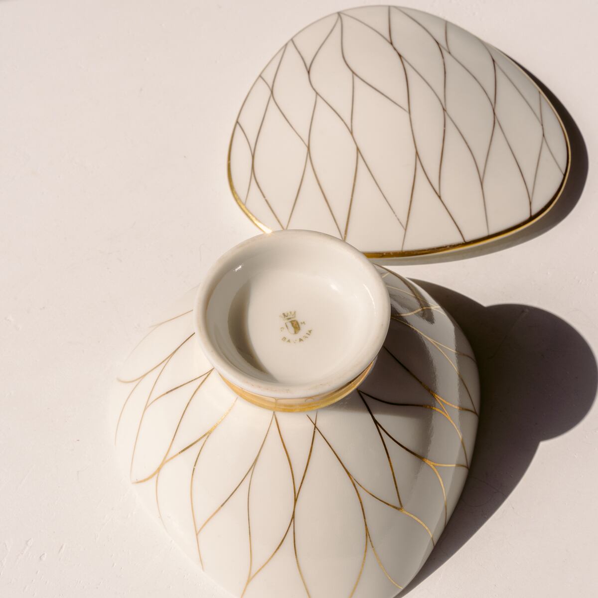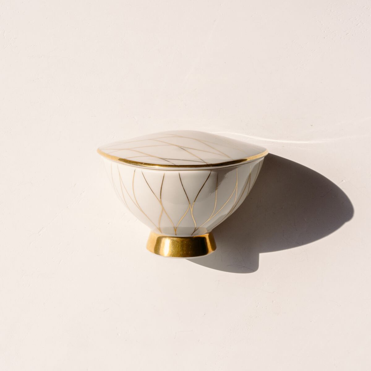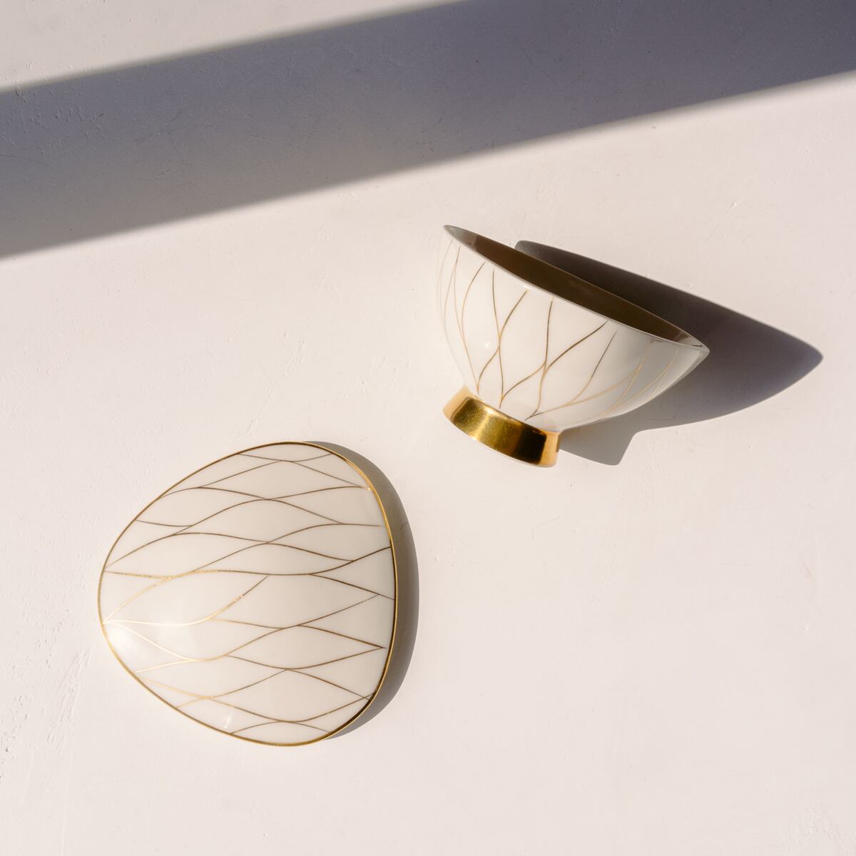 ゴールドの網をかけたような、ホワイトのバイエルン磁器。
