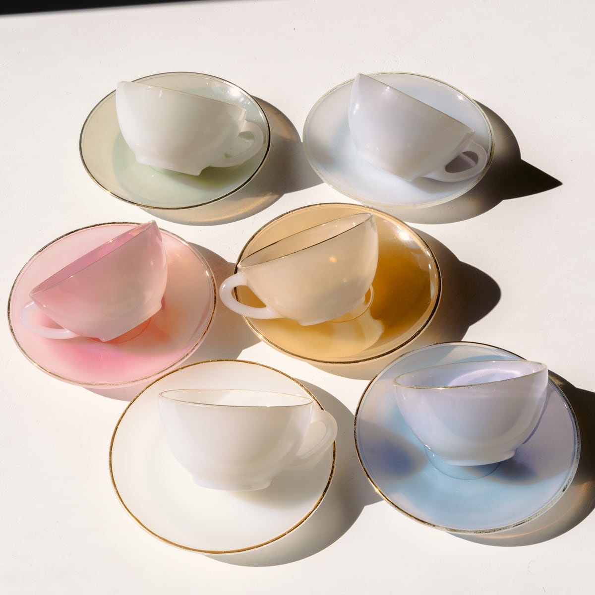 6色のパステルなカラー、とろみのあるミルキーな質感と、縁を囲うゴールドのアクセントがとても魅力的。