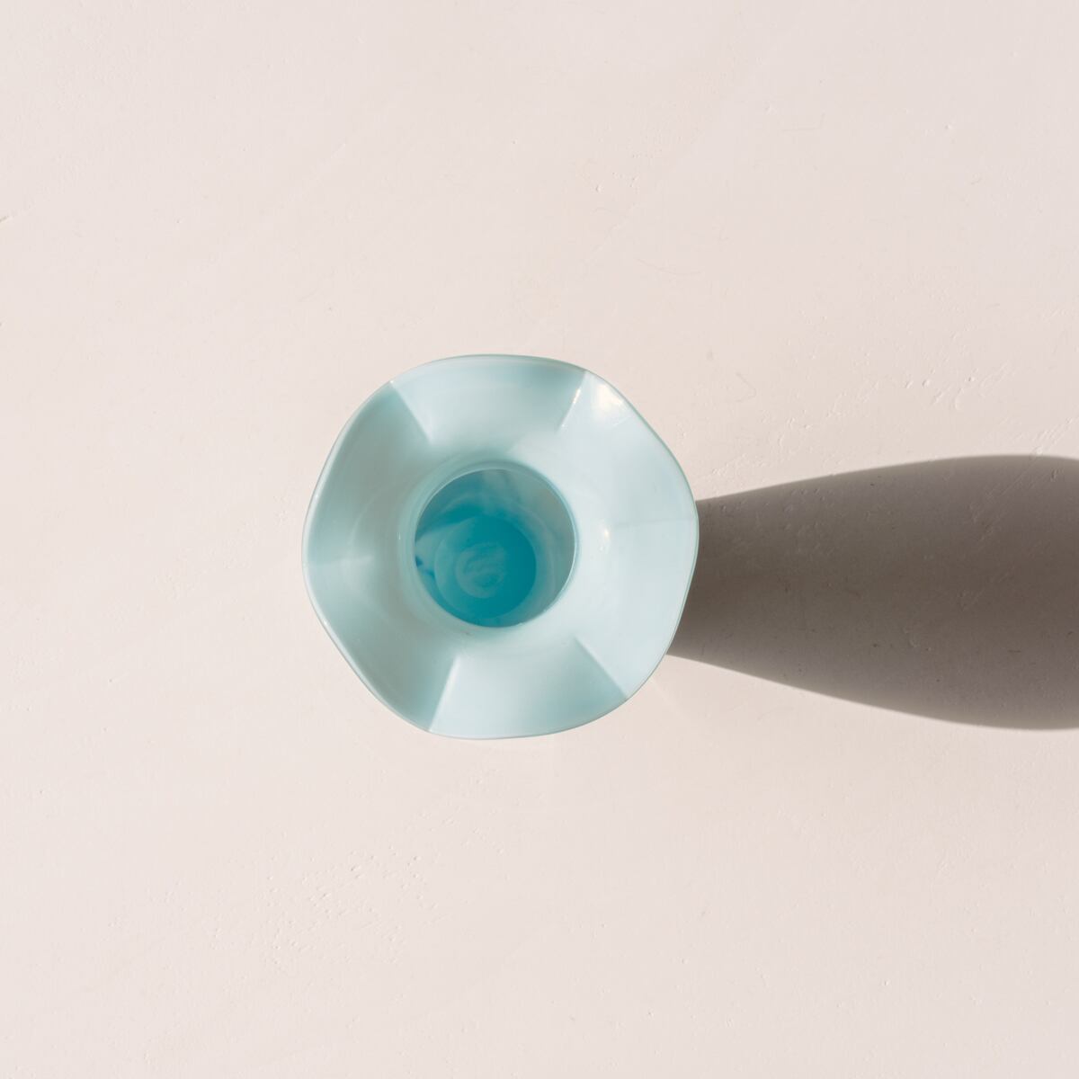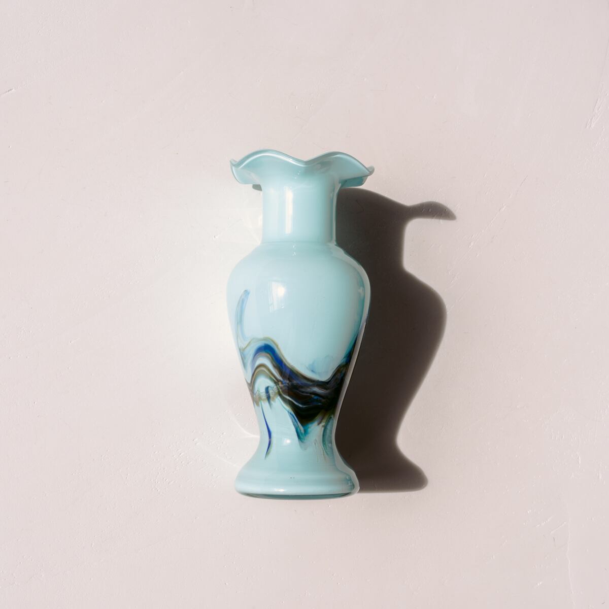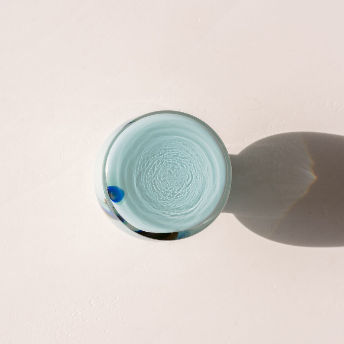 とろみのあるミルキーパウダーブルーの質感がとても魅力的なガラスアート。