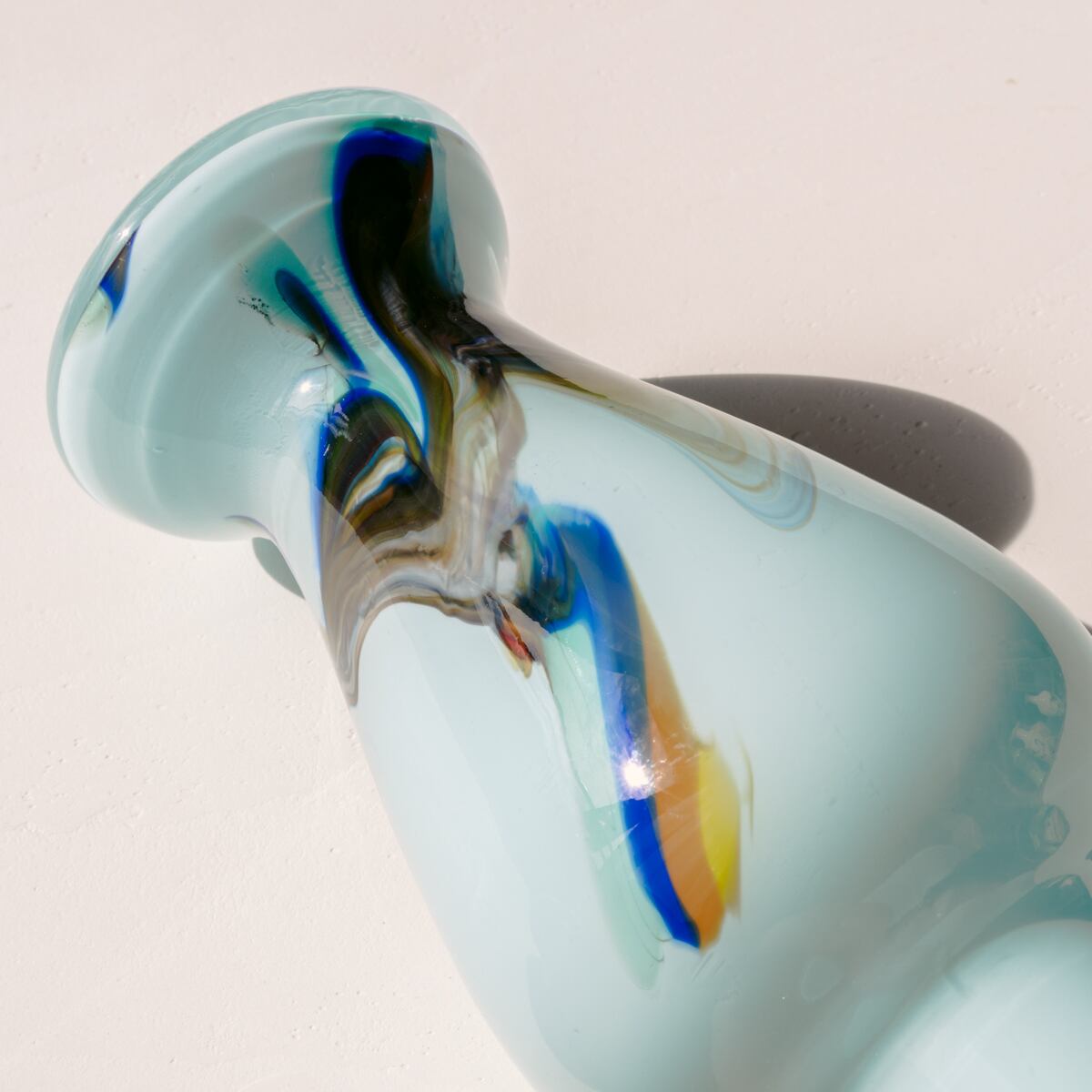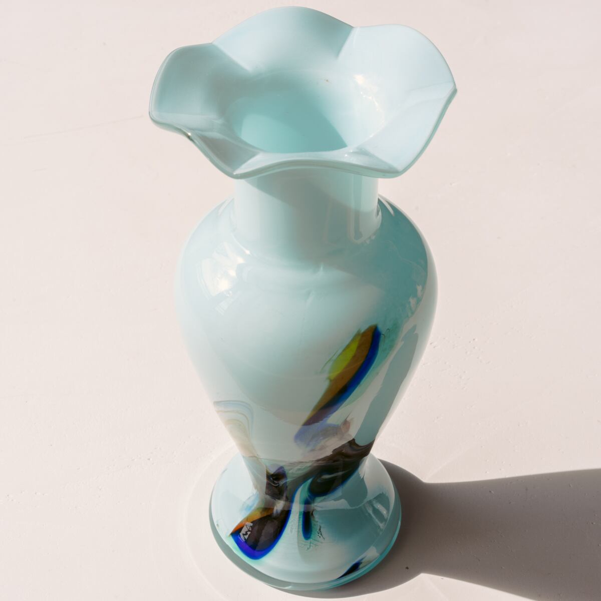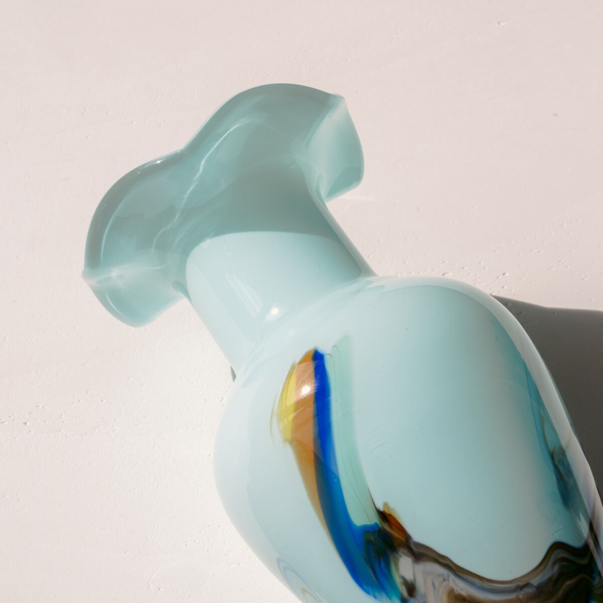 とろみのあるミルキーパウダーブルーの質感がとても魅力的なガラスアート。