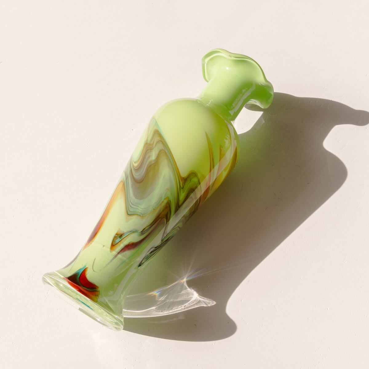 とろみのあるミルキーの質感、抹茶グリーンの色味がとても魅力的なガラスアート。