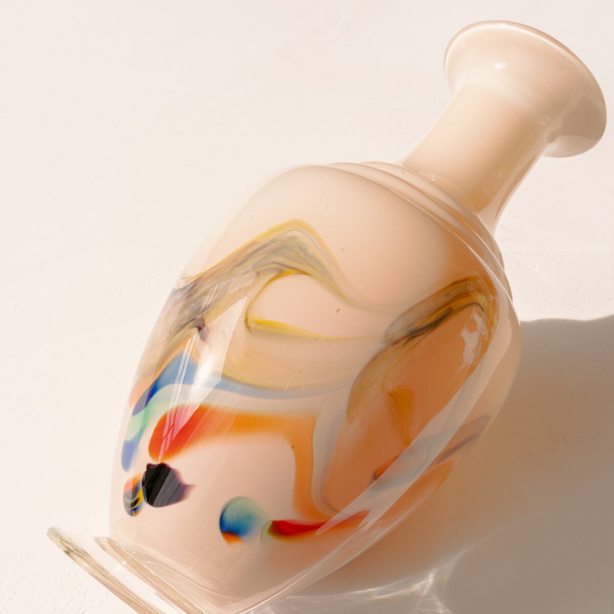 とろみのあるミルキーな質感、サーモンピンクの色味がとても魅力的なガラスアート。