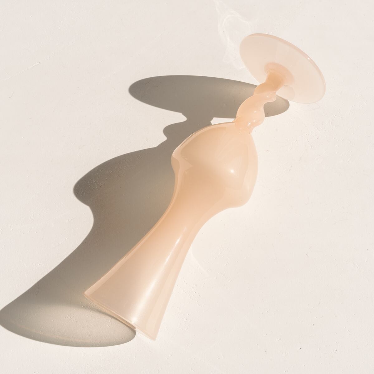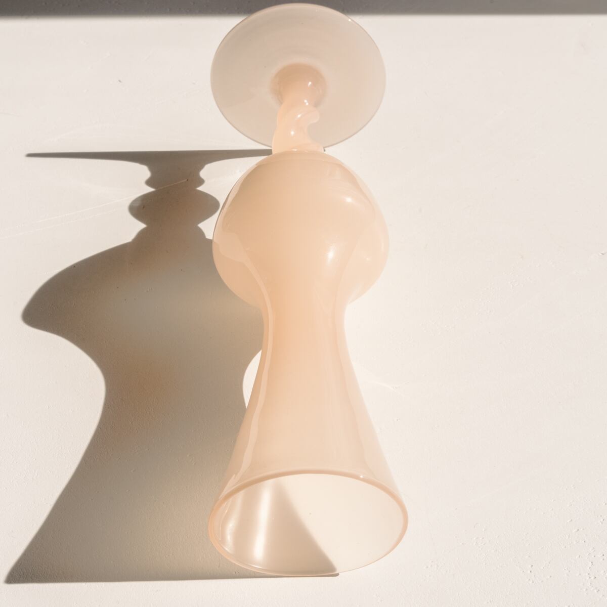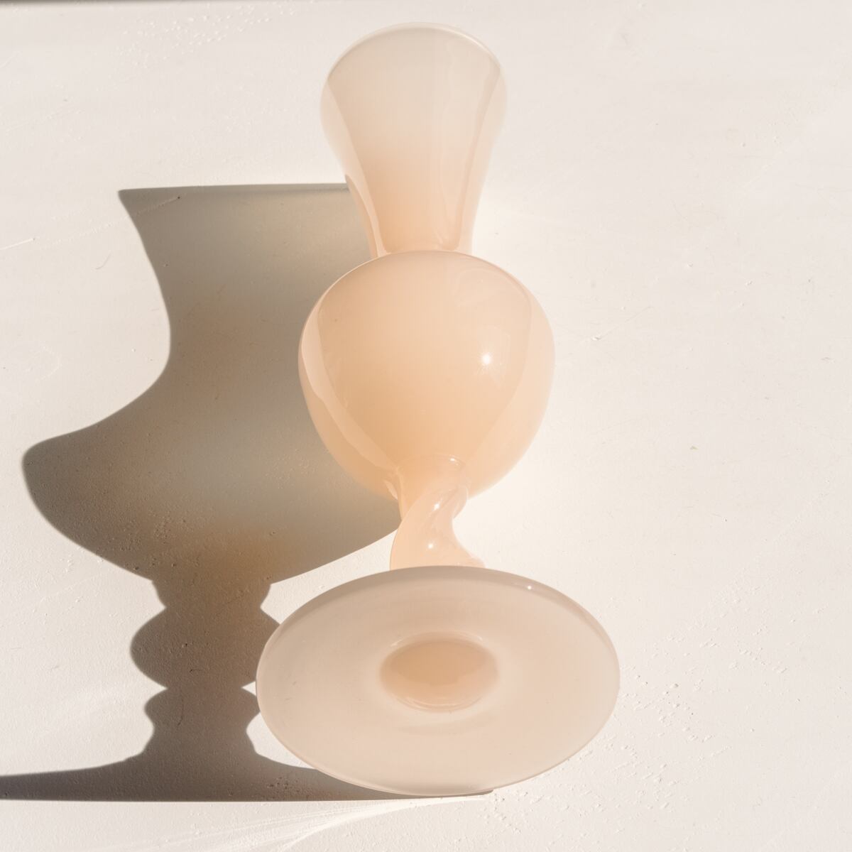可愛らしく上品なダスティーピンクの色味で、とろみのあるミルキーな質感が美しい花器。